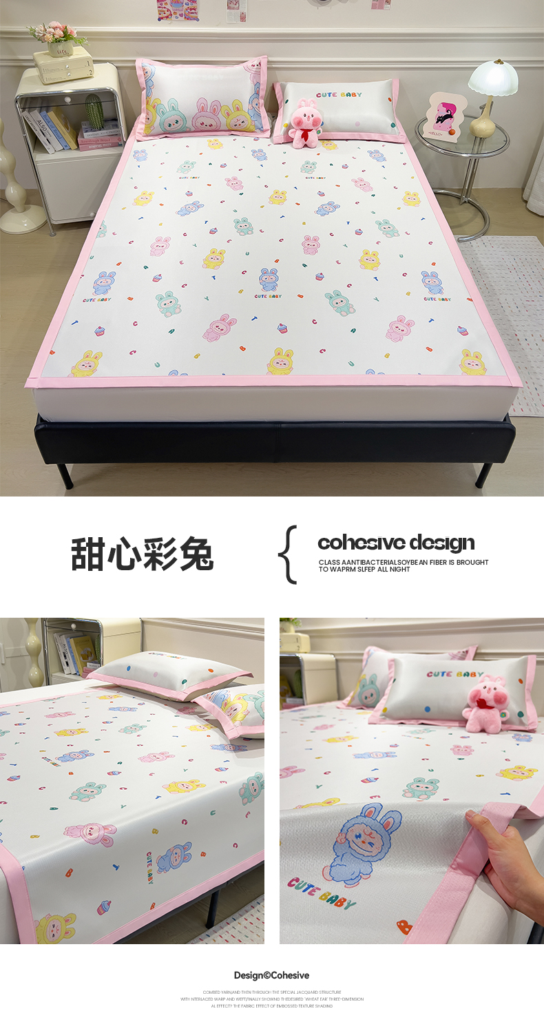商品名称:摩妮卡 2025小清新数码冰丝席 碳光席三件套 甜心彩兔