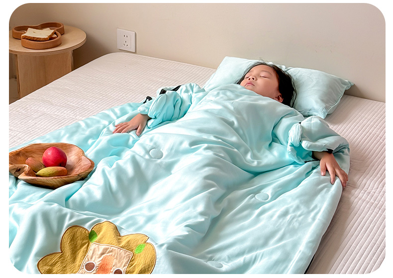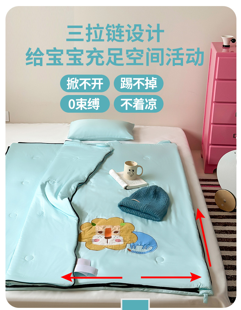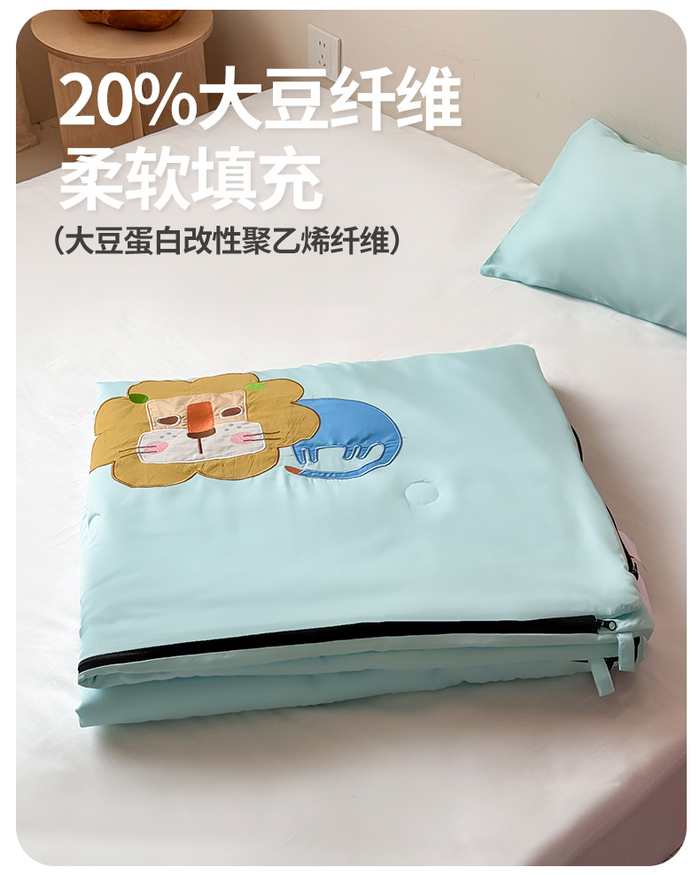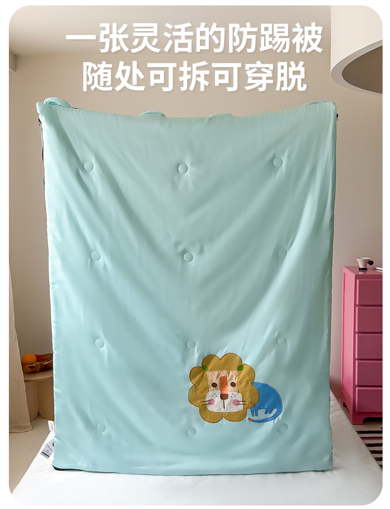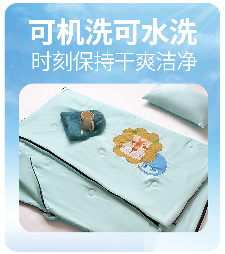 商品名称:喜多兔儿童家纺 2025新款萌宝系列40S纯棉夏季睡袋防踢被 湖蓝色小狮子芯芯