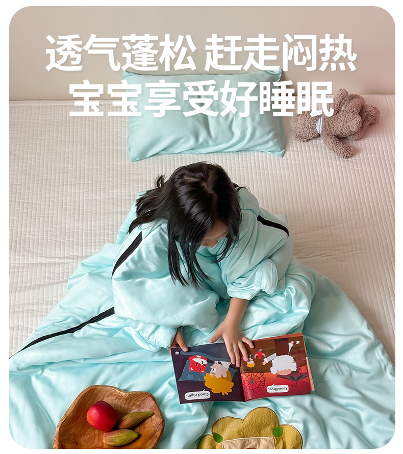 (总)喜多兔儿童家纺 2025新款萌宝系列40S纯棉夏季睡袋防踢被,豆沙色小猫甜甜,粉色小兔妞妞,湖蓝色小狮子芯芯,黄色长颈鹿萌萌,卡其色小老虎多多,蓝色小象问问,绿色小恐龙亮亮,绿色小牛宝宝