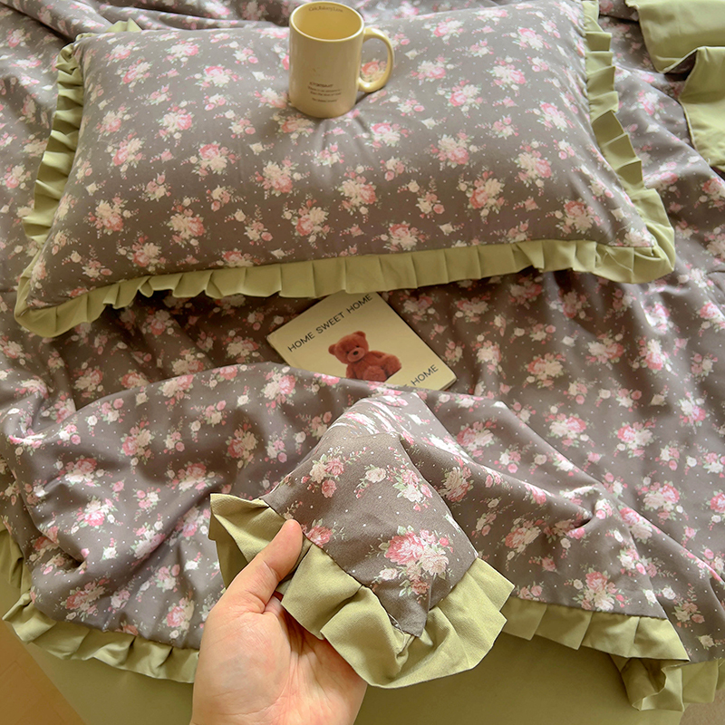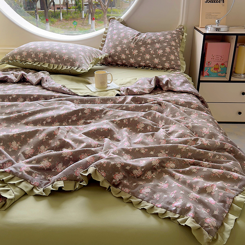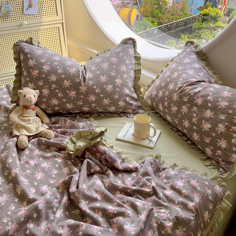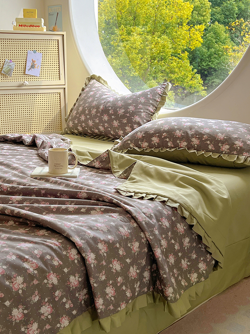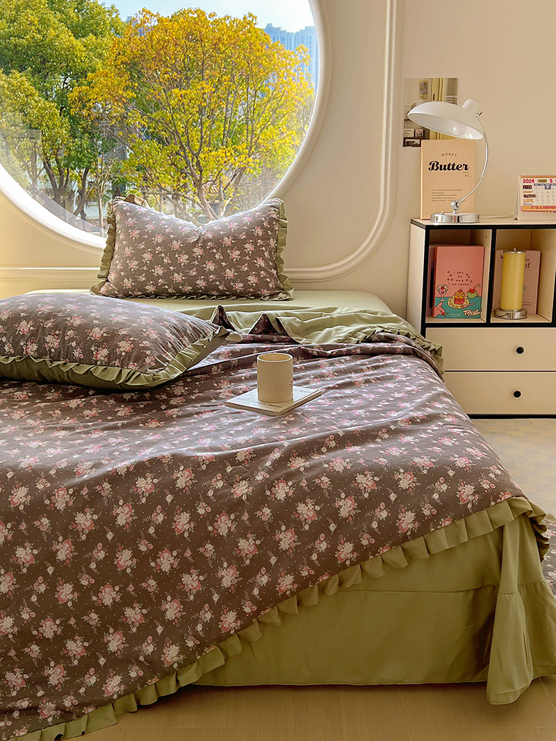 (总)欧尚 2026新款花边床盖四件套,春和,花束,花野,灰樱桃,咖爱心,咖豹纹,咖啡小猫,梨花落,绿爱心,梦境,木马,奶油波点,暖橘枝,暖心,人间草木,田园兔,小女孩,星愿,摇摇马,紫爱心,紫豹纹,紫苏