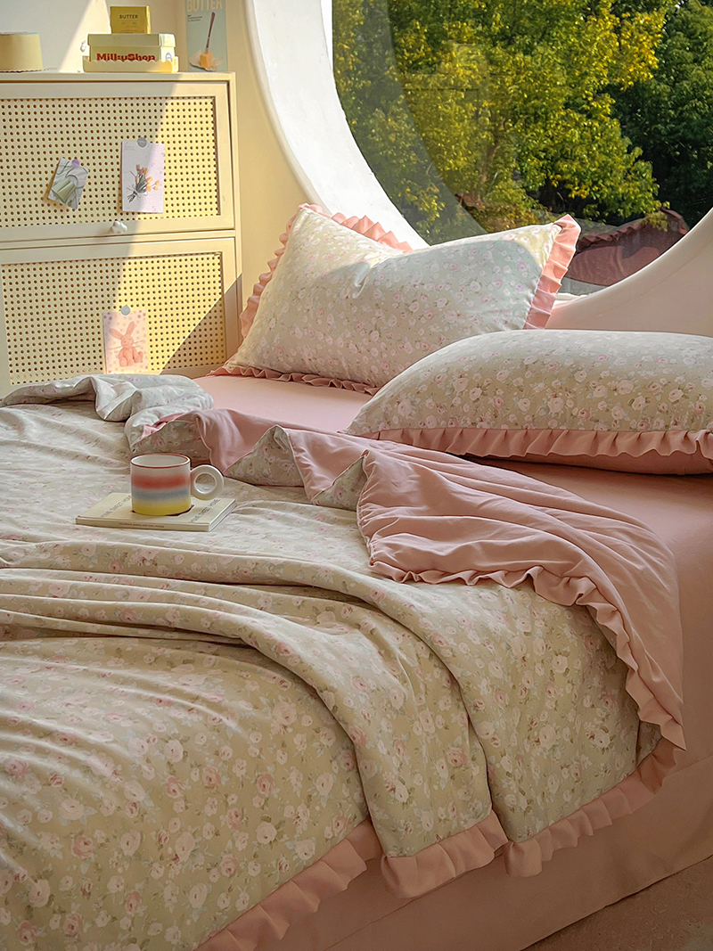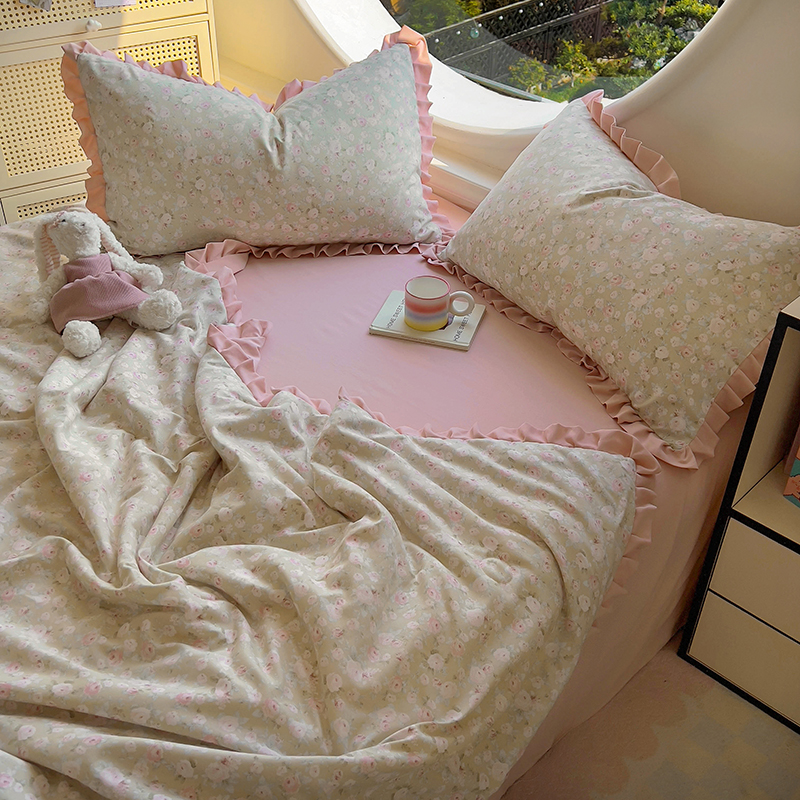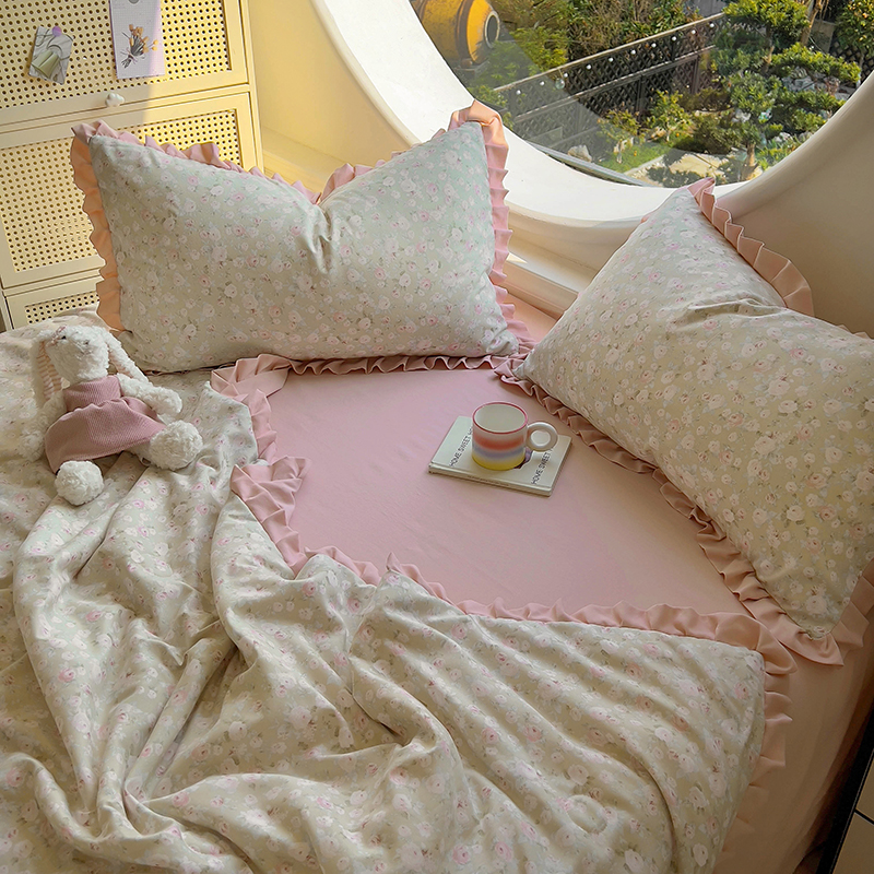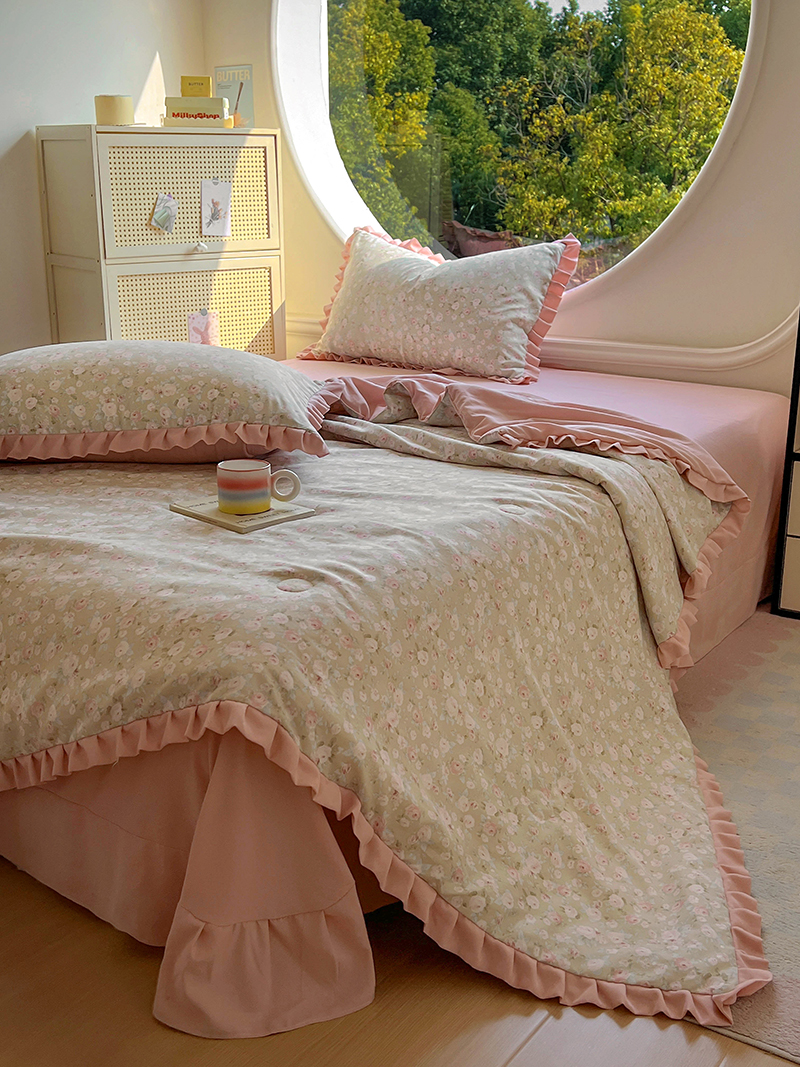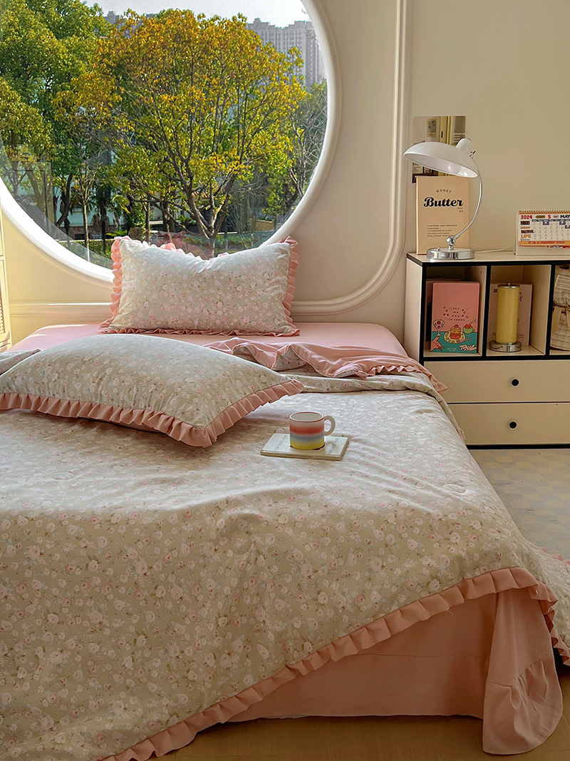 (总)欧尚 2026新款花边床盖四件套,春和,花束,花野,灰樱桃,咖爱心,咖豹纹,咖啡小猫,梨花落,绿爱心,梦境,木马,奶油波点,暖橘枝,暖心,人间草木,田园兔,小女孩,星愿,摇摇马,紫爱心,紫豹纹,紫苏
