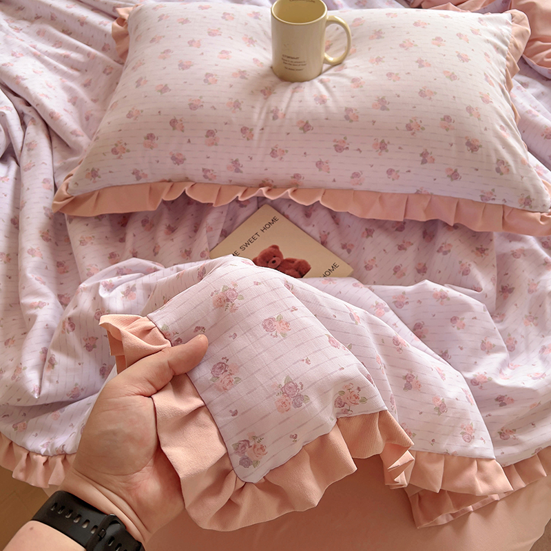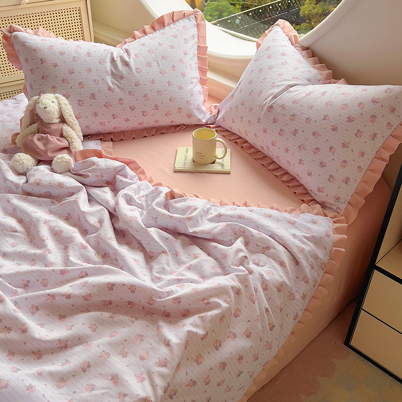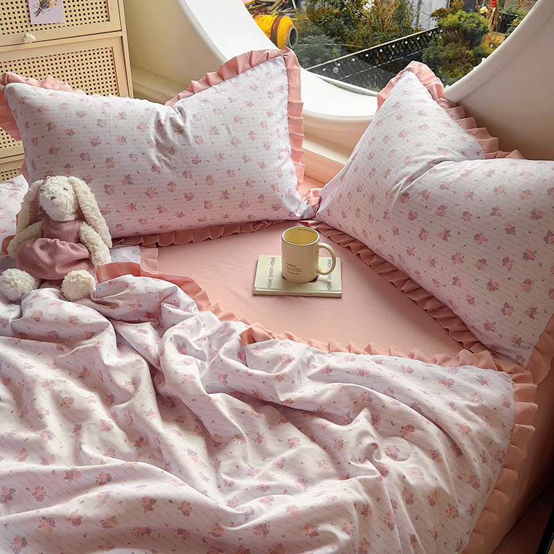 (总)欧尚 2026新款花边床盖四件套,春和,花束,花野,灰樱桃,咖爱心,咖豹纹,咖啡小猫,梨花落,绿爱心,梦境,木马,奶油波点,暖橘枝,暖心,人间草木,田园兔,小女孩,星愿,摇摇马,紫爱心,紫豹纹,紫苏