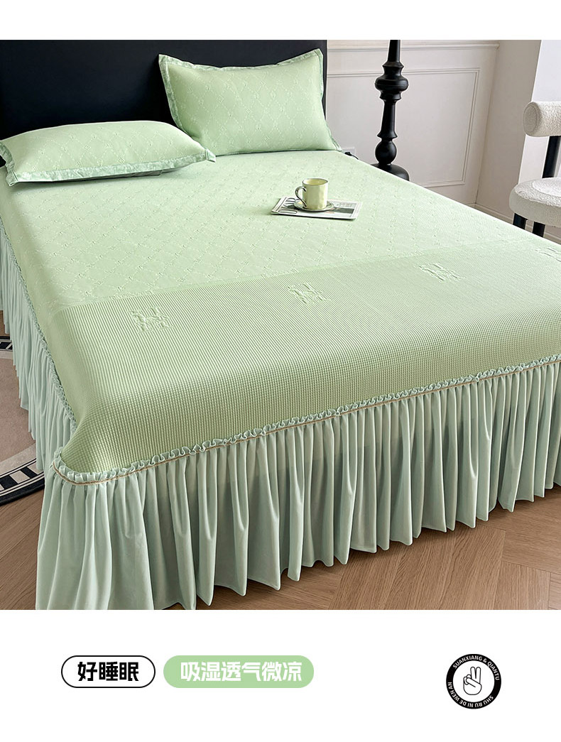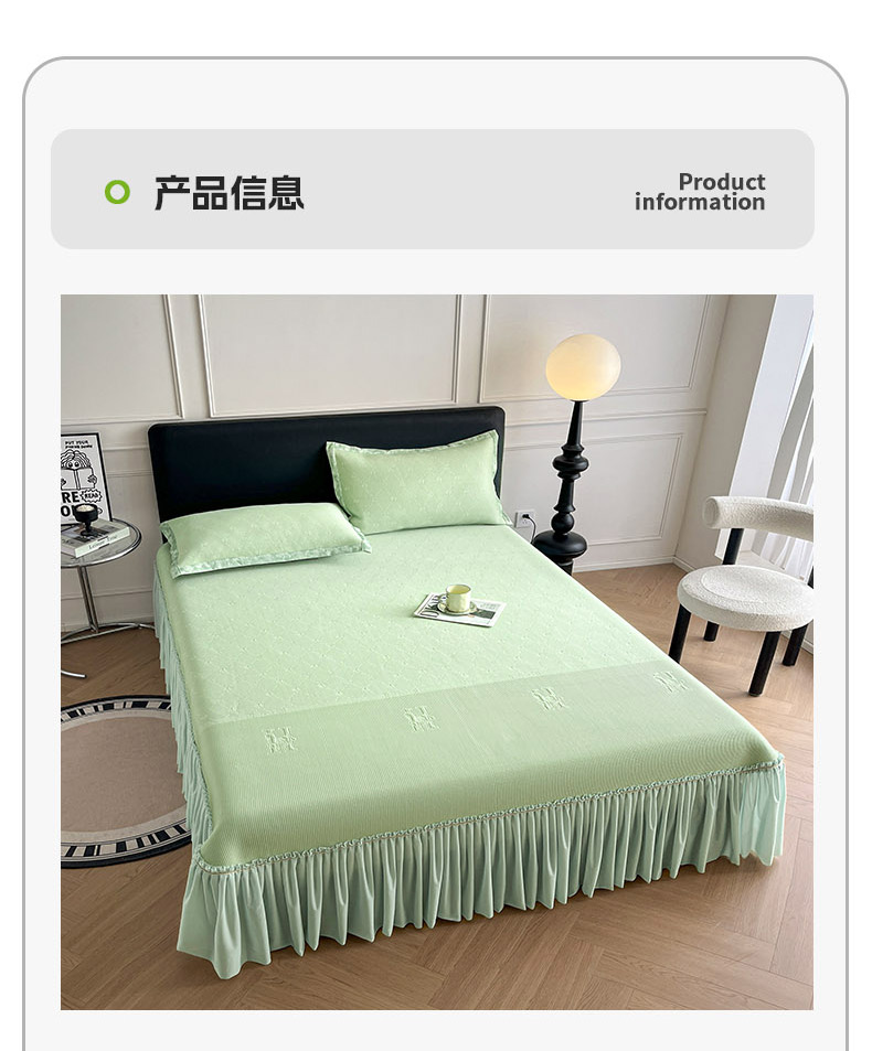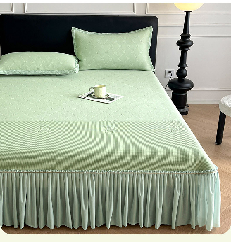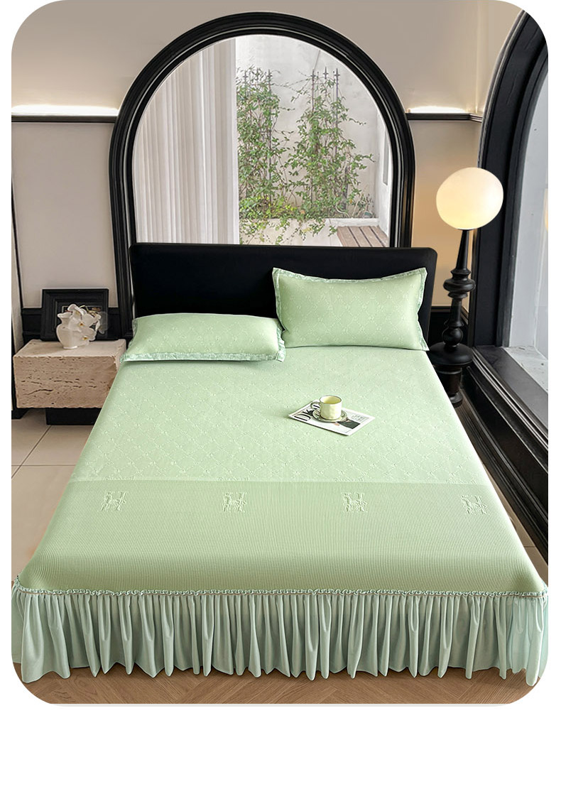 商品名称:鑫琪莱 2025新款5D立体雕花凉感豆豆冰丝床裙三件套 床裙H款-绿