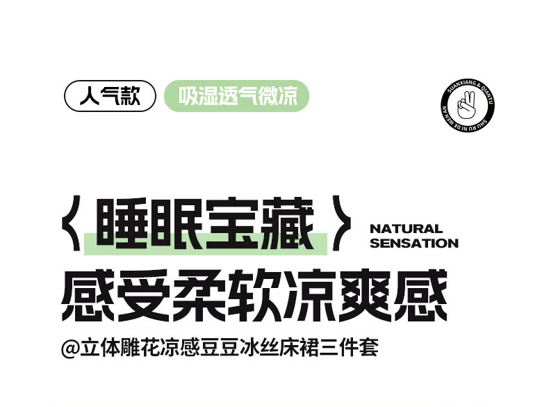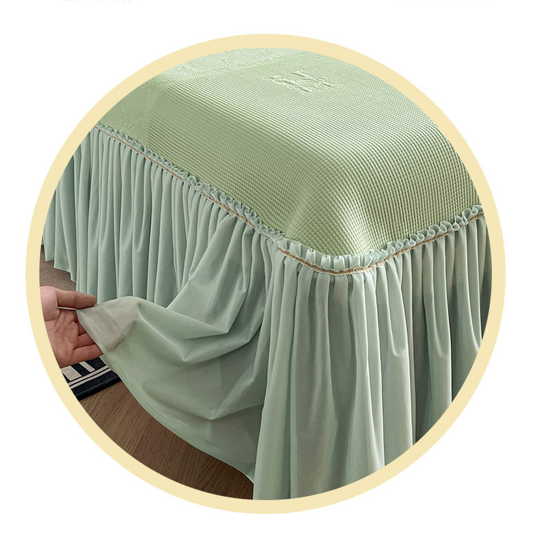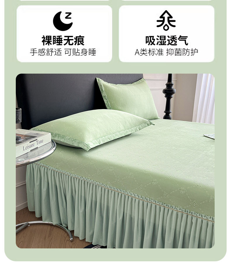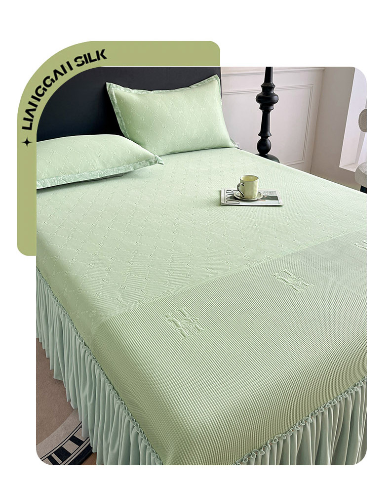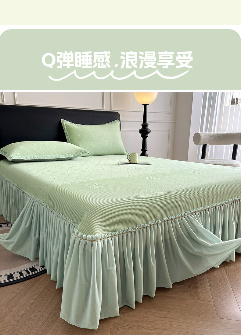 商品名称:鑫琪莱 2025新款5D立体雕花凉感豆豆冰丝床裙三件套 床裙H款-绿