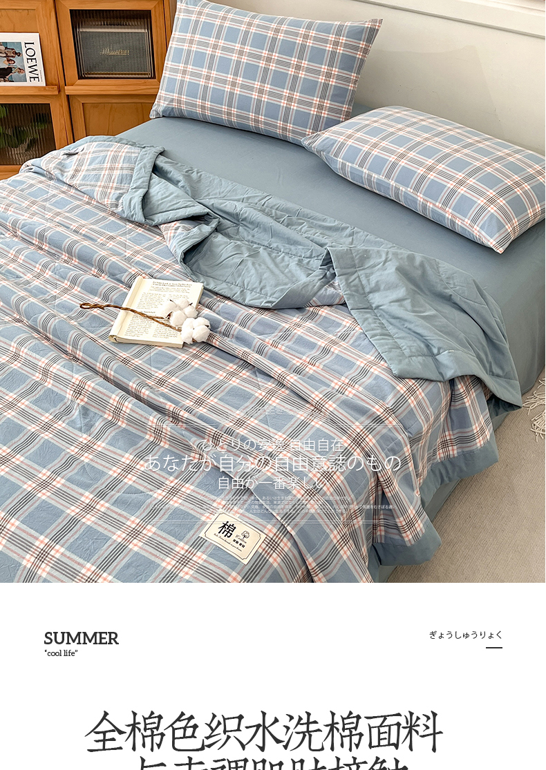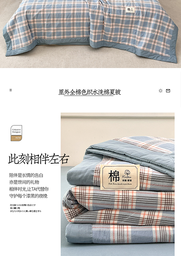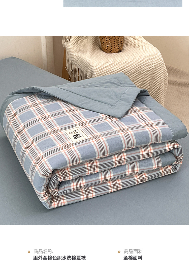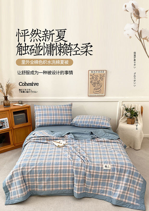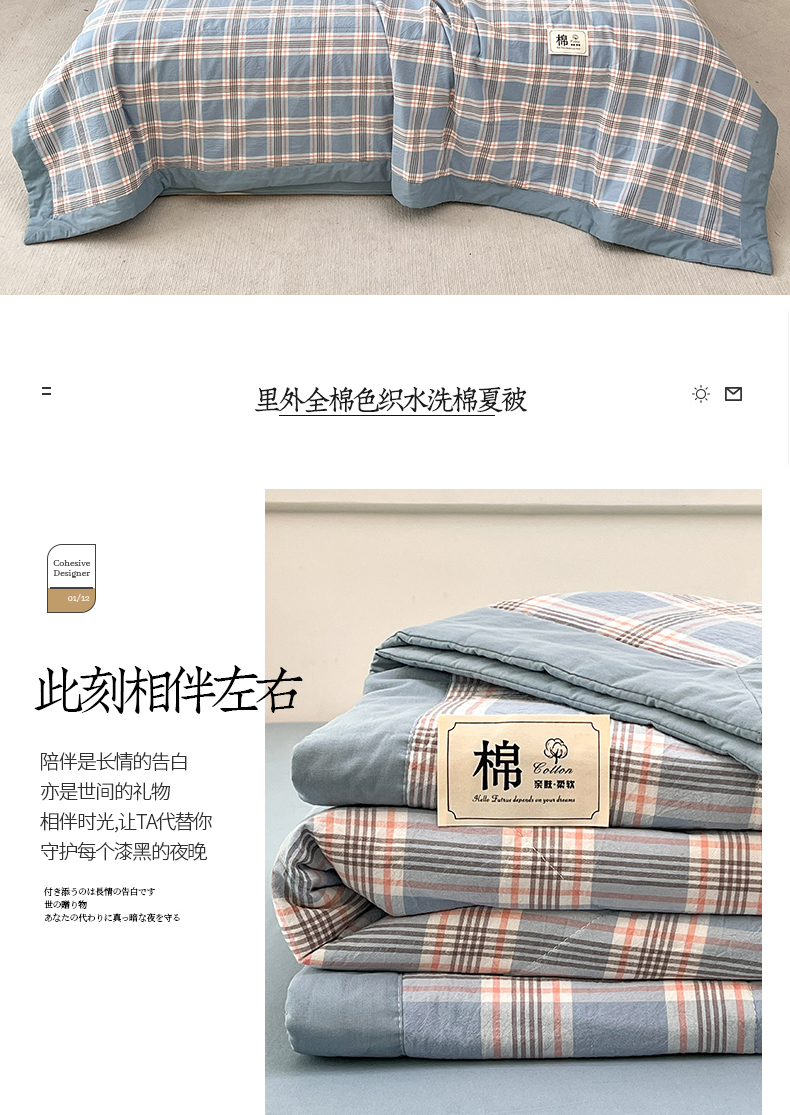 • 91家纺网 家纺一手货源 找家纺 鸣升家纺 2025新款100%里外全棉棉花夏被无印风全棉色织水洗棉夏凉被空调被夏被春秋被单人可机洗 初时兰