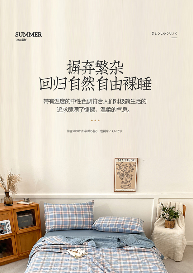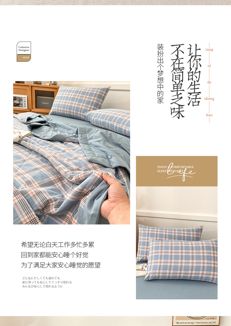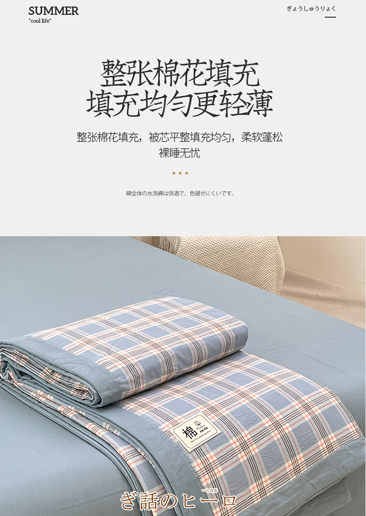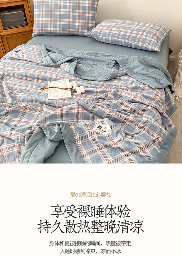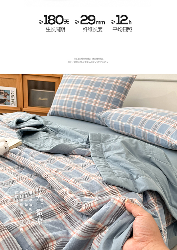 • 91家纺网 家纺一手货源 找家纺 鸣升家纺 2025新款100%里外全棉棉花夏被无印风全棉色织水洗棉夏凉被空调被夏被春秋被单人可机洗 初时兰