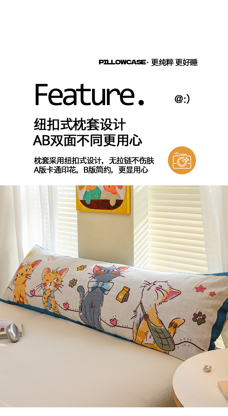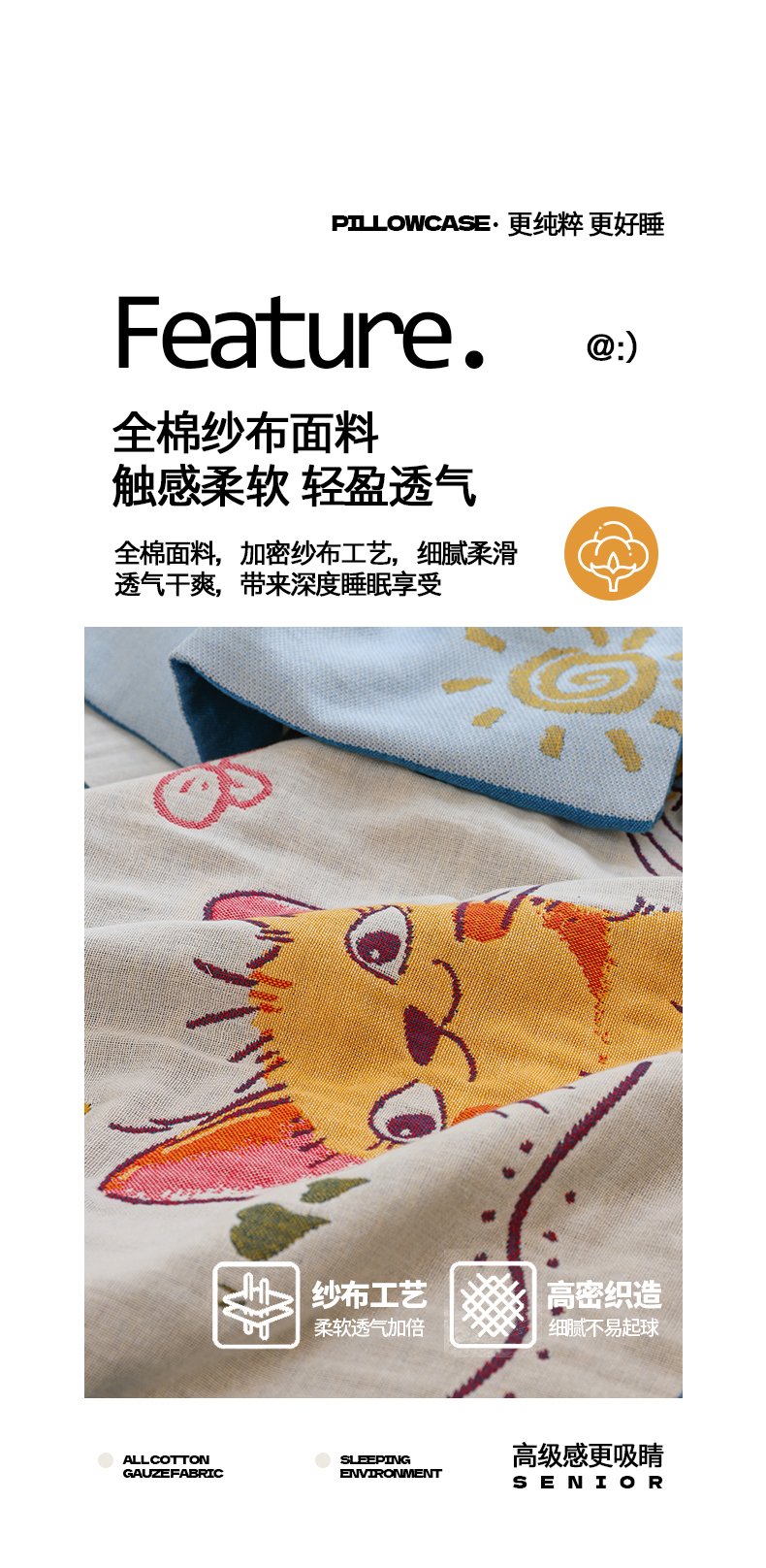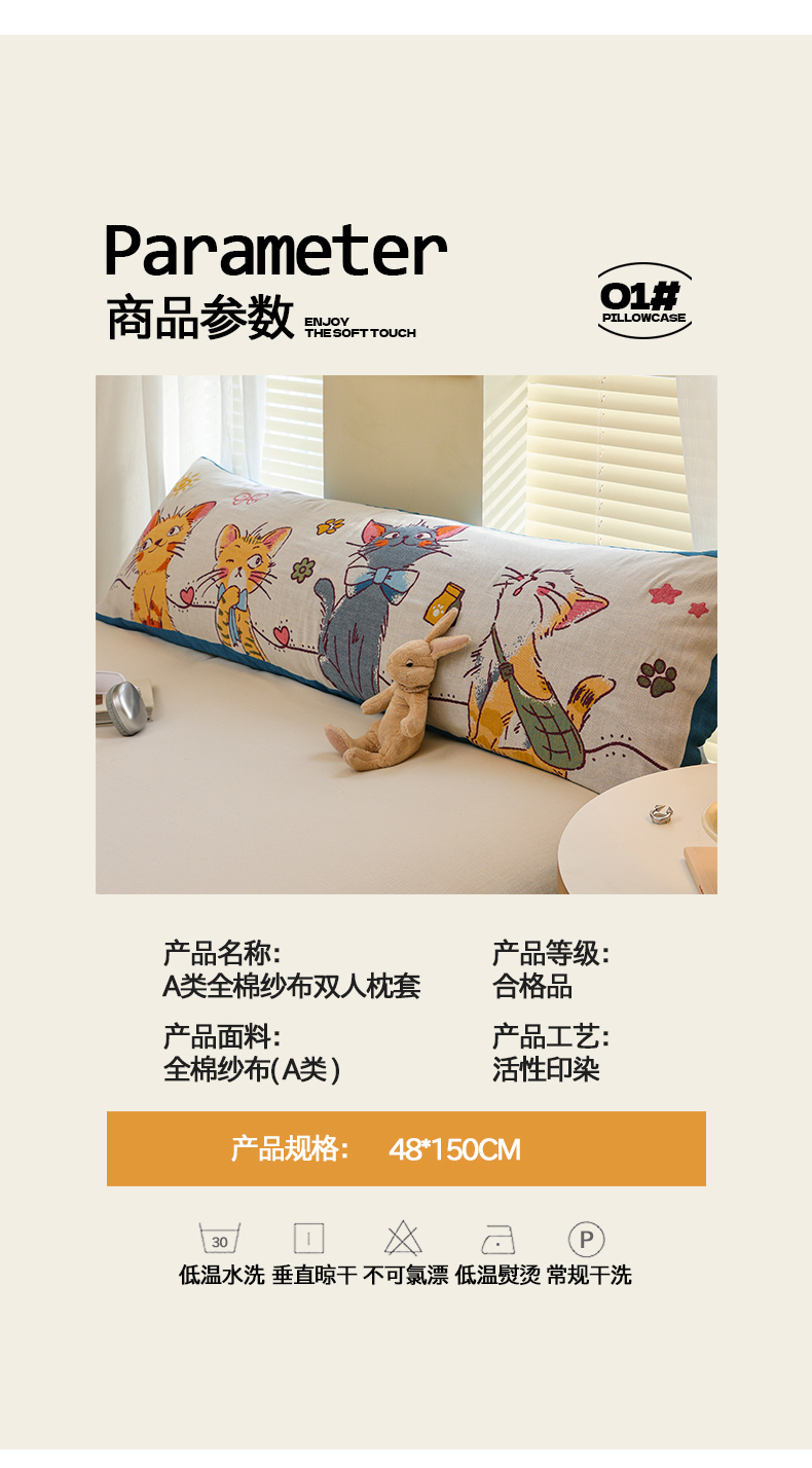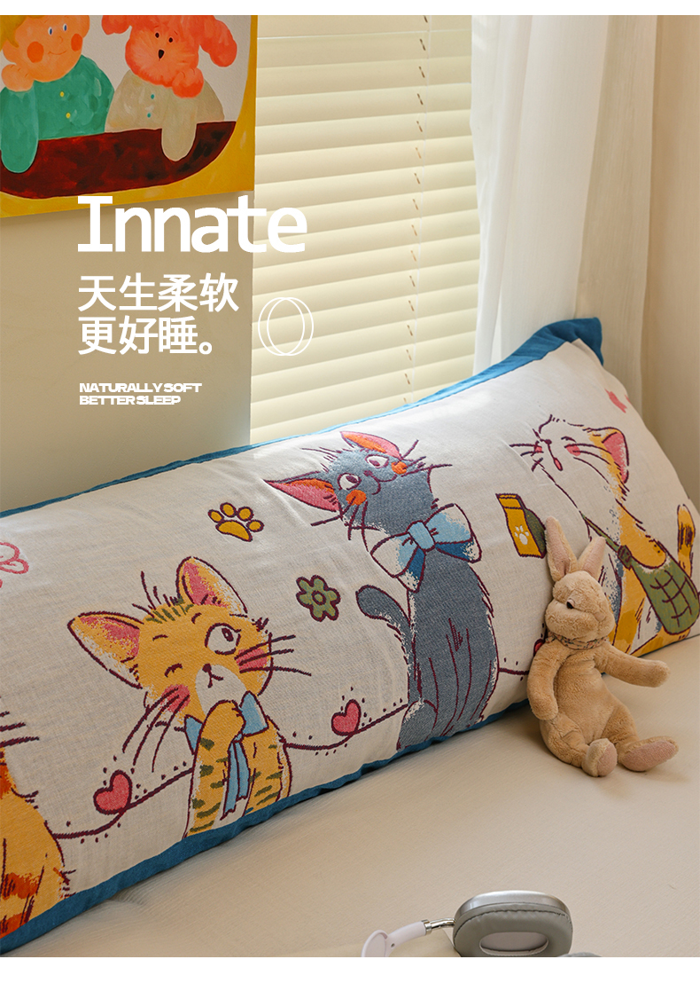 商品名称:雯雨2025新款A类卡通双人纱布枕套 呆萌小猫