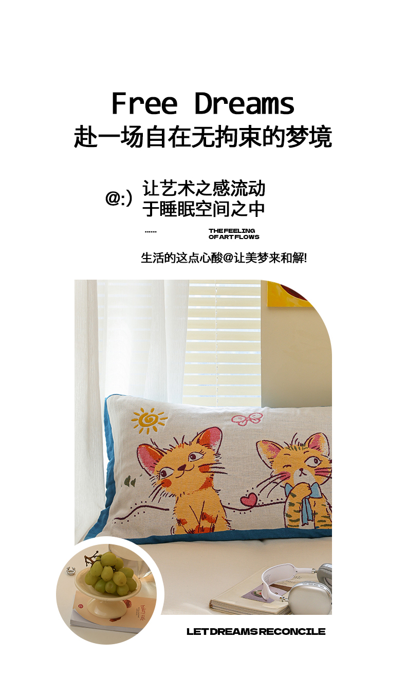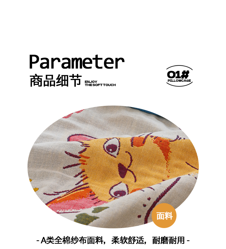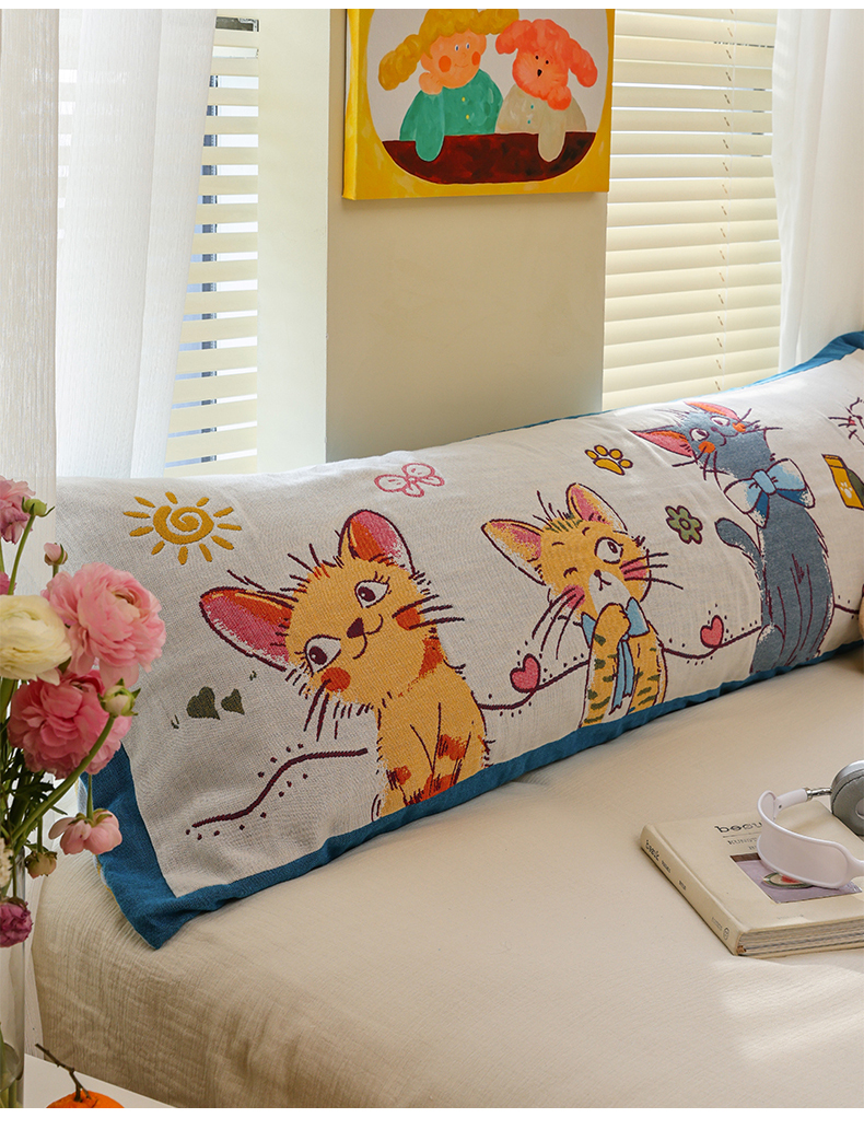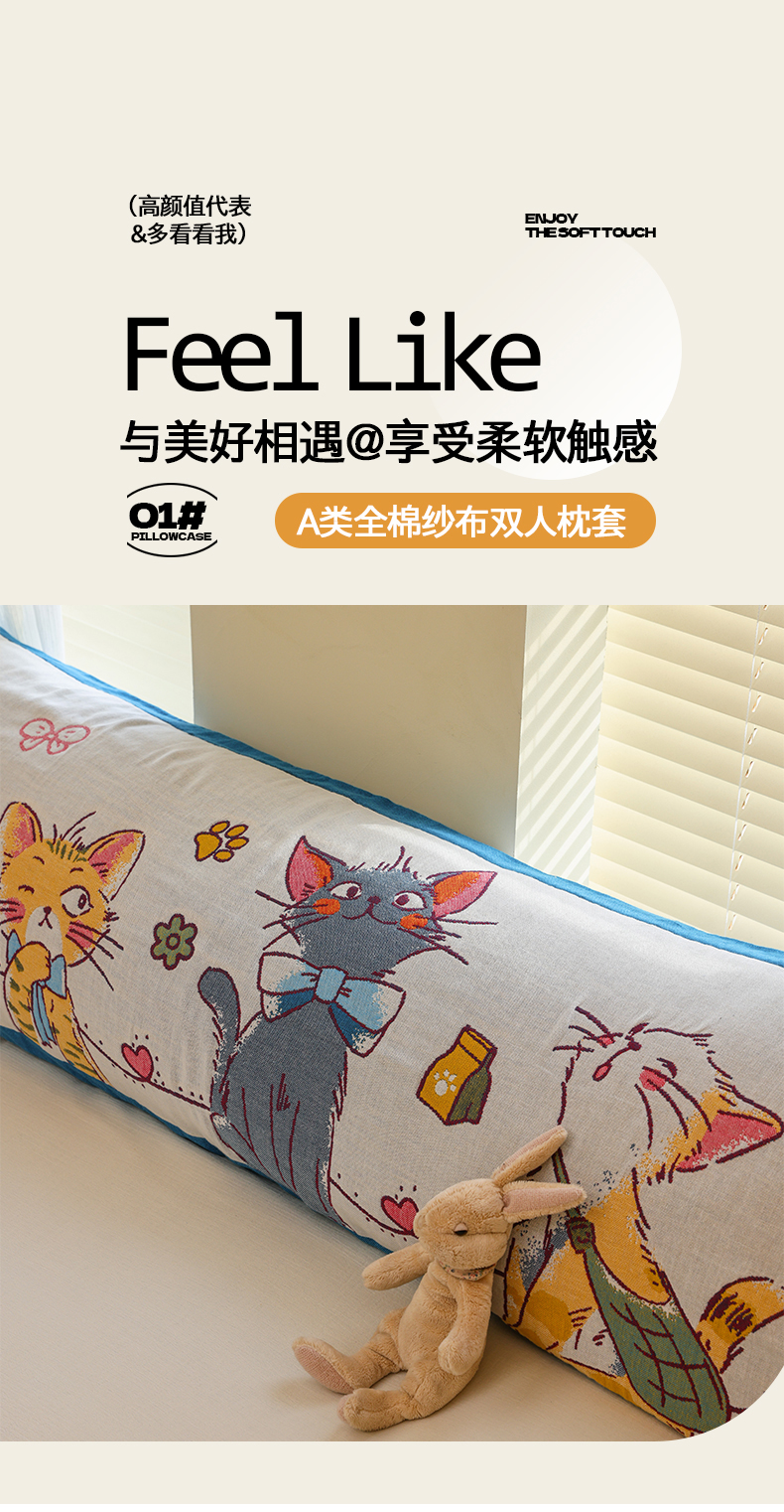 商品名称:雯雨2025新款A类卡通双人纱布枕套 呆萌小猫