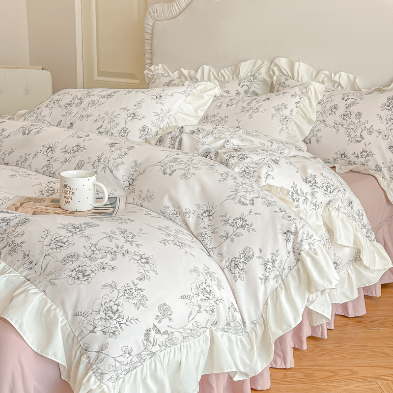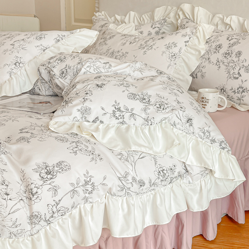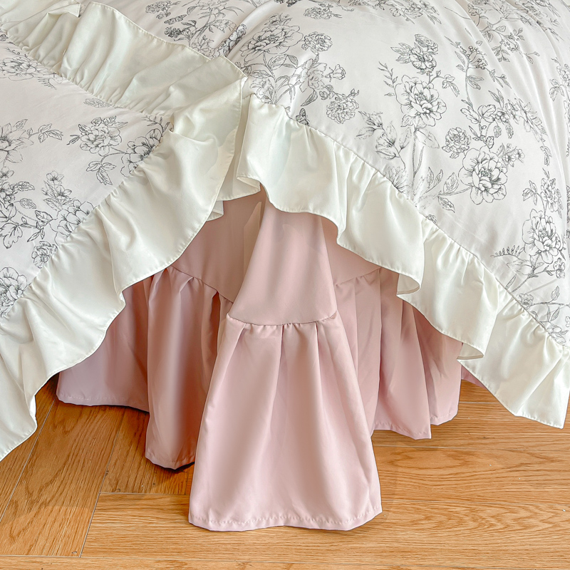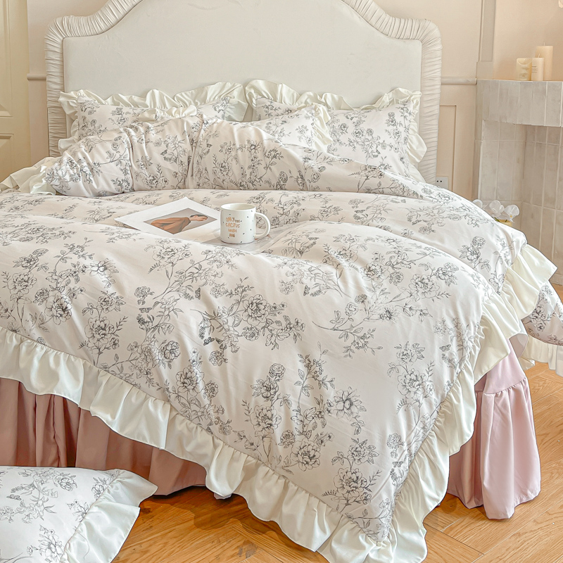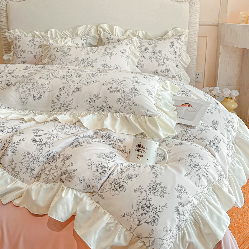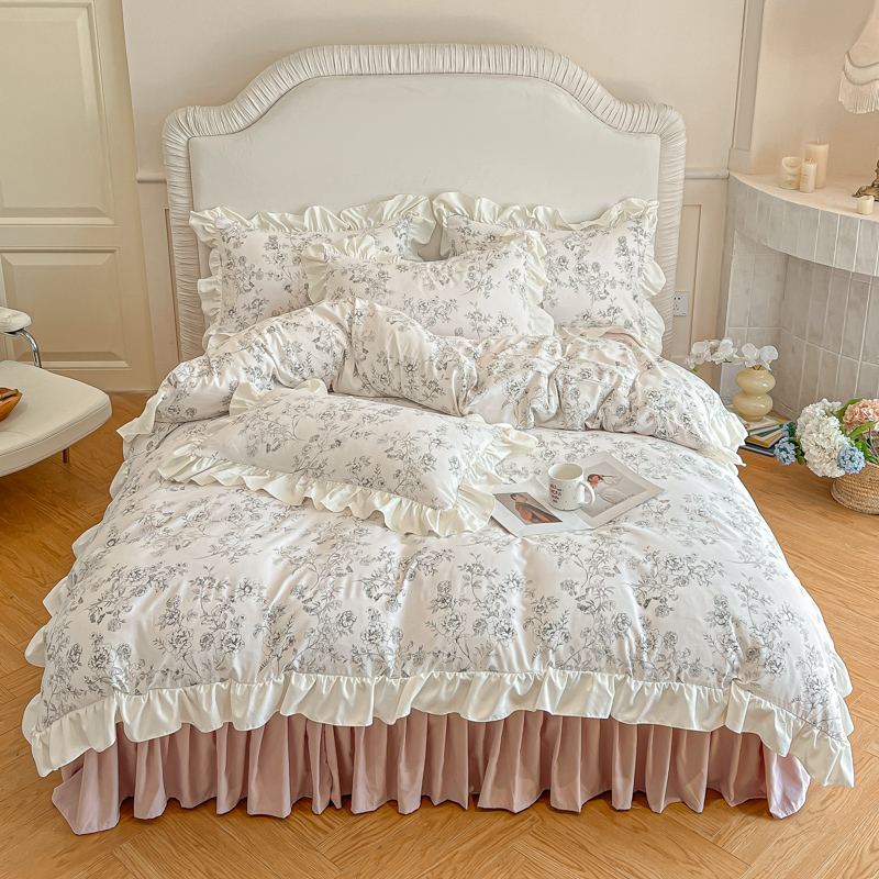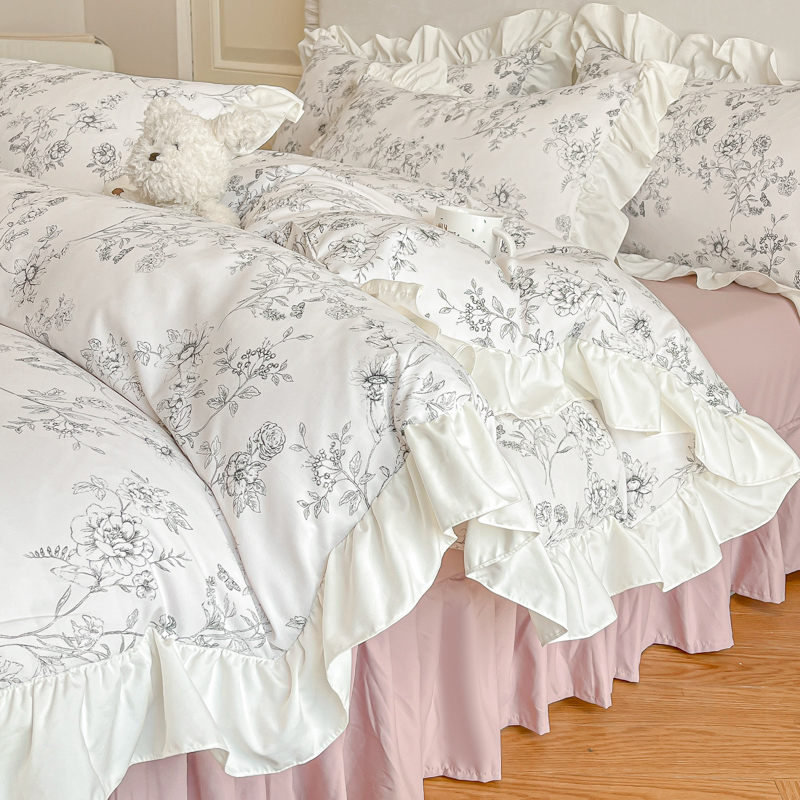 绘萱家居 2025新款舒氧°柔糯棉花边床裙款四件套(全消光细纱仿全棉纯棉)爱慕