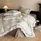 蓝邻家纺 2025春夏新款全棉纯棉复古双层纱花边织带款四件套 瑞莎-深灰