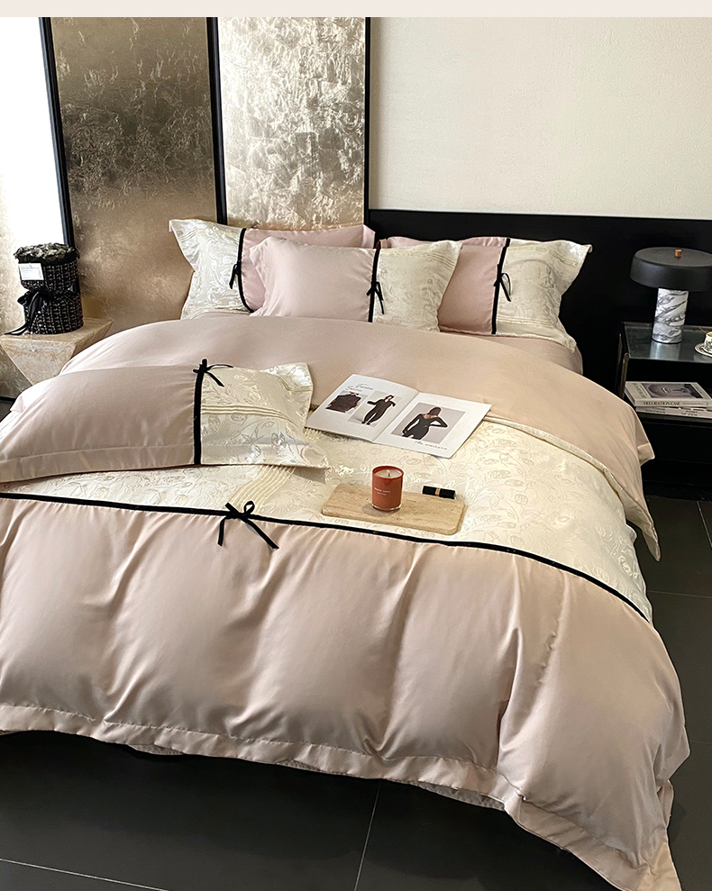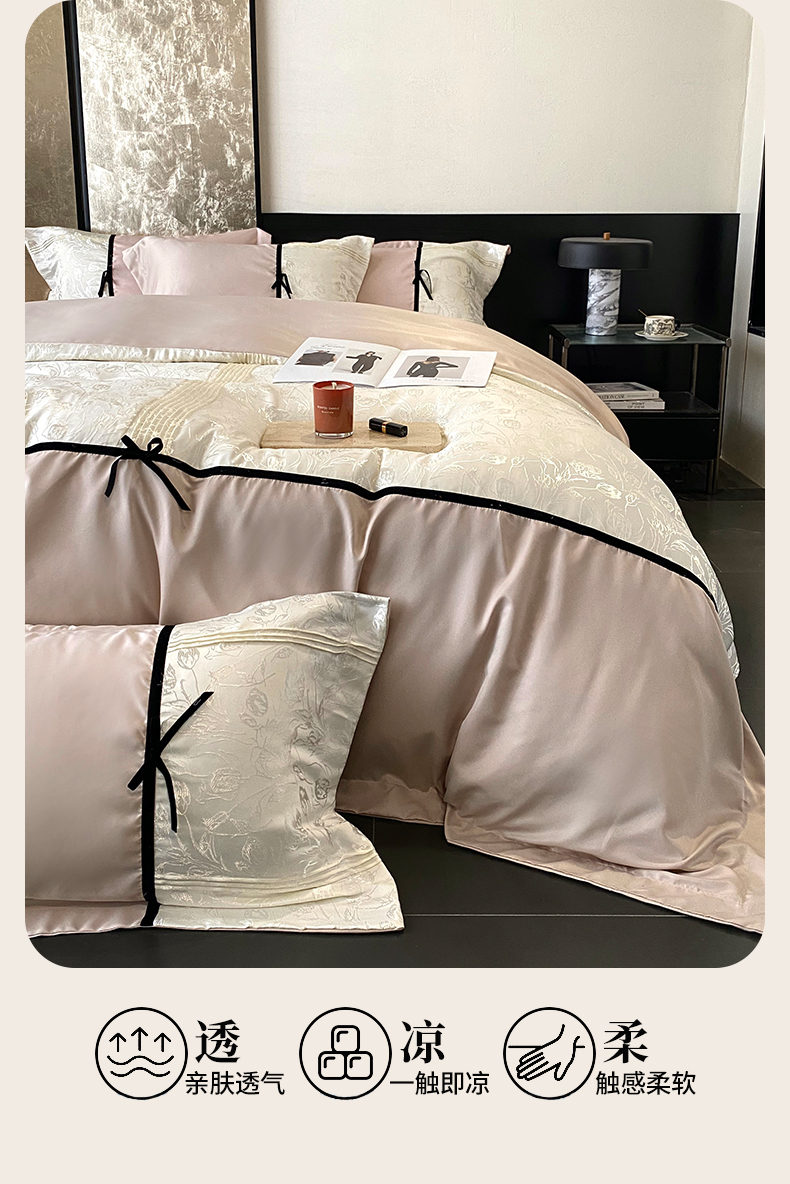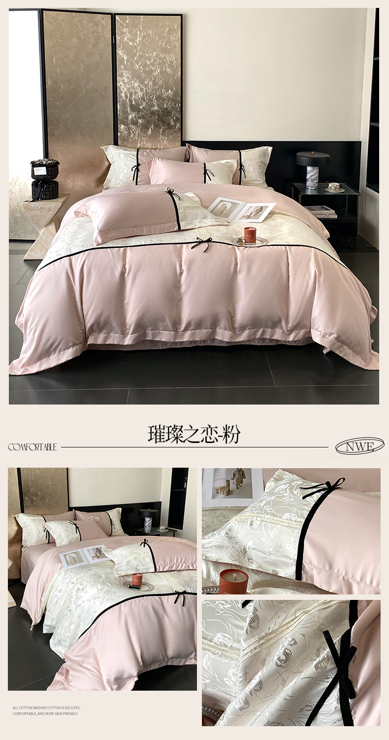 商品名称:优悦生活馆 2025年新款工艺款冰丝浮雕拼接四件套 璀璨之恋-粉