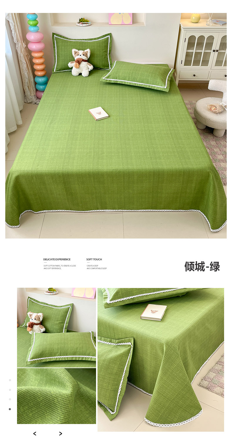 当前位置: 91家纺网 > 商品网购 > 床上用品 > 凉席 > 粗布凉席 > 新印象 2025新款花边老粗布床单款床笠款三件套倾城-绿