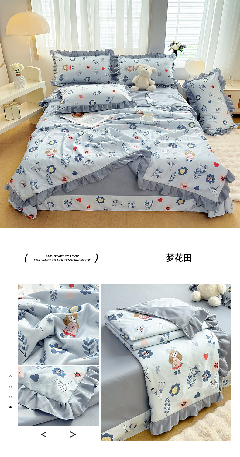 找底底家纺 2025新款60S水洗天丝夏被夏凉被空调被床裙四件套 梦花田