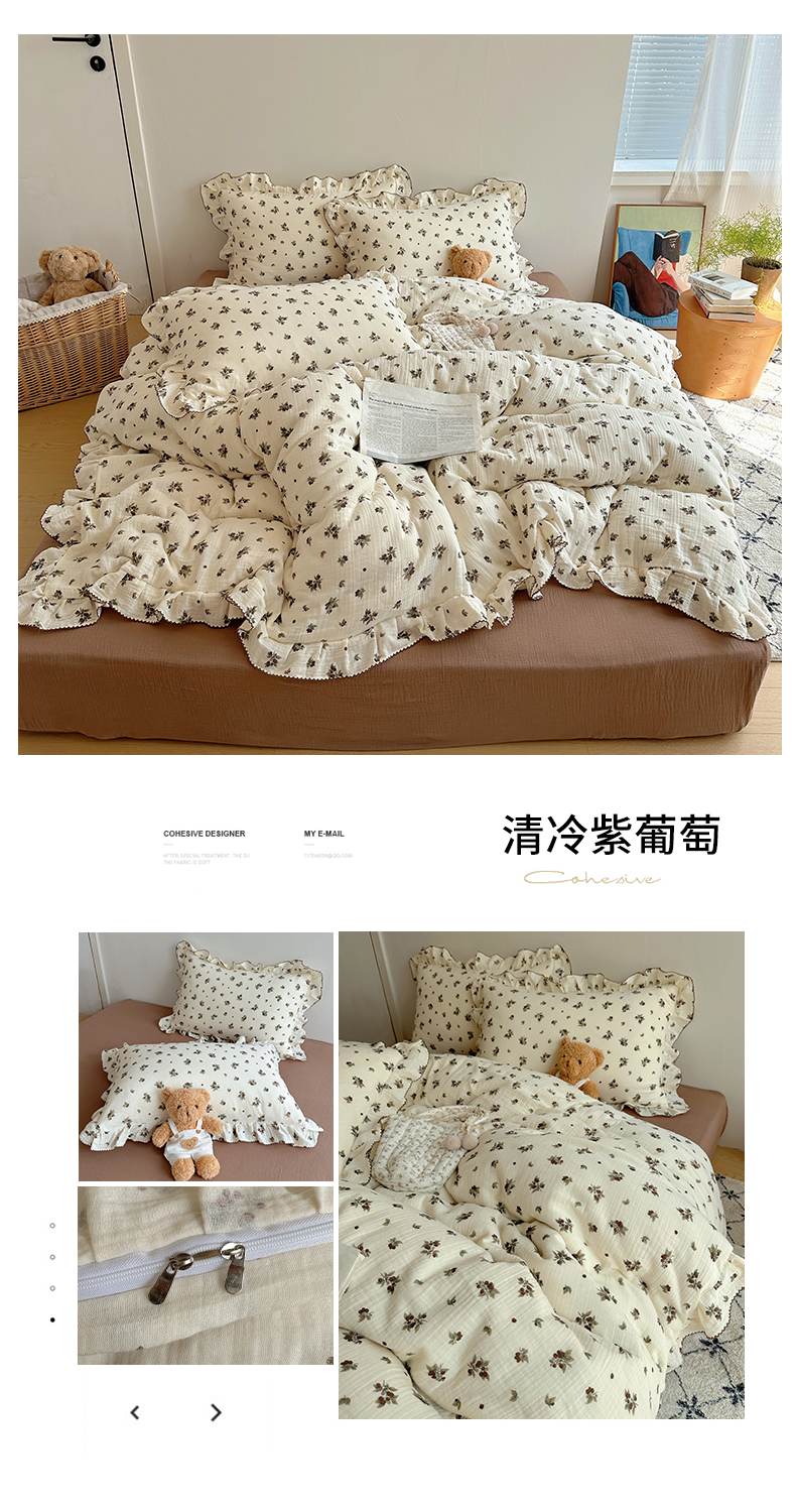 商品名称:2025新韩版花边全棉双层皱皱纱布四件套 清冷紫葡萄