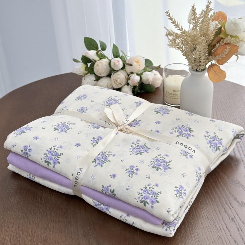 商品名称:黛馨家居2025新款全棉A类小清新双层纱四件套-系列二 紫韵