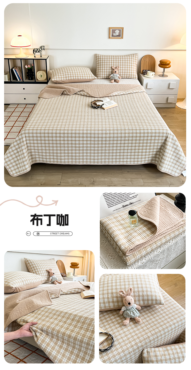 当前位置: 91家纺网 > 商品网购 > 床品套件 > 四件套 > 其它四件套 > 沐纯家居 2025新款格子款天丝棉床盖三件套 布丁咖