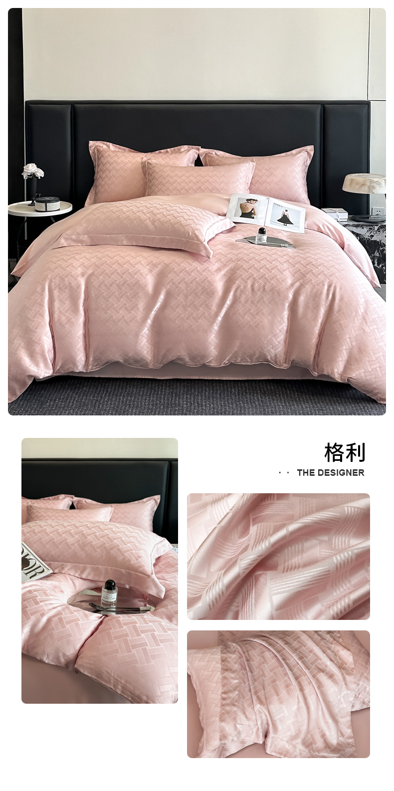 商品名称: 慕晨 2025新款莱赛尔提花四件套高级简奢款天丝夏被4件套直播热款 格利