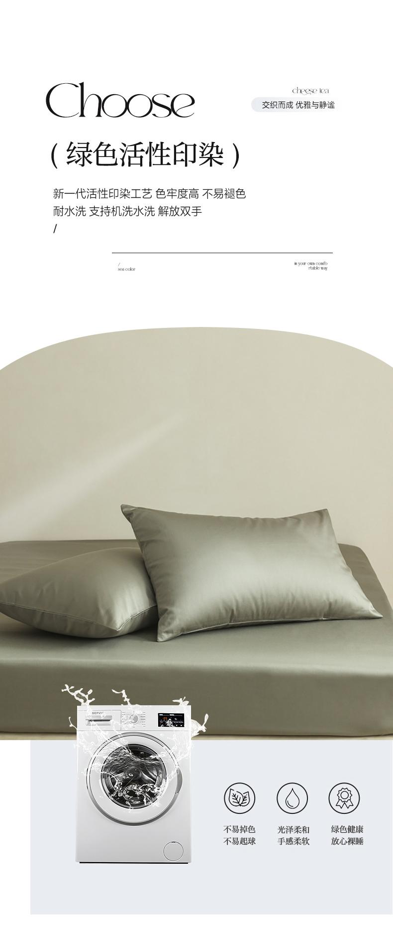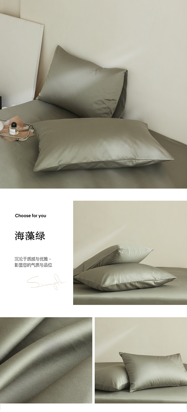 商品名称:棉眠 2025新款长绒棉纯色单品系列-单枕套 海藻绿