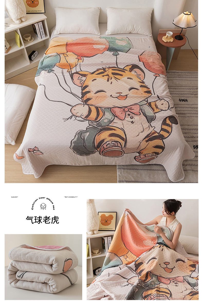 乐家毛巾被 2025春夏新款全棉纯棉六层大版印花毛巾被 气球老虎