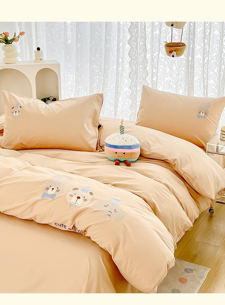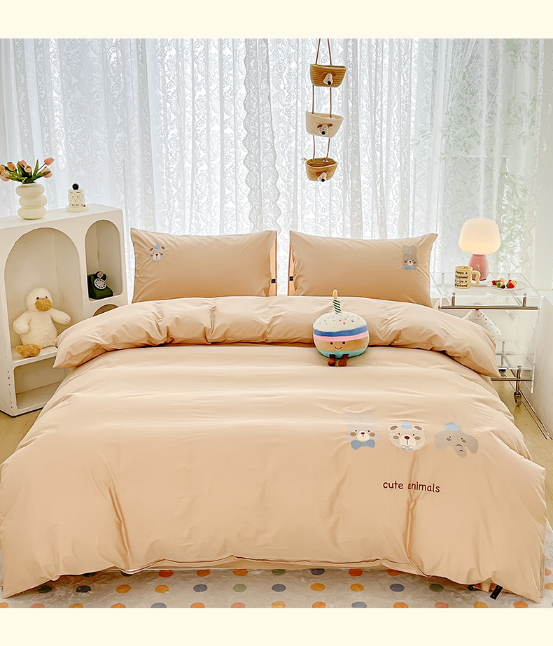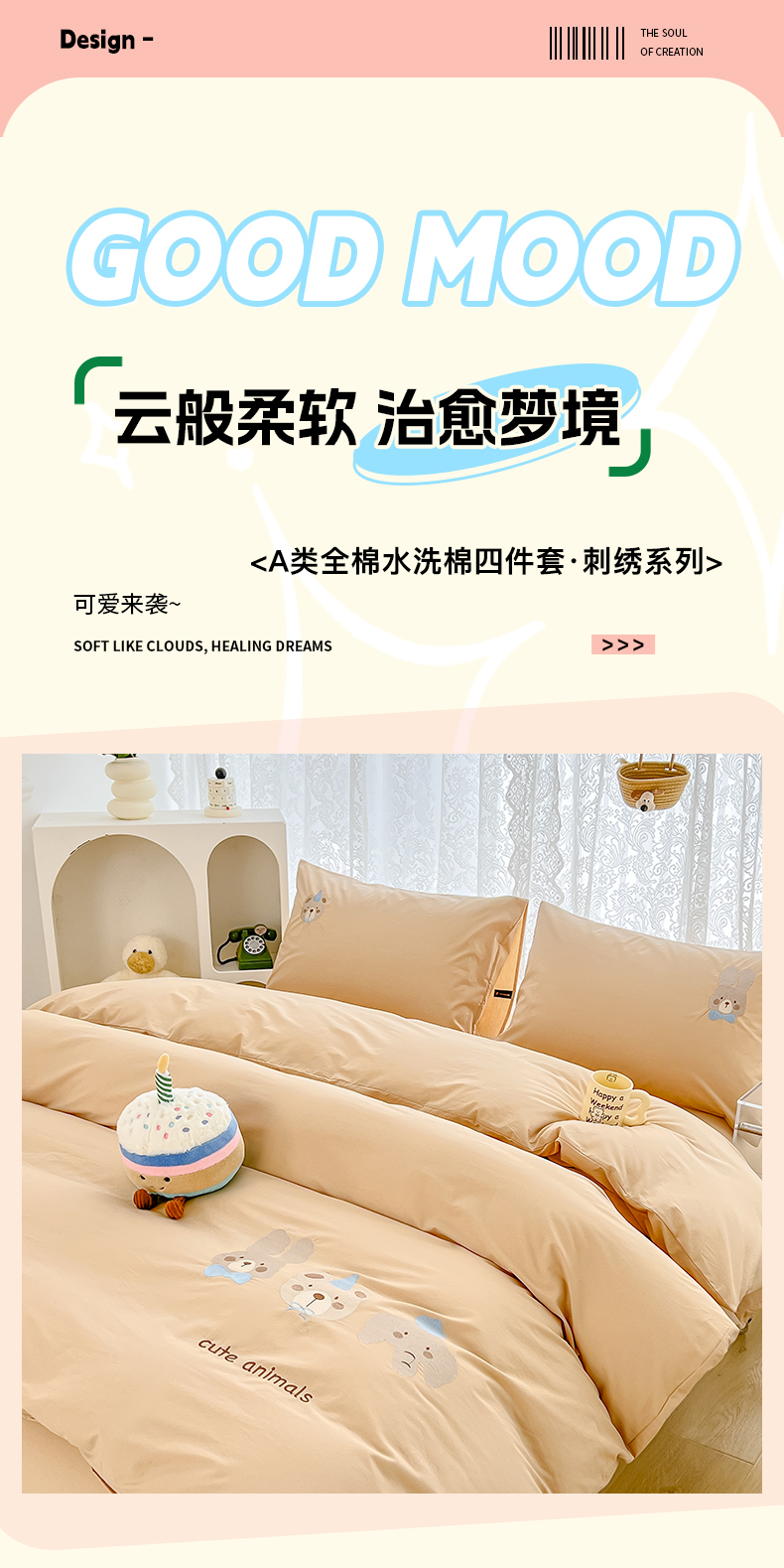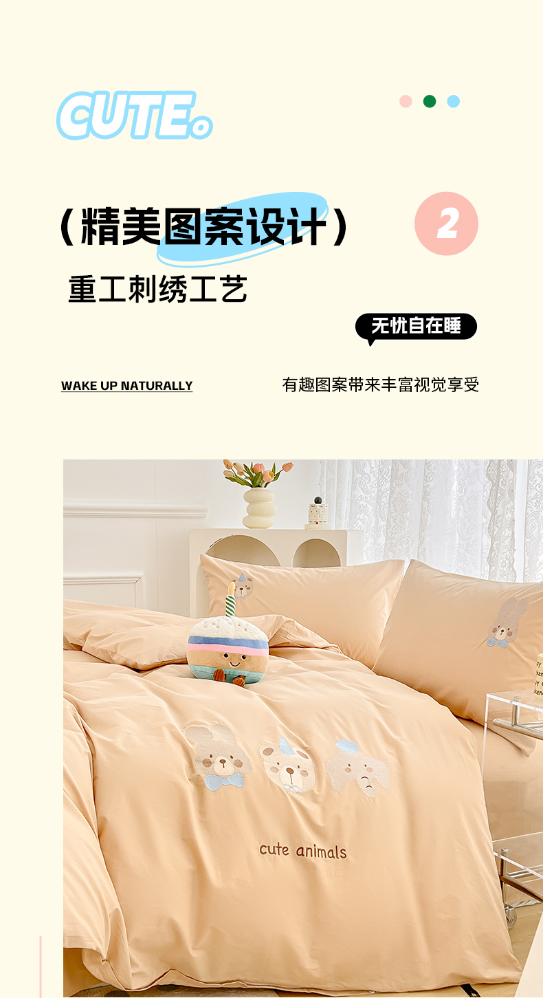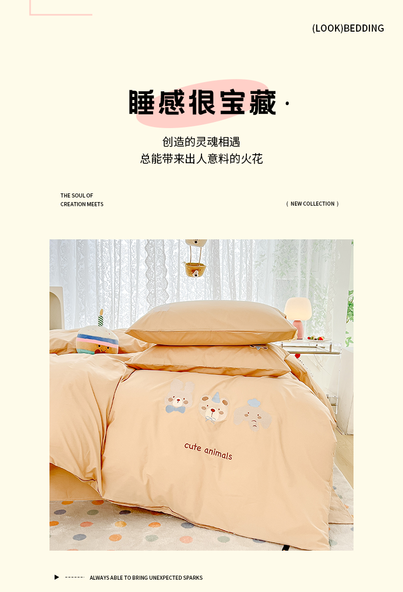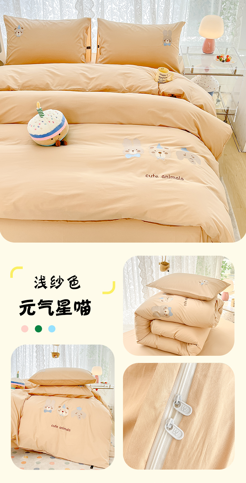 当前位置: 91家纺网 > 商品网购 > 床品套件 > 四件套 > 全棉普通四件套 > 曼町家居 2025春夏新款40支全棉纯棉水洗棉刺绣四件套 元气星喵-浅纱色