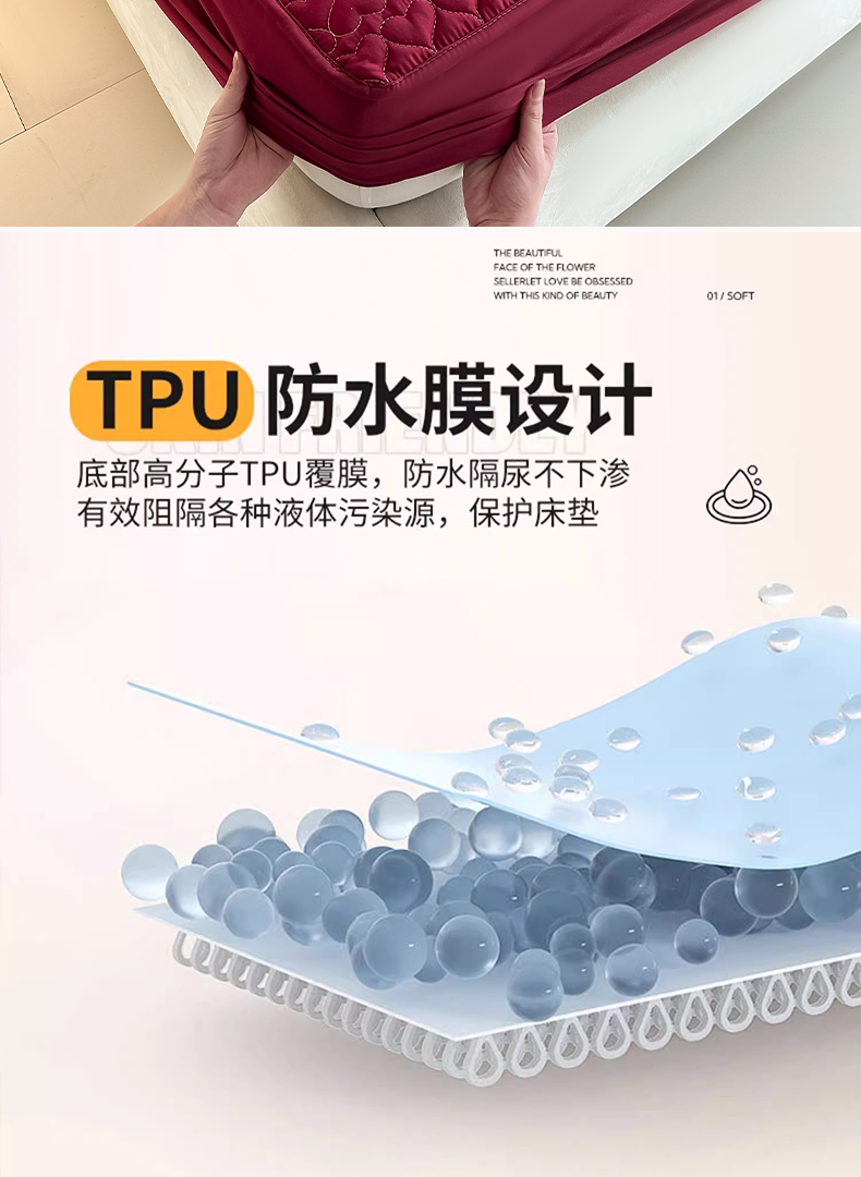 • 91家纺网 家纺一手货源 找家纺 茗婷家纺 2025新款夹棉防水单床笠供外贸跨境亚马逊 米驼夹棉