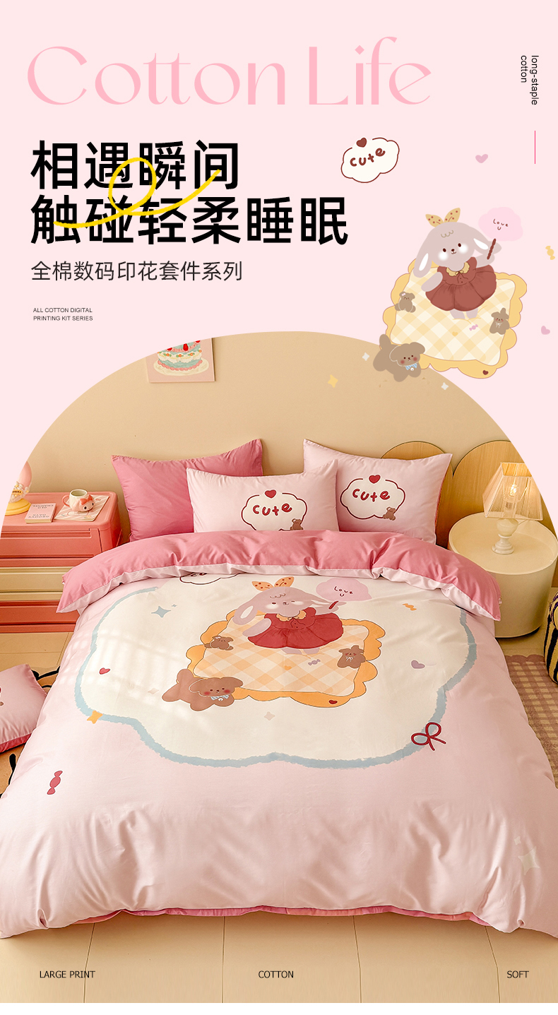 当前位置: 91家纺网 > 商品网购 > 床品套件 > 四件套 > 全棉普通四件套 > 玉元坊 2025新款全棉纯棉数码印花卡通床单床笠床裙四件套三件套 兔子伙伴