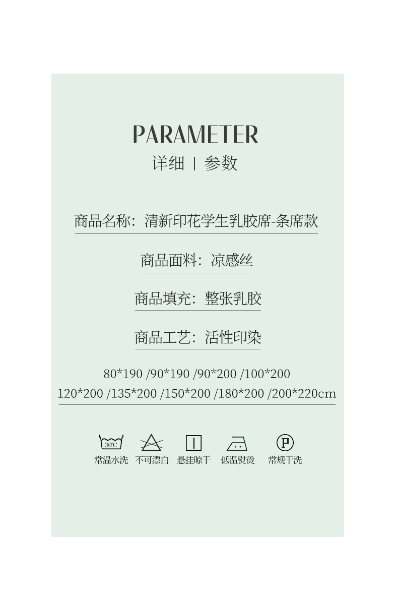 商品名称:(总)爱思凯家纺 2025新款【学生】印花清新乳胶条席
