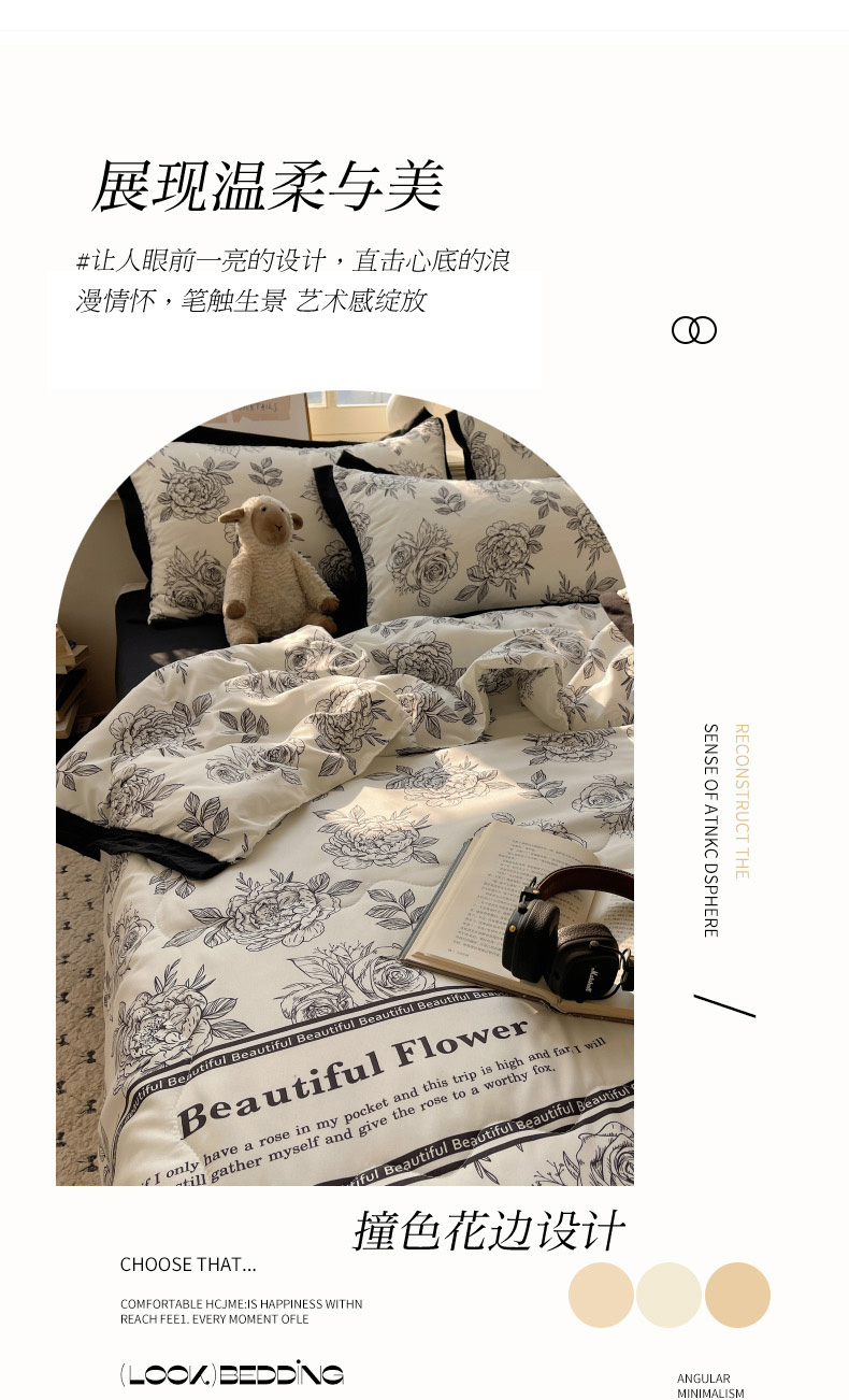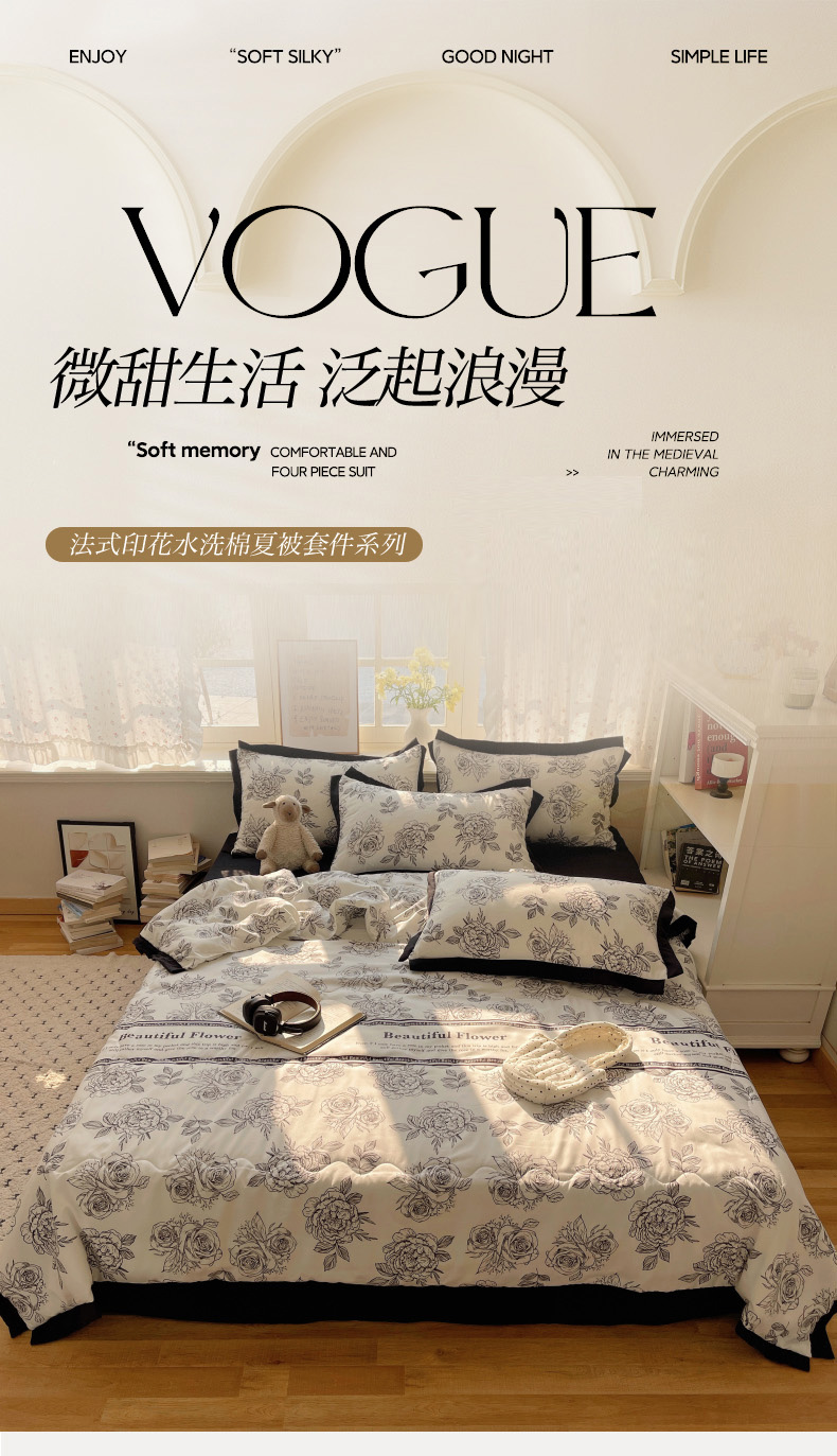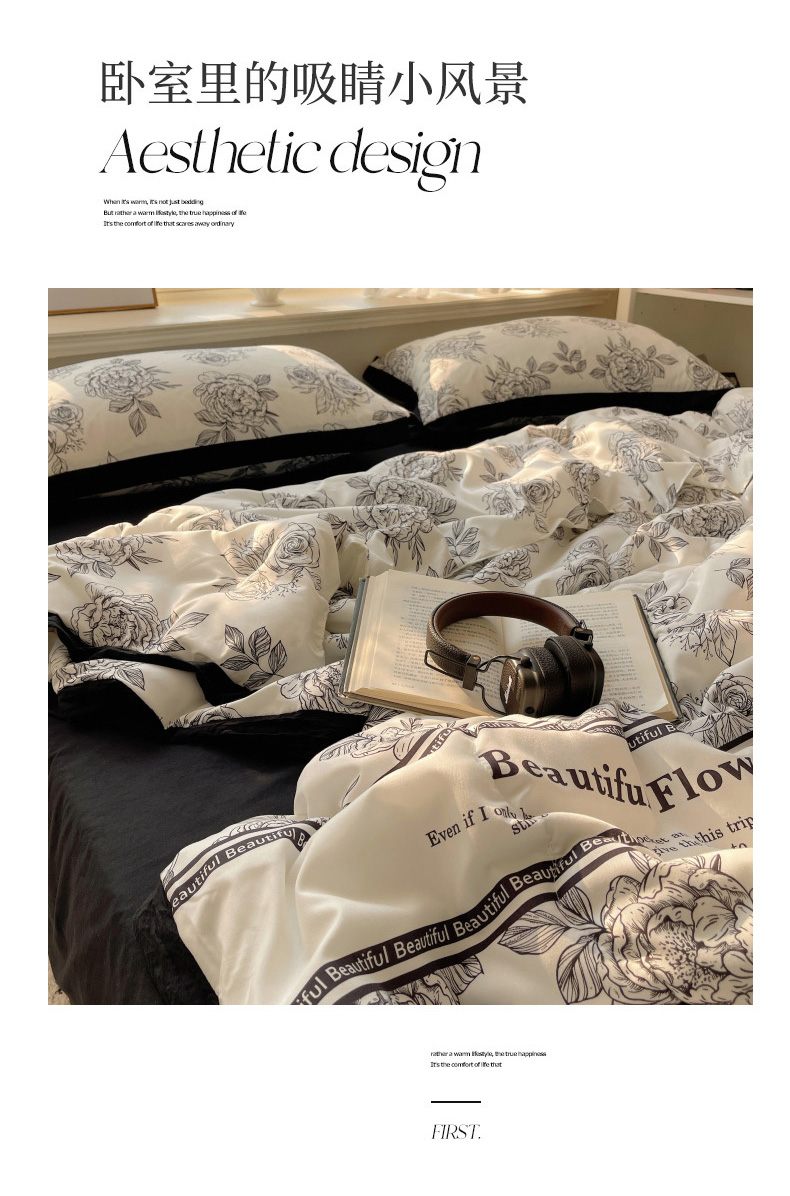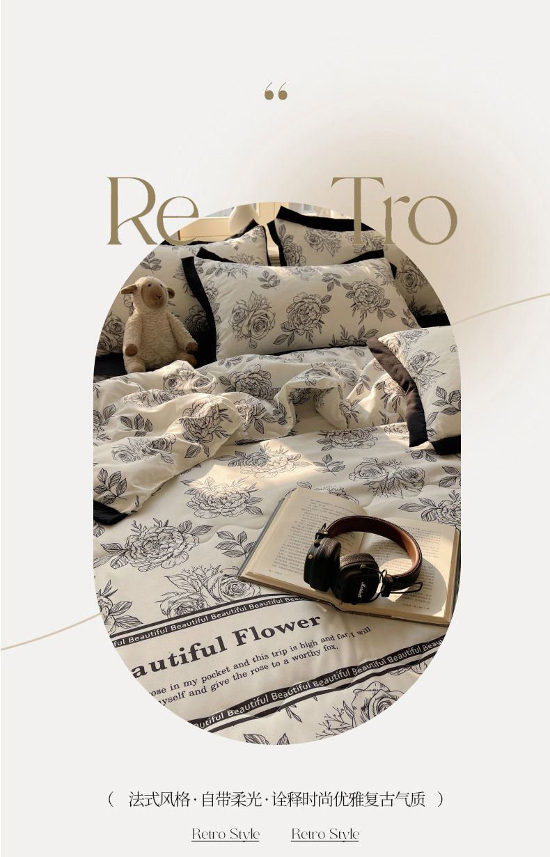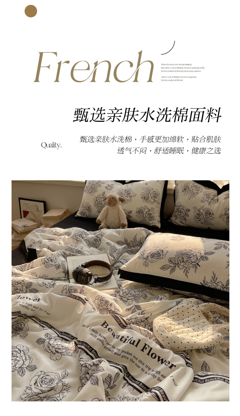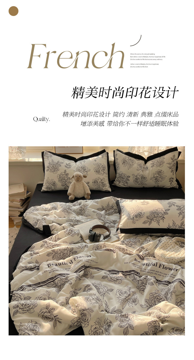 当前位置: 91家纺网 > 商品网购 > 床品套件 > 四件套 > 夏被四件套 > 花伞家居 2025新款赫本高级感黑白系列花边夏被四件套 夏被-花蕊