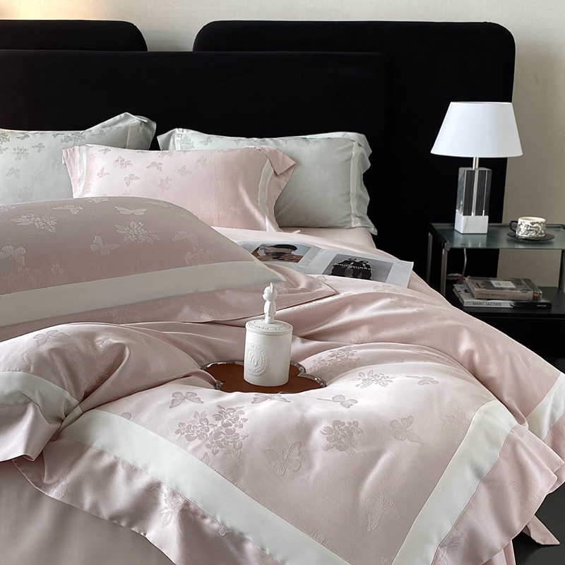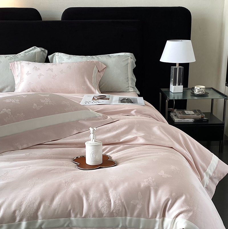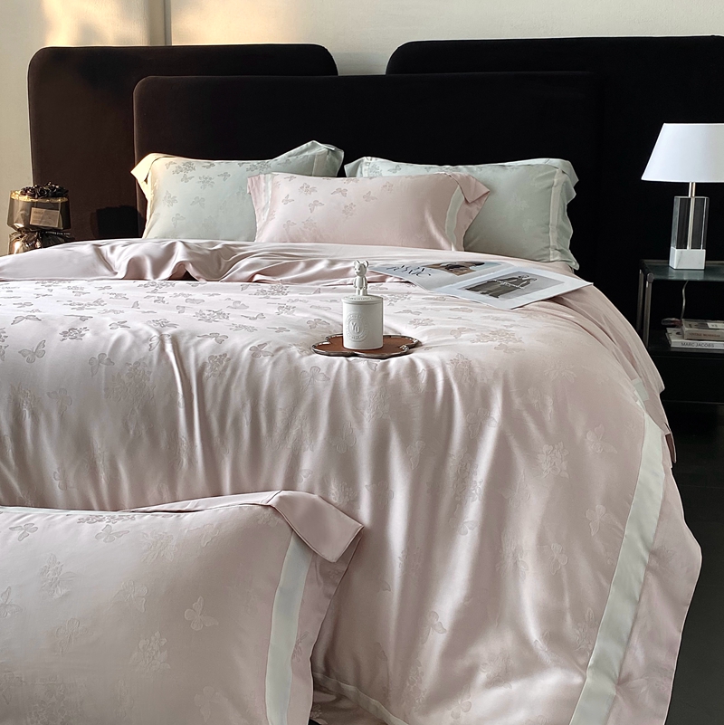 花时间2025新款蝴蝶提花天丝棉四件套-翩舞 翩舞-粉