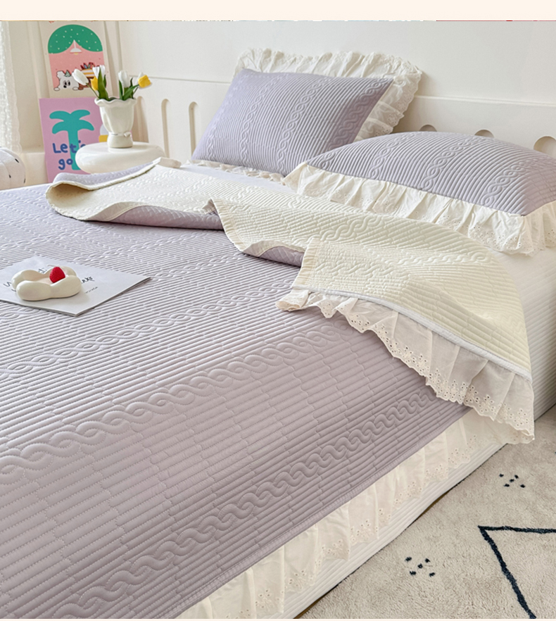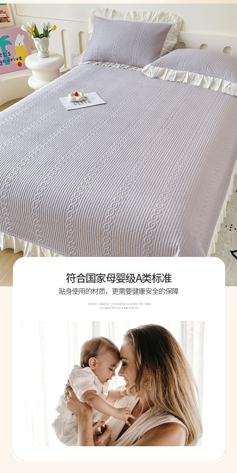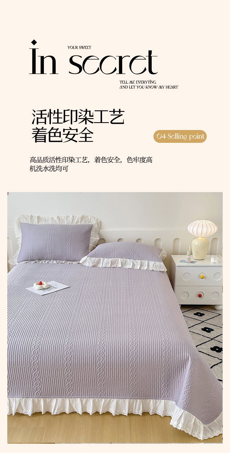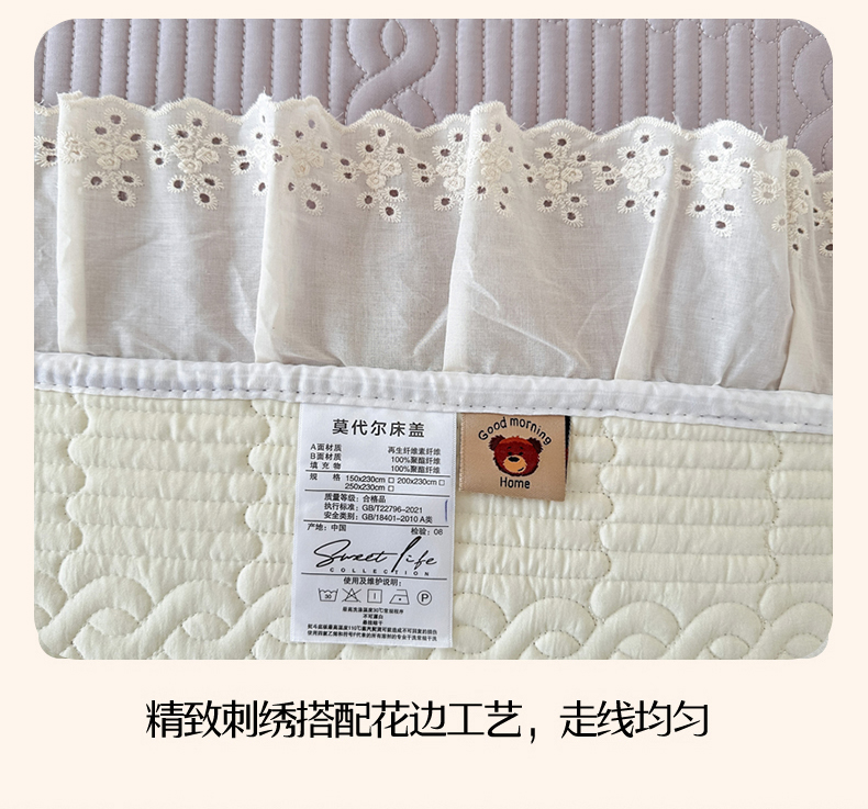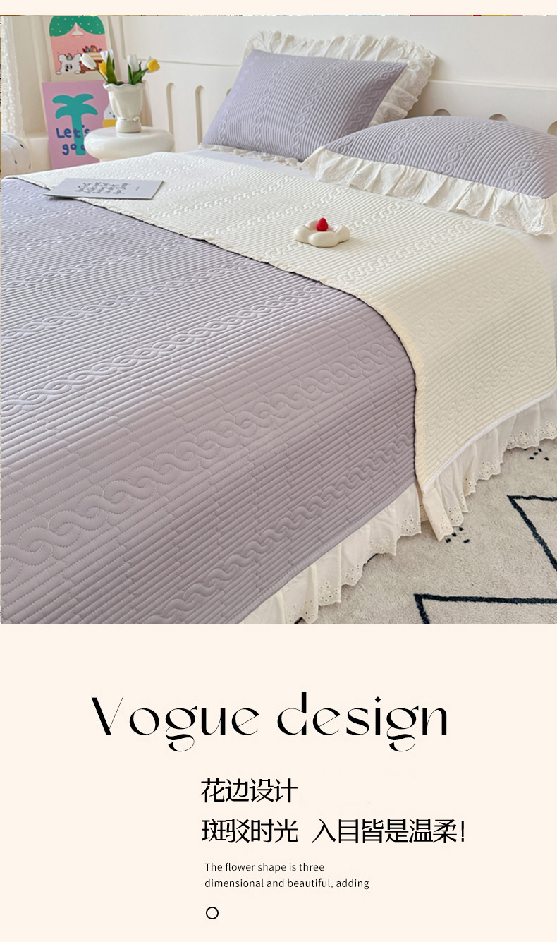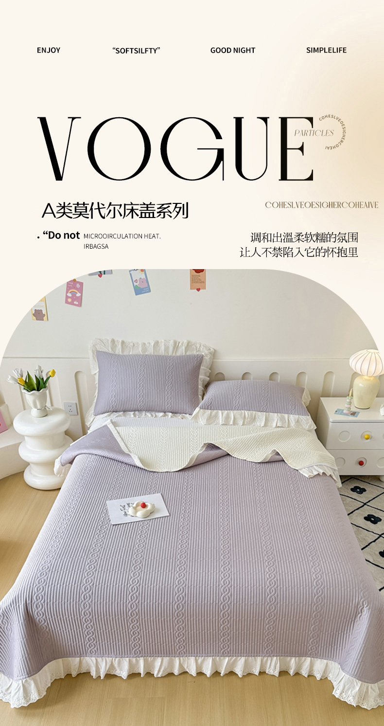 • 91家纺网 家纺一手货源 找家纺 (总)岚吉 2025新款莫代尔纯色小花边床盖三件套,白桃粉,海风蓝,皓月黄,奶油绿,天青色,珍珠灰