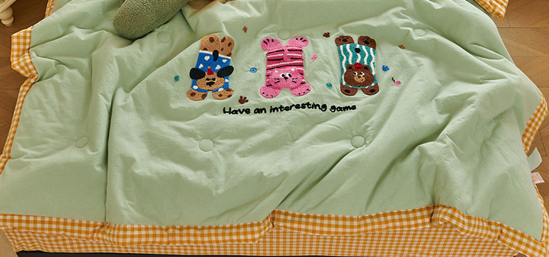 2025新款色织全棉纯棉绣花单夏被夏凉被空调被 开心KT