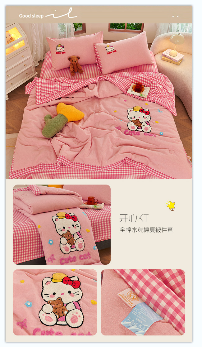 商品名称:2025新款色织全棉纯棉绣花单夏被夏凉被空调被 开心KT