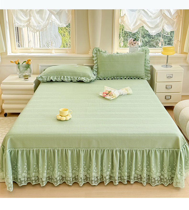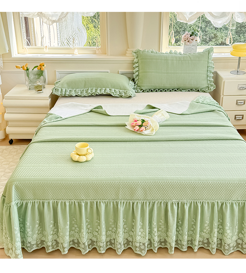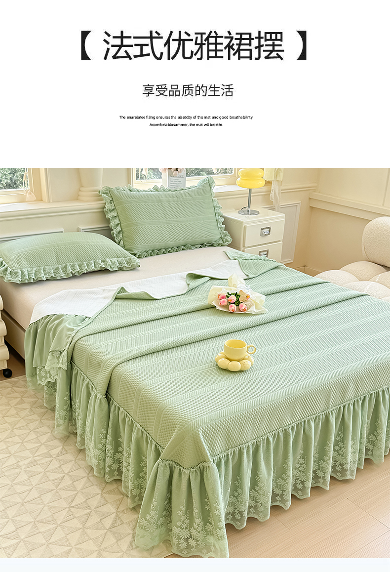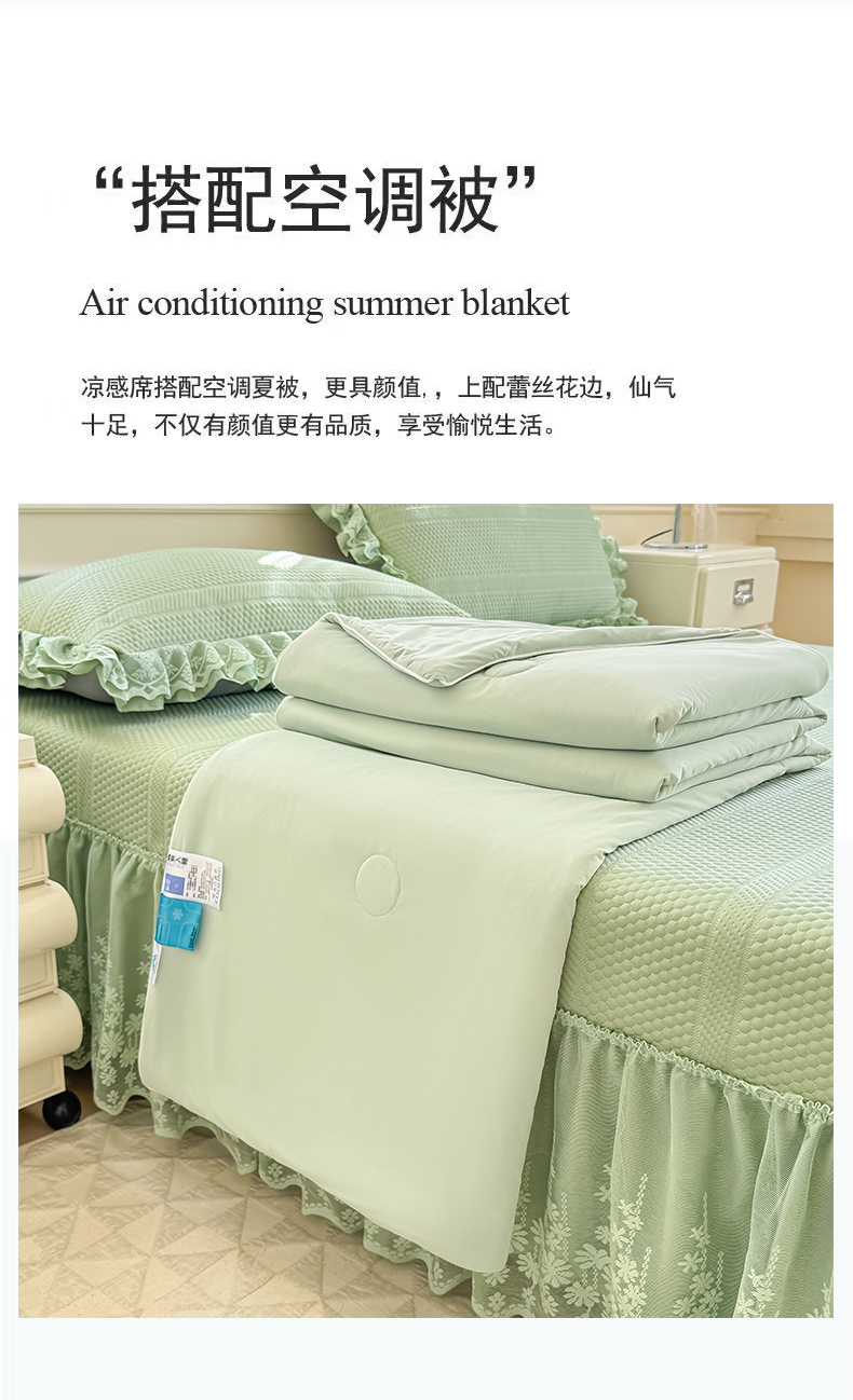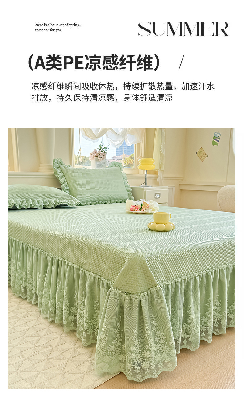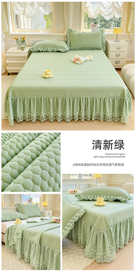 商品名称:慧菲 2025新款PE高分子凉感席床裙凉席三件套 【6-7斤】 清新绿