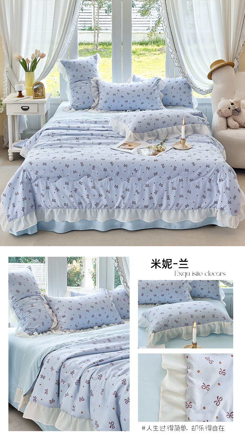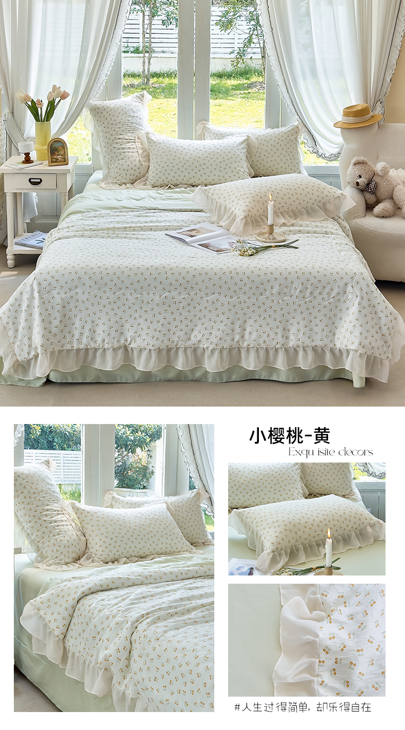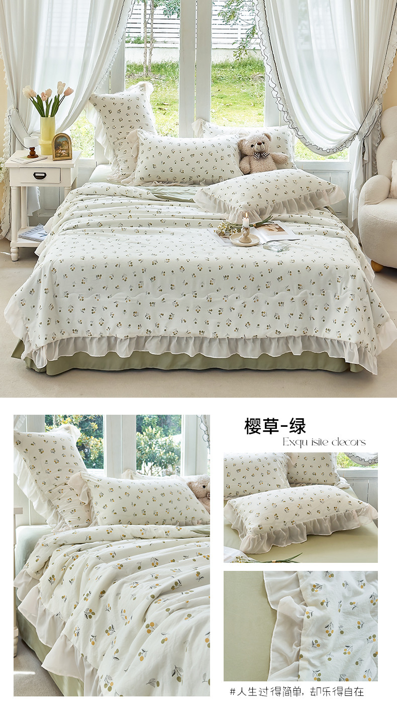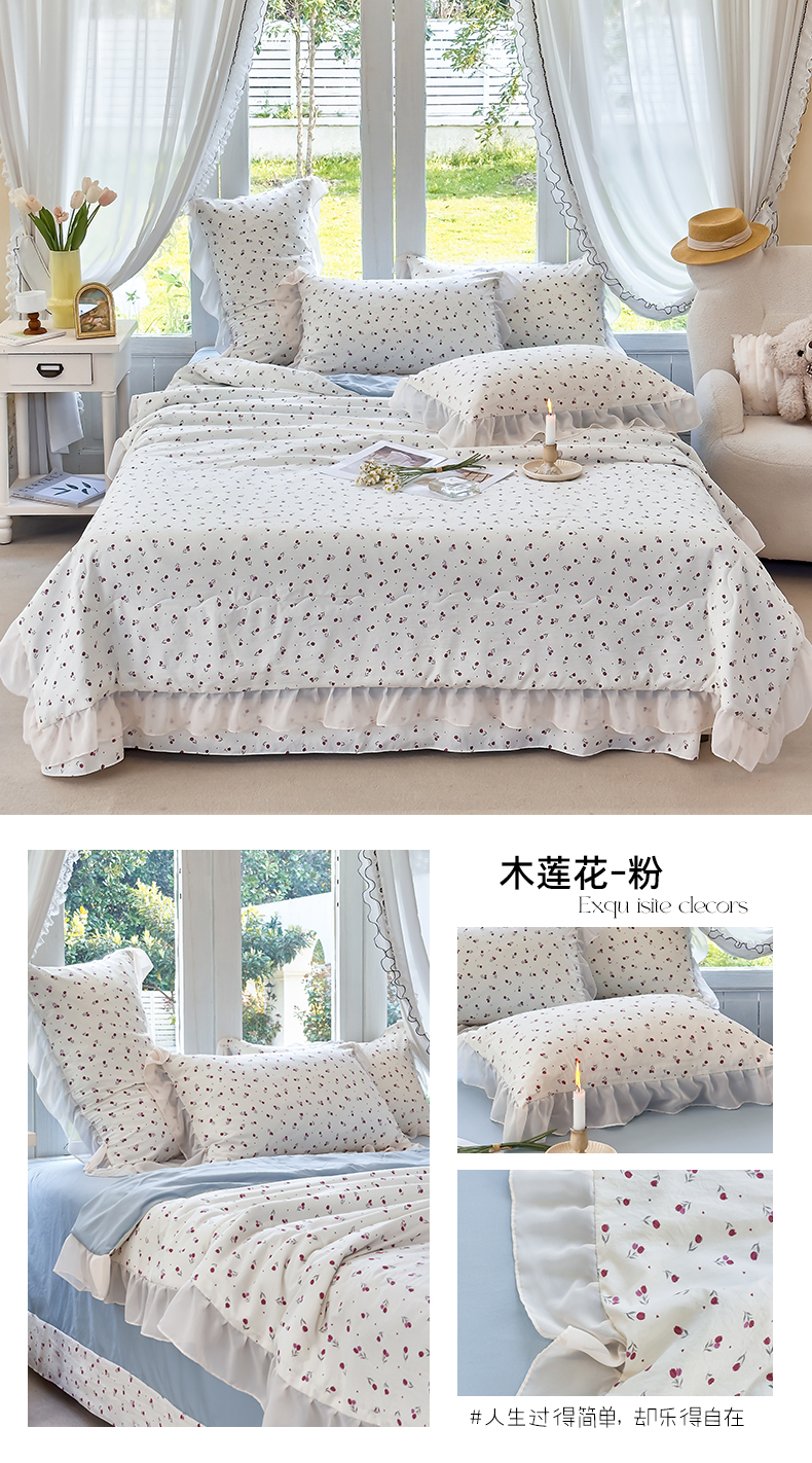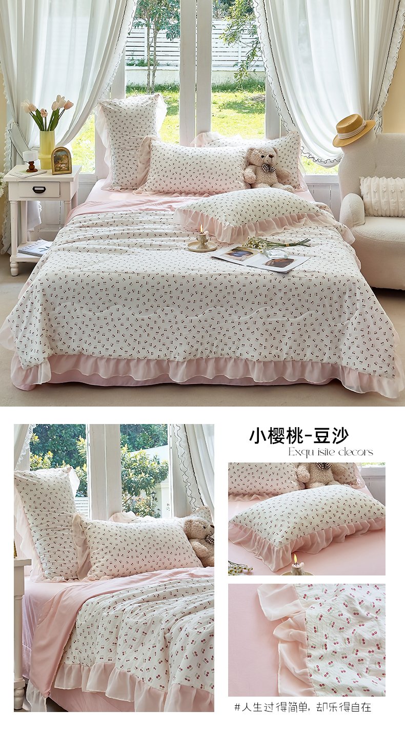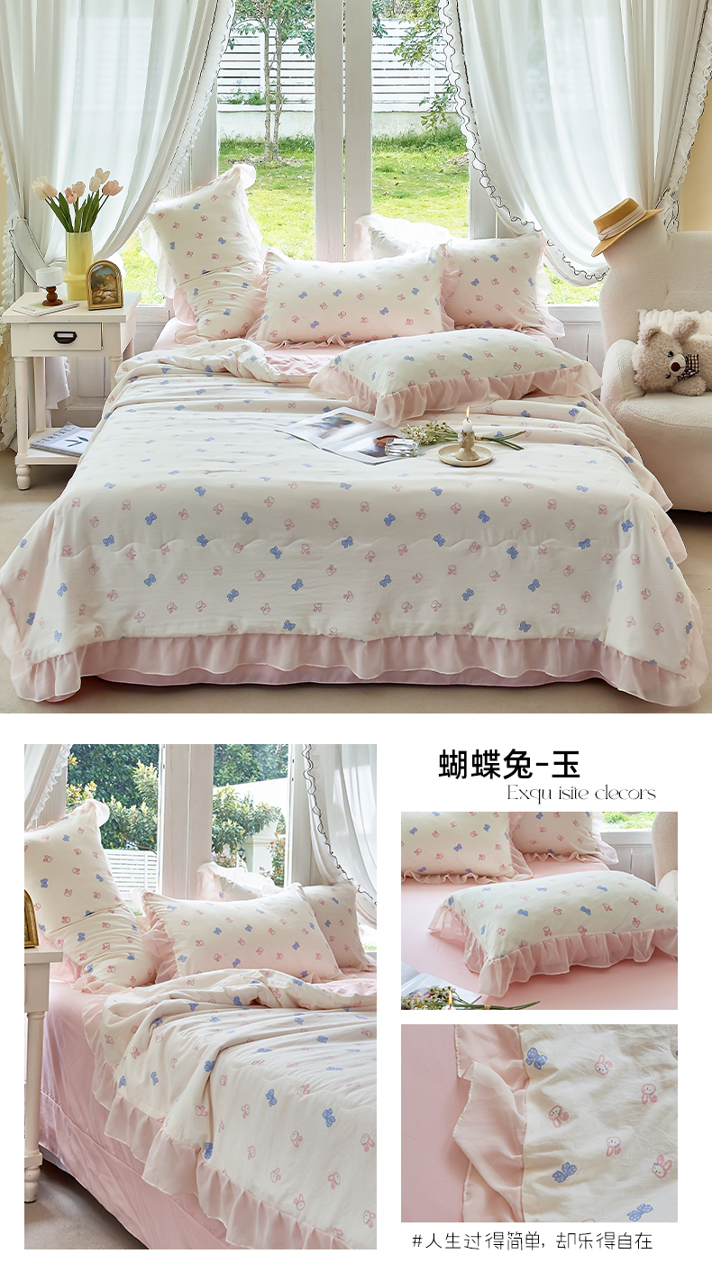 (总)梦莱斯 2025新款云感木棉皱皱双层纱全棉花边四件套,百福蓝,春风里,薄荷微凉,春晓,豆蔻,蝴蝶梦,可颂,兰黛,山野栀子,素颜,太妃糖,心动,遇见,芝士奶酪,紫爱心,紫苏,花园兔,蜡笔画,小黑兔,白茶-绿,初恋,莱茵河畔,桃花诺