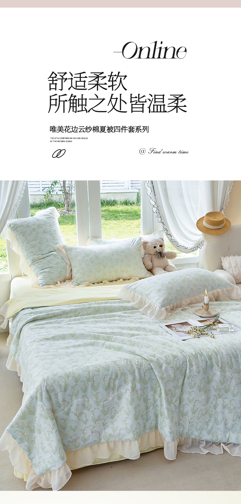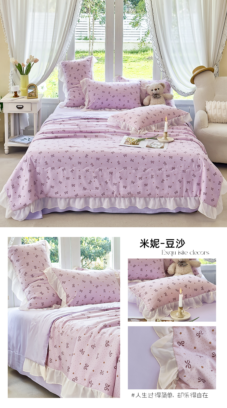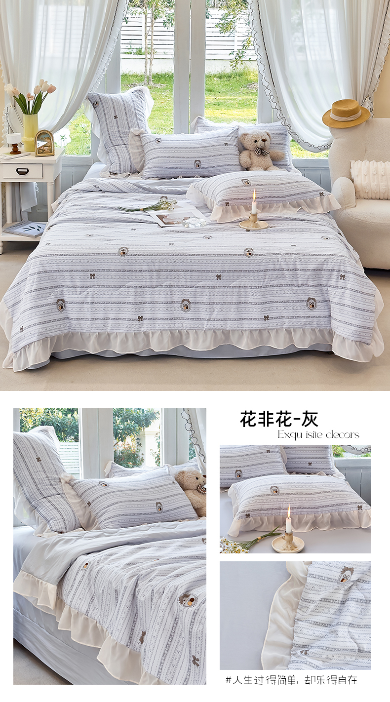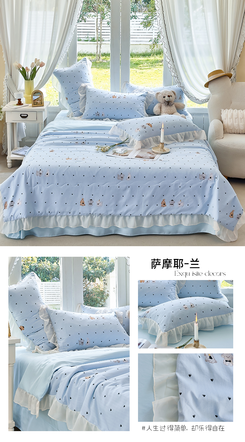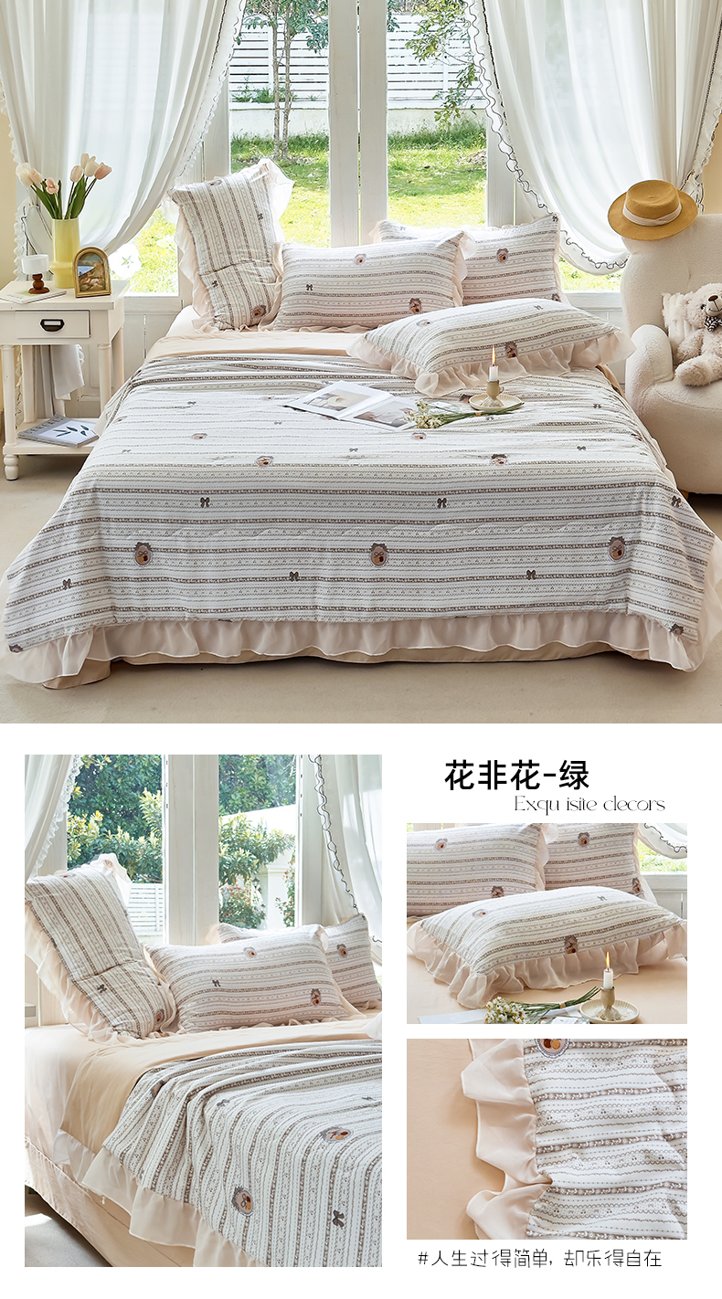 (总)梦莱斯 2025新款云感木棉皱皱双层纱全棉花边四件套,百福蓝,春风里,薄荷微凉,春晓,豆蔻,蝴蝶梦,可颂,兰黛,山野栀子,素颜,太妃糖,心动,遇见,芝士奶酪,紫爱心,紫苏,花园兔,蜡笔画,小黑兔,白茶-绿,初恋,莱茵河畔,桃花诺