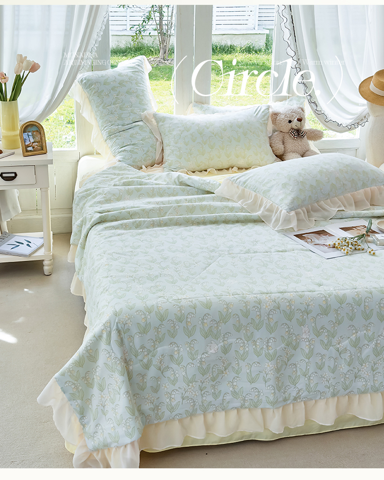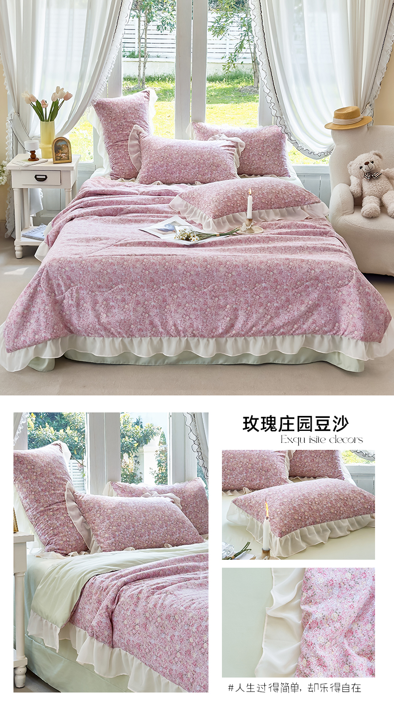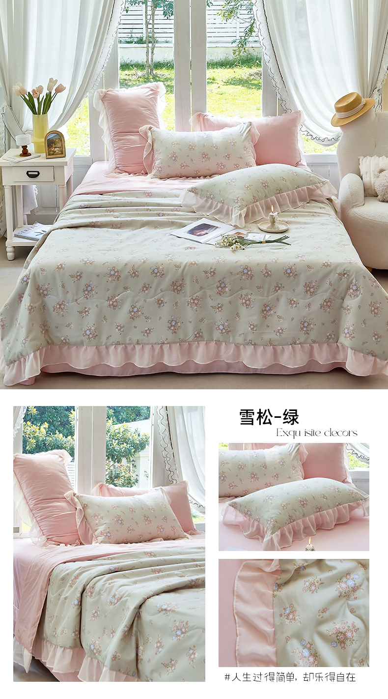 (总)梦莱斯 2025新款田园碎花纯棉花边四件套-床盖款,采薇,花精灵,花开半夏,莱茵,恋爱季,绿叶仙踪,糜花似锦,糜花熙悦,秘境花园