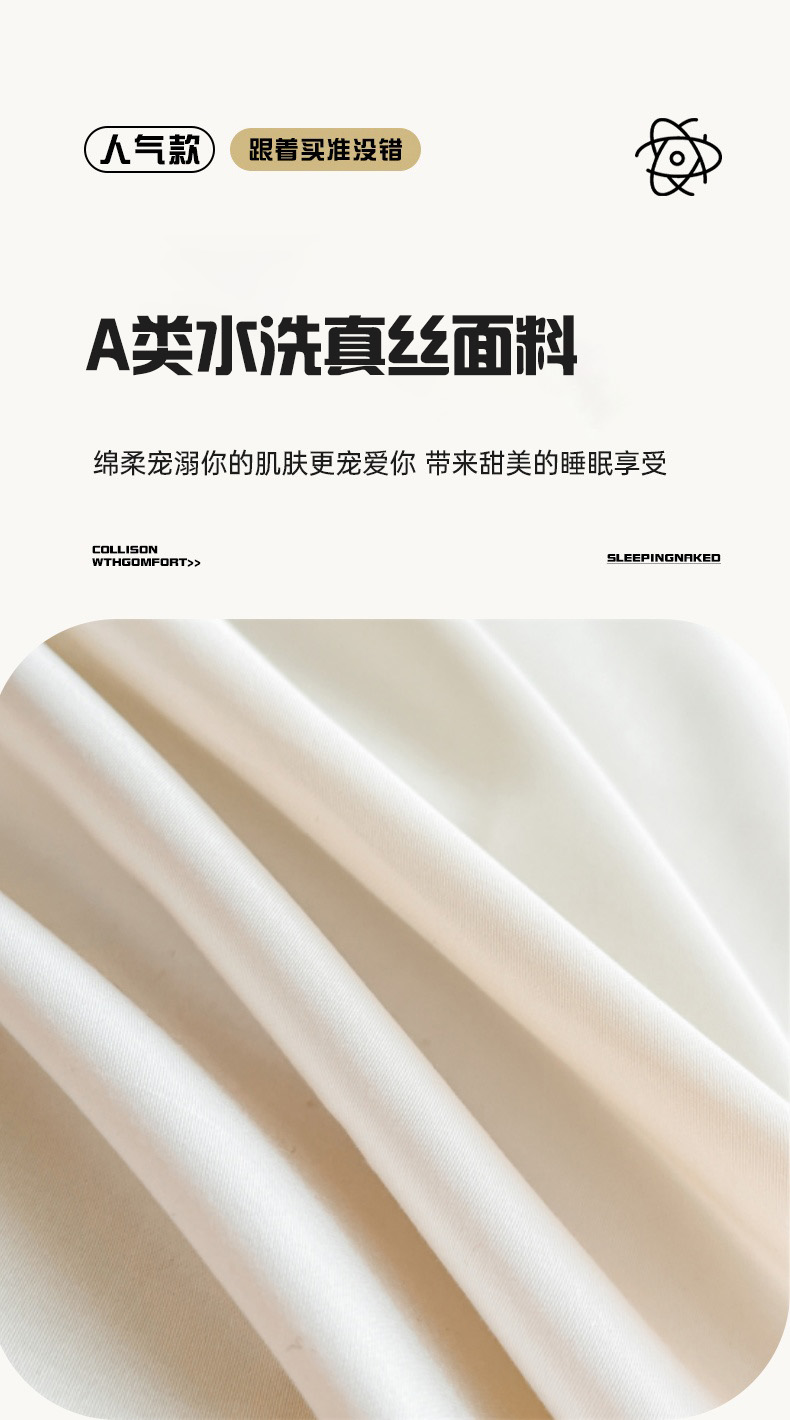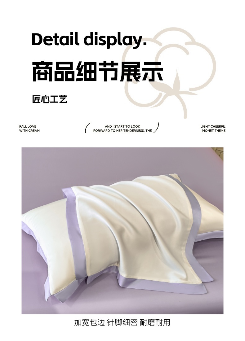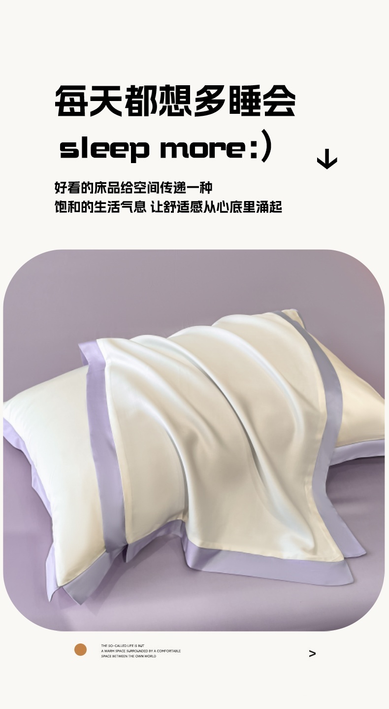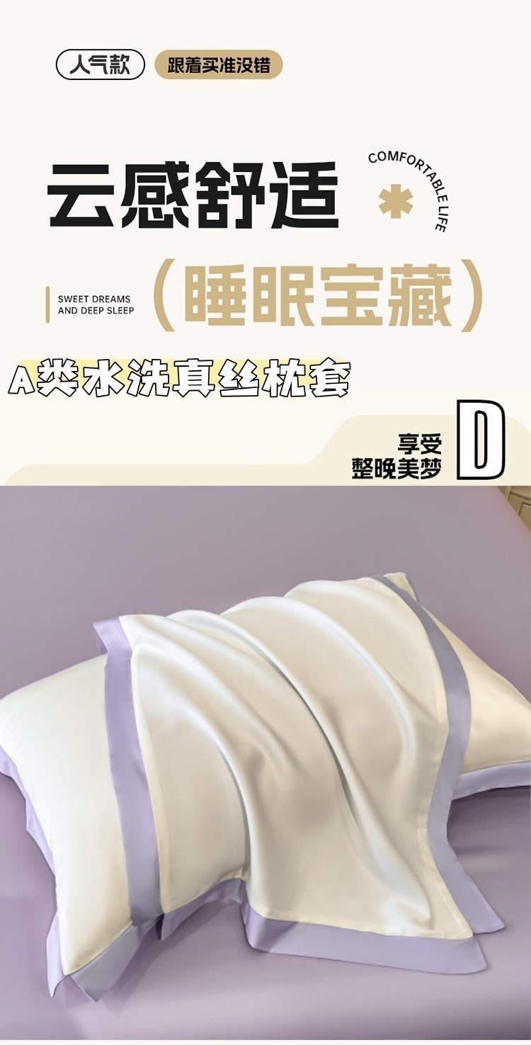 商品名称:圣比熊 2025新款水洗真丝枕套冰丝凉感枕头套夏天薄款枕芯套 奶油浅紫