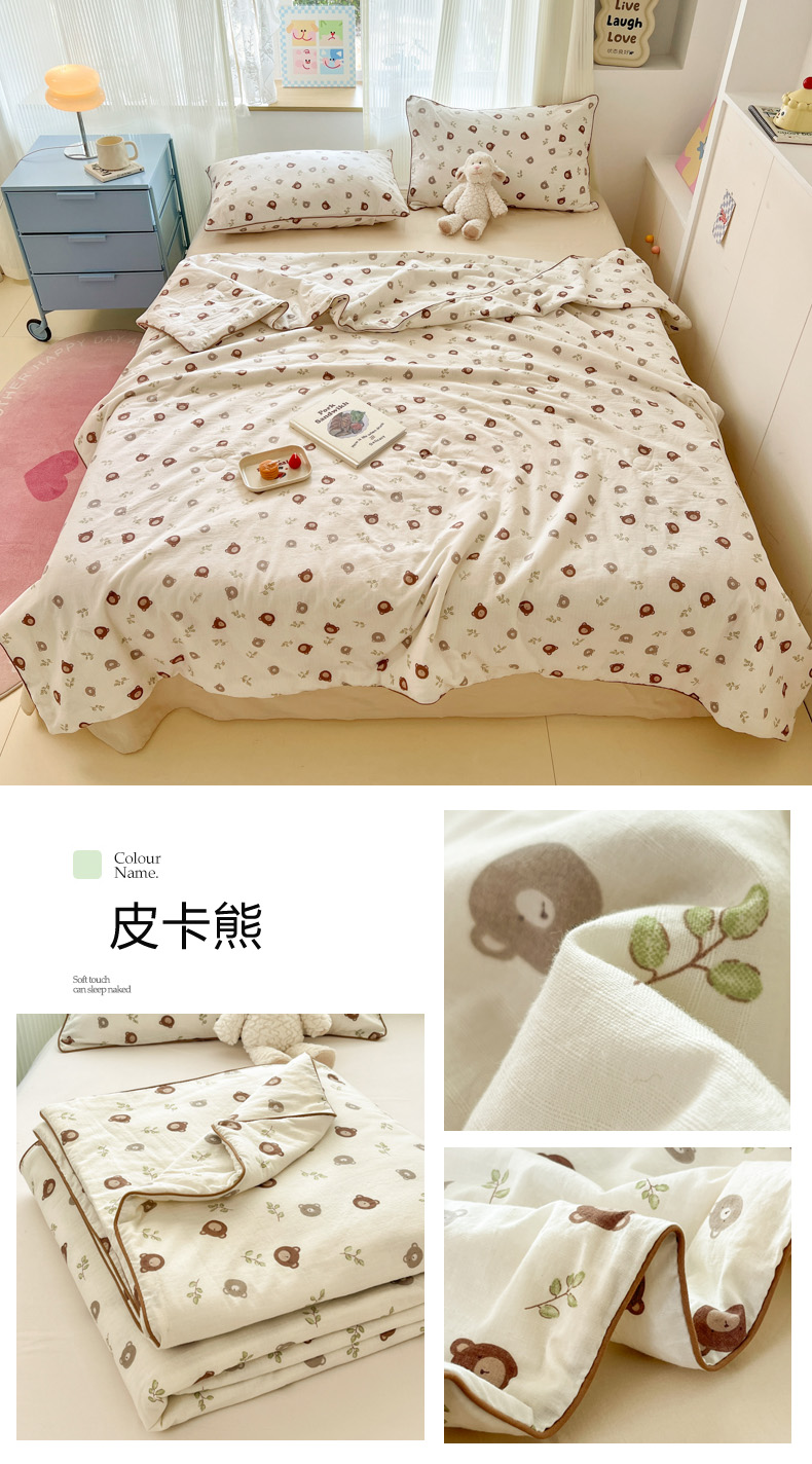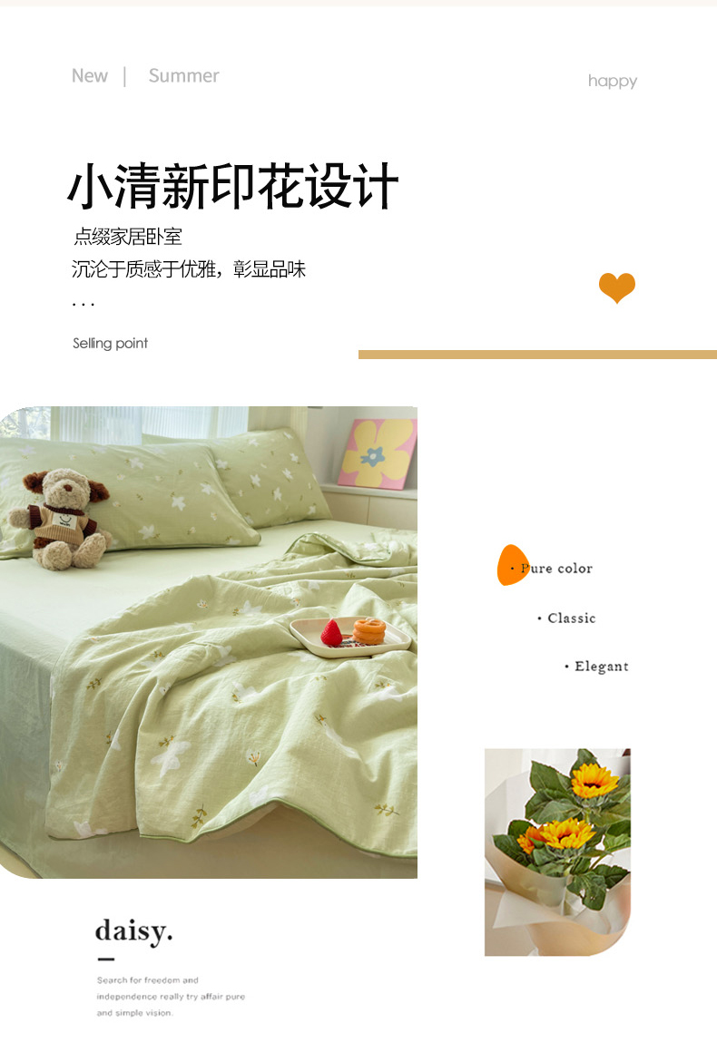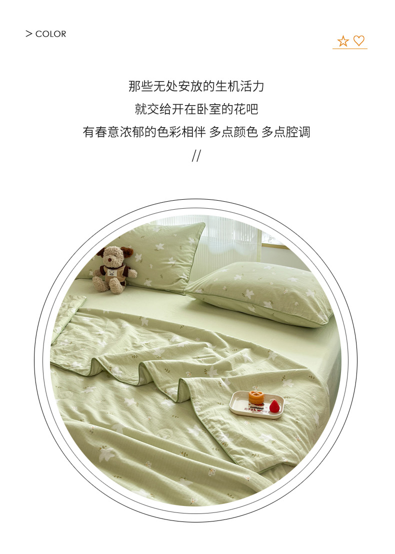 商品名称:慕尚家纺 2025新款全棉纯棉双层纱夏被夏凉被空调被四件套 蝶雅绿