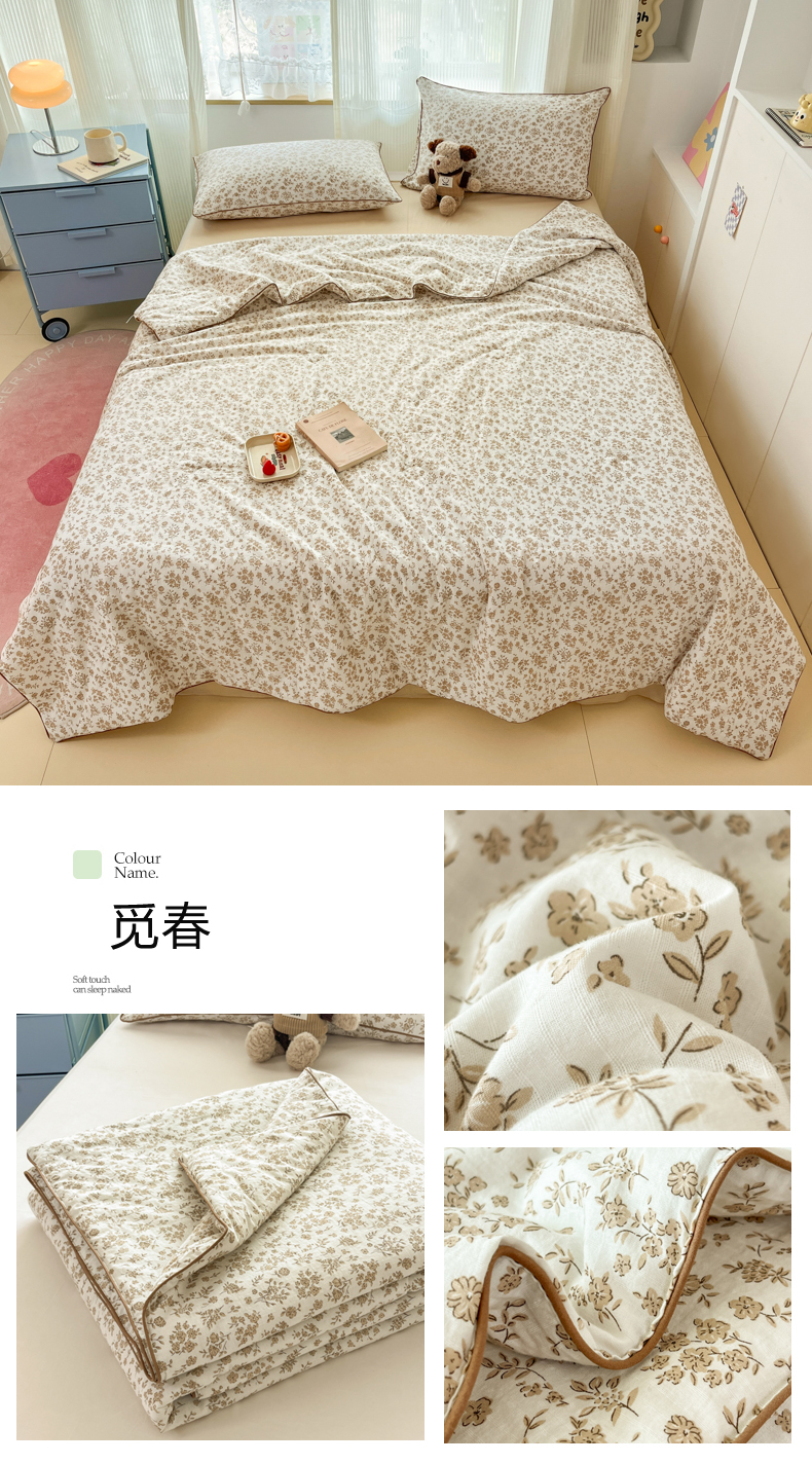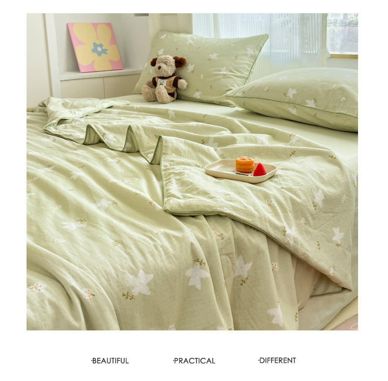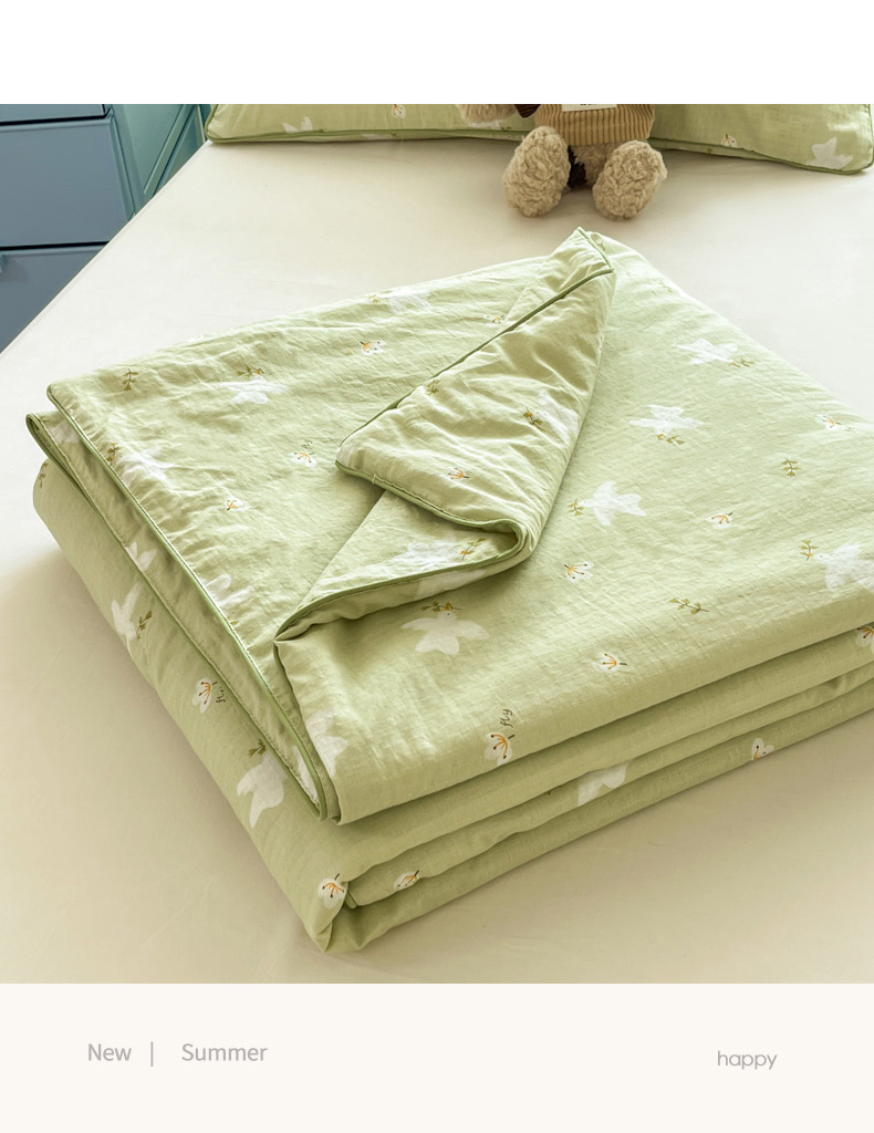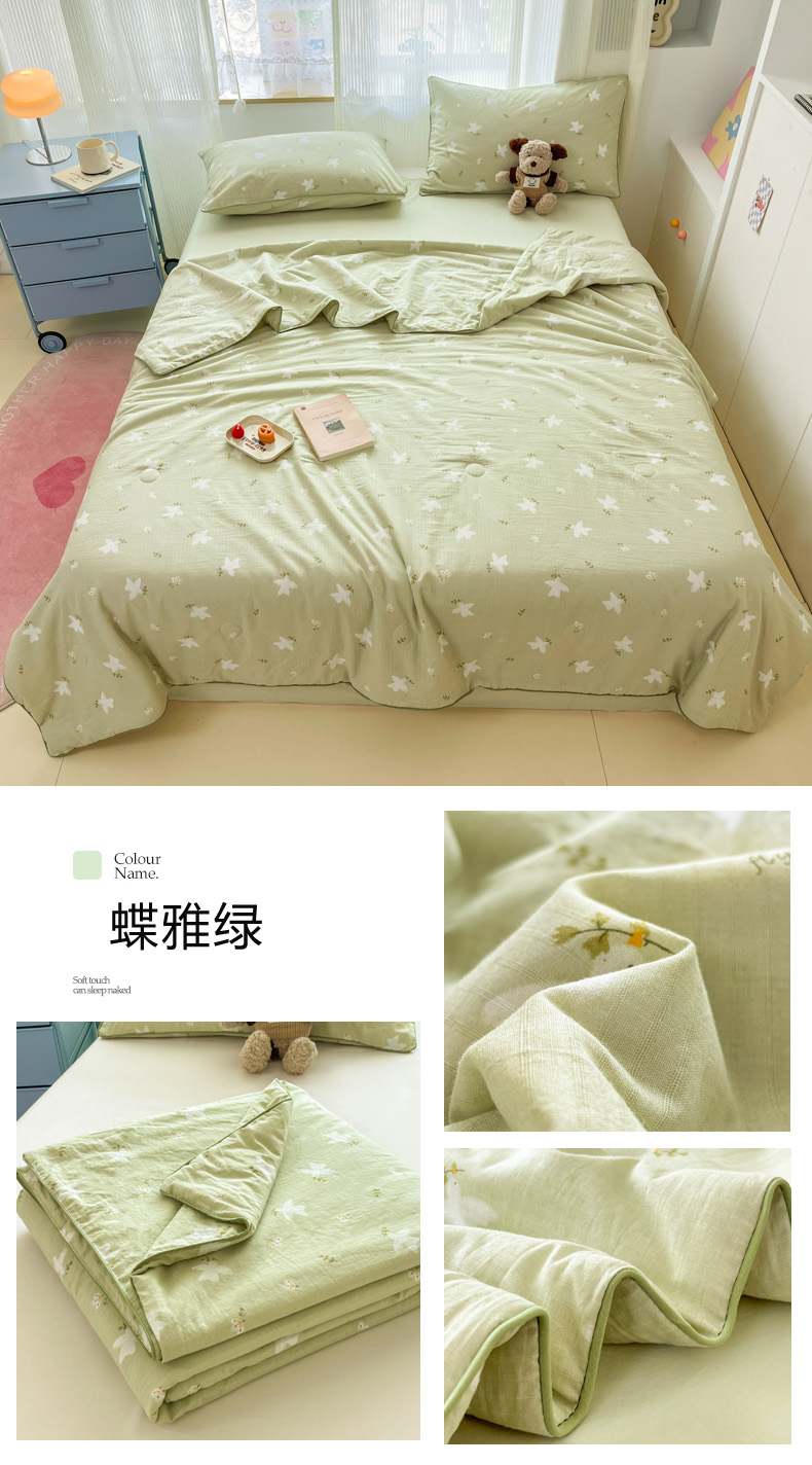 慕尚家纺 2025新款全棉纯棉双层纱夏被夏凉被空调被四件套 蝶雅绿