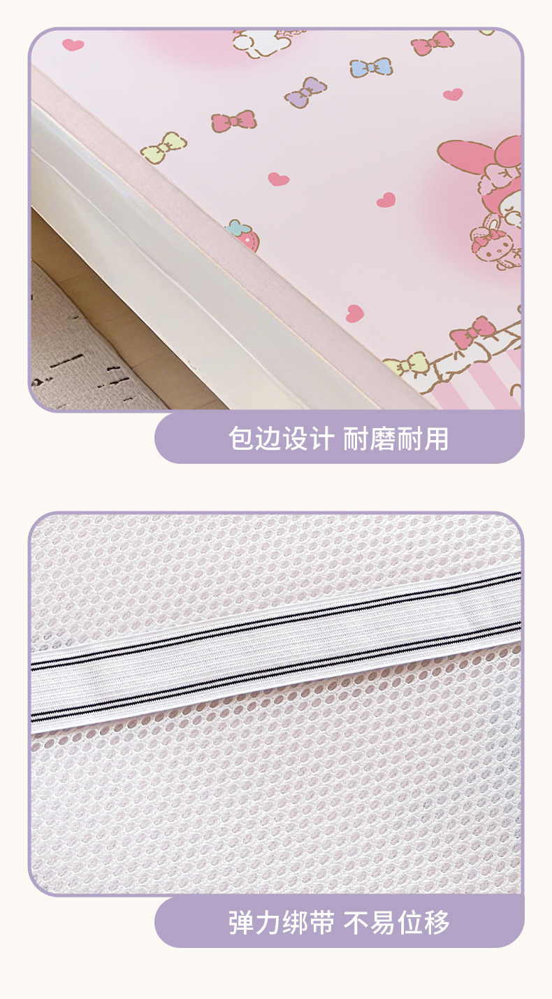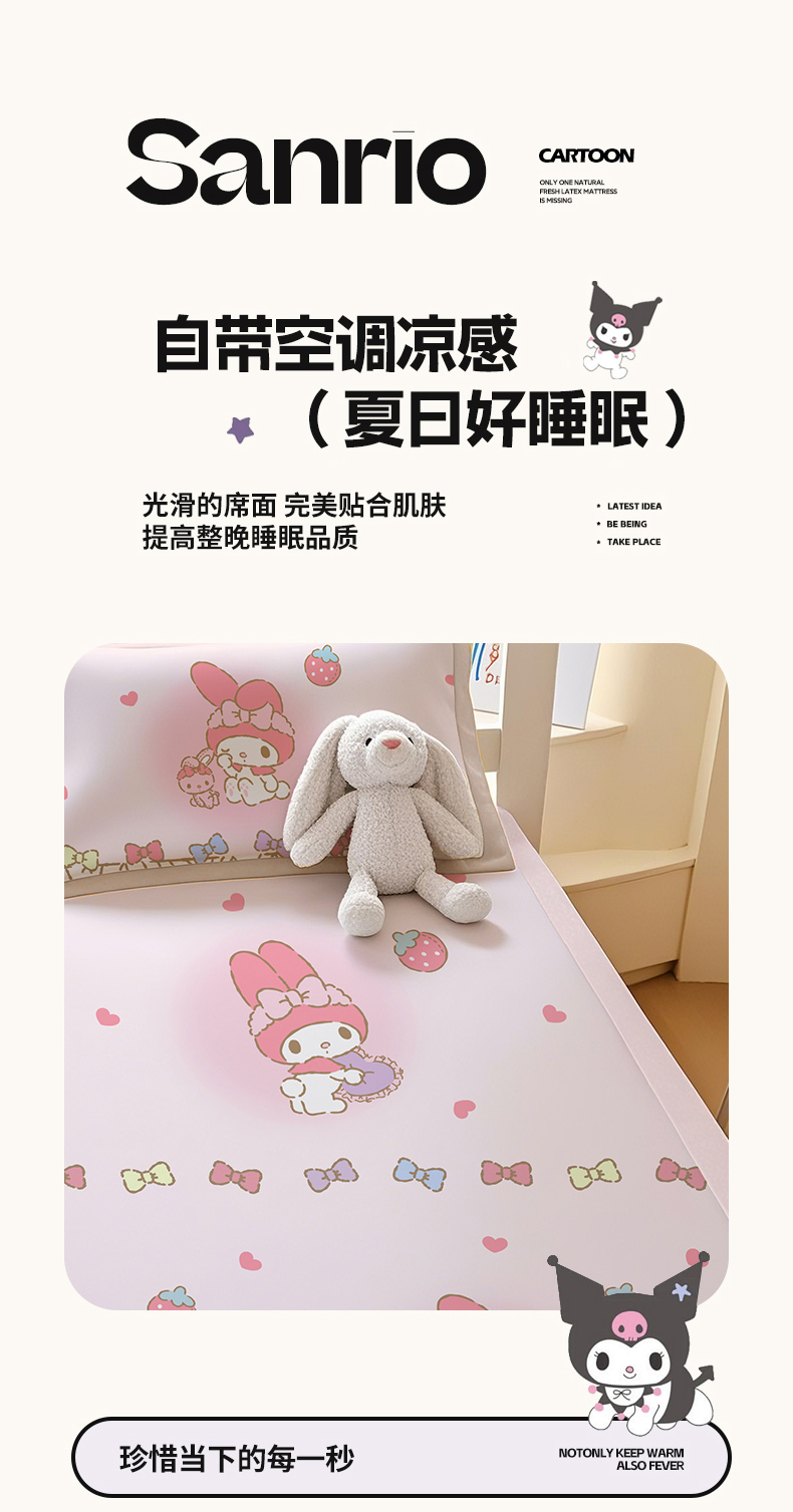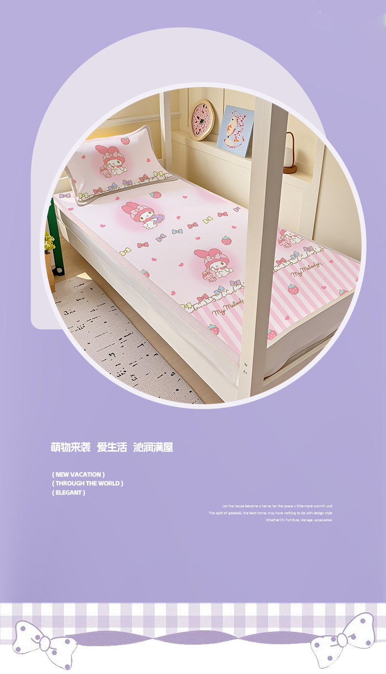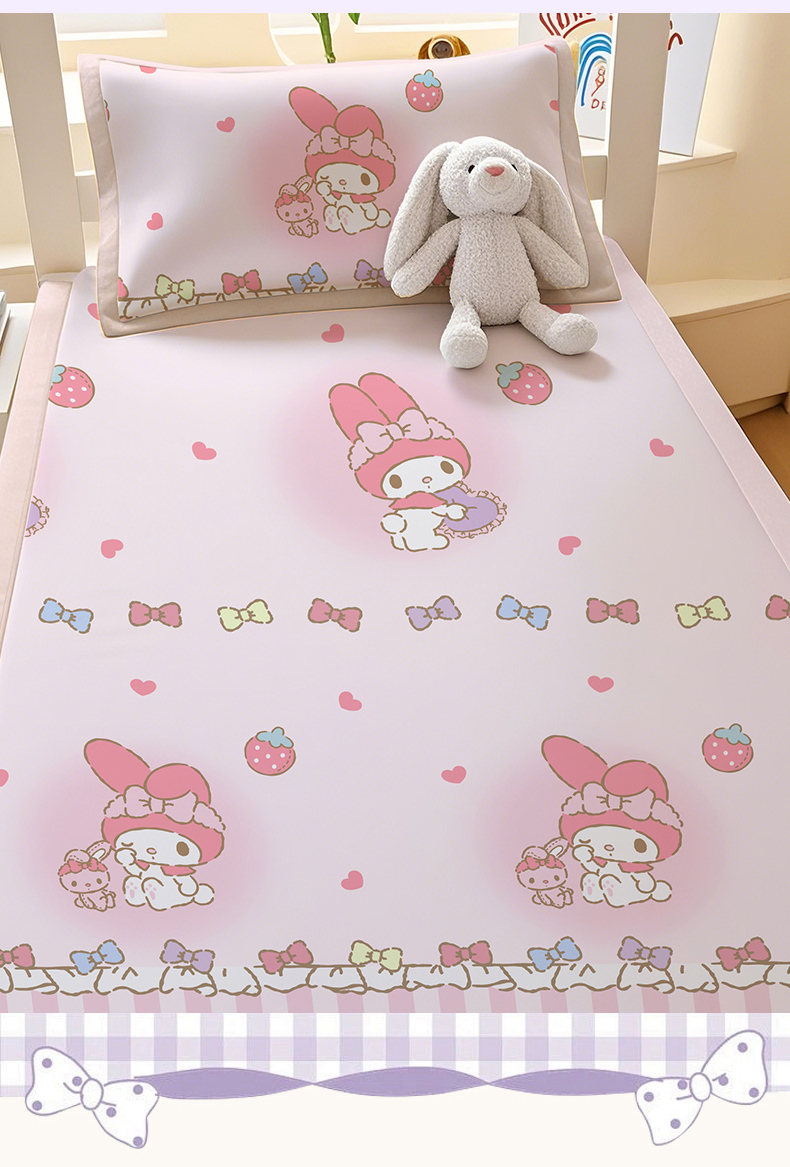 商品名称:博雅 2025春夏新款学生宿舍床三丽鸥冰丝凉席席子 草莓条纹美乐蒂