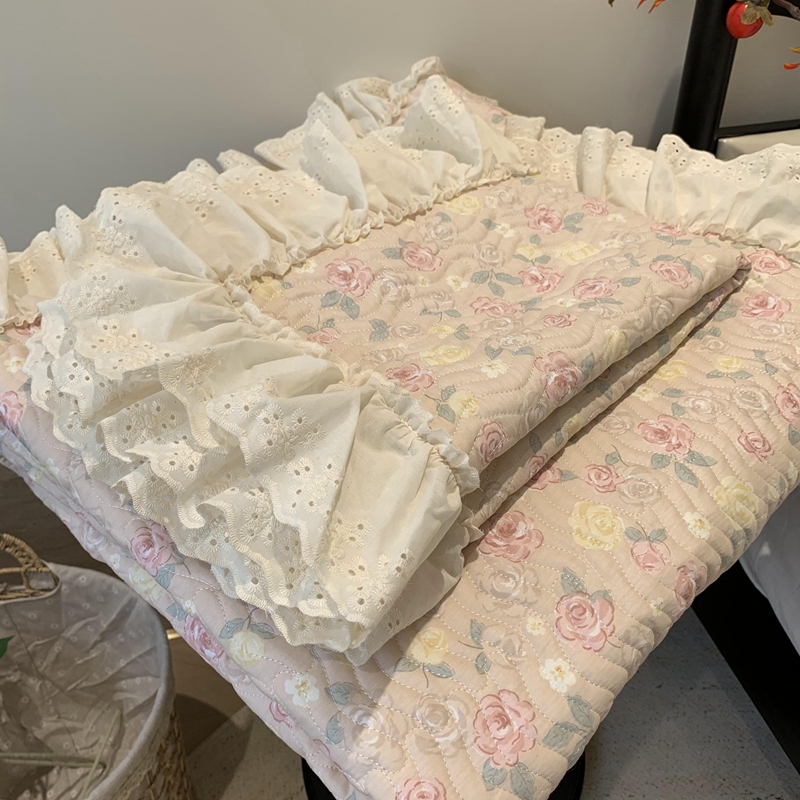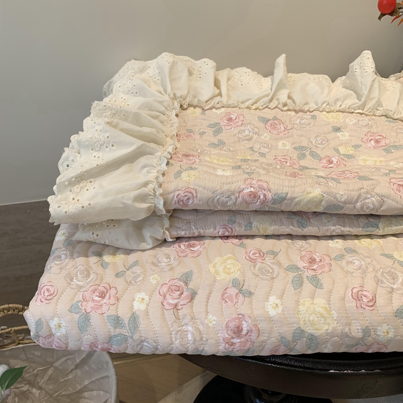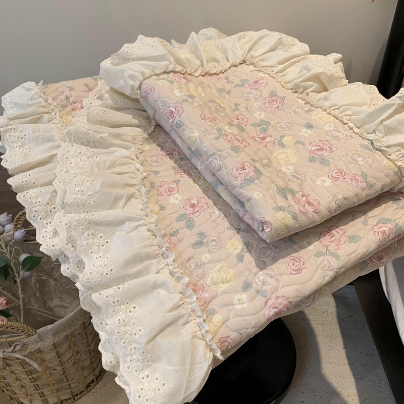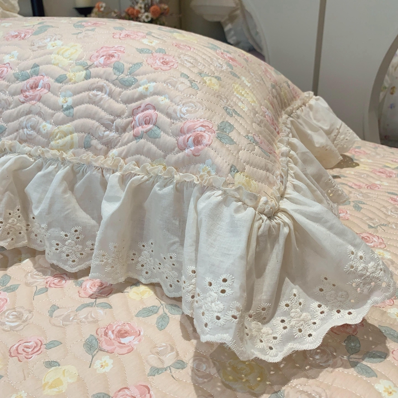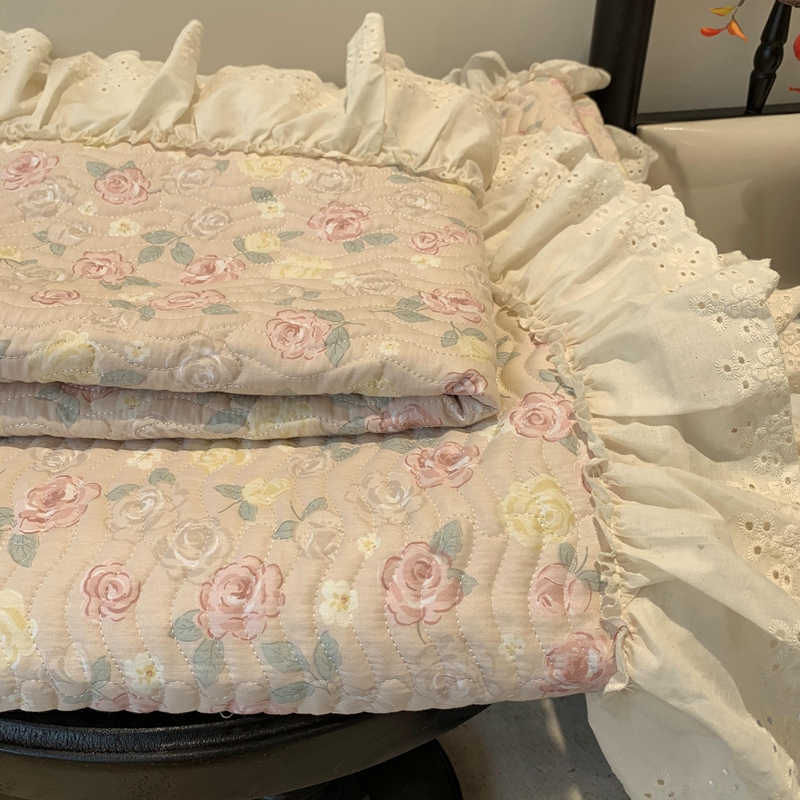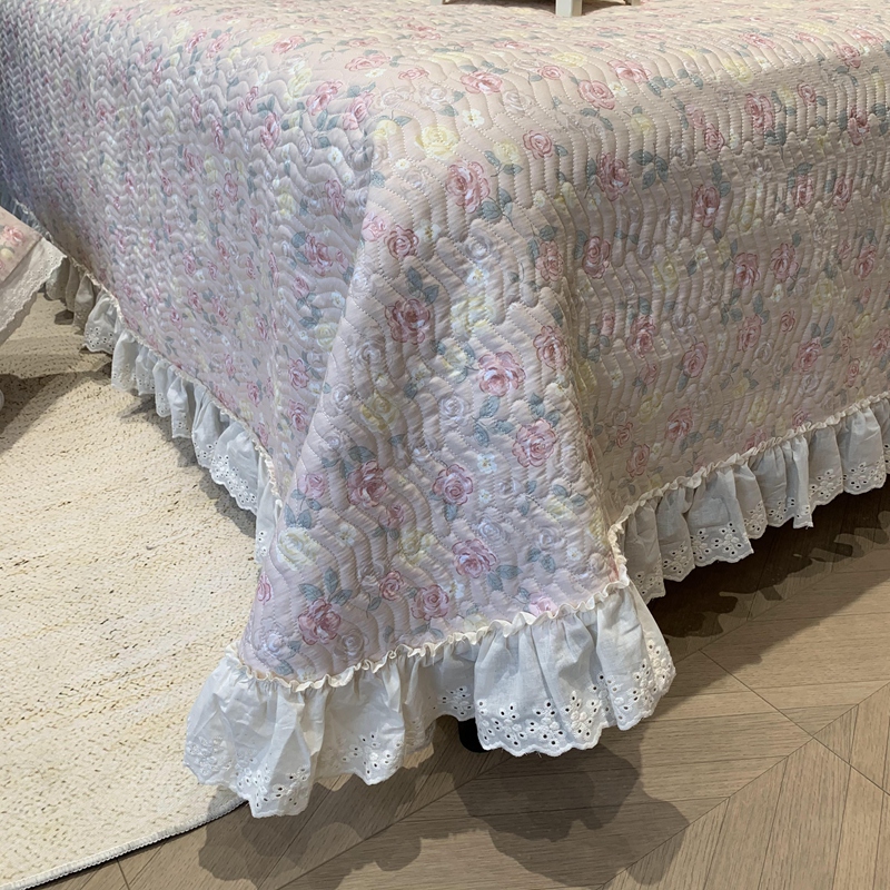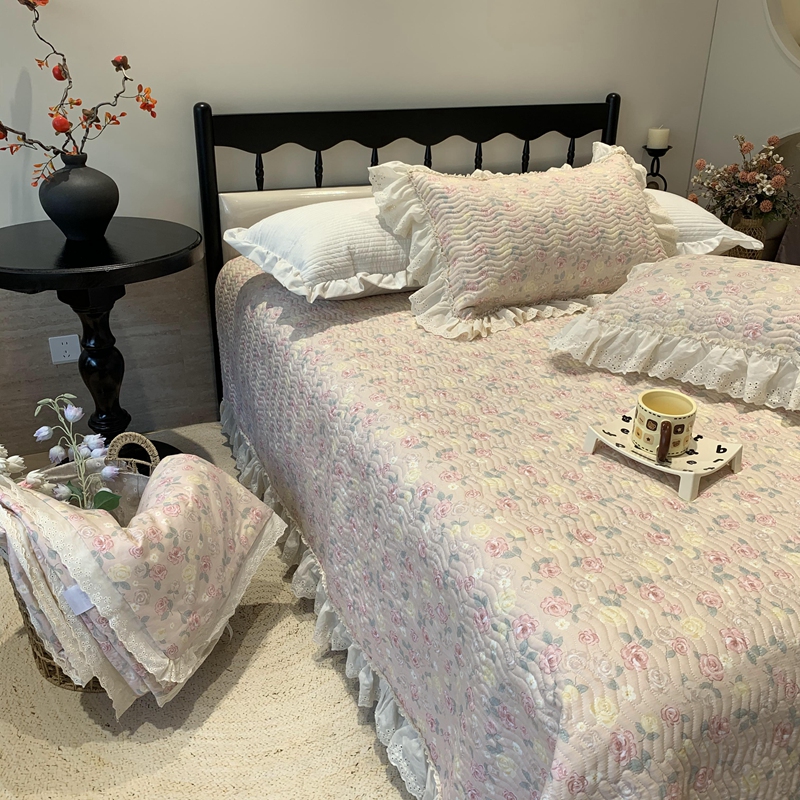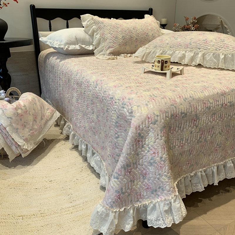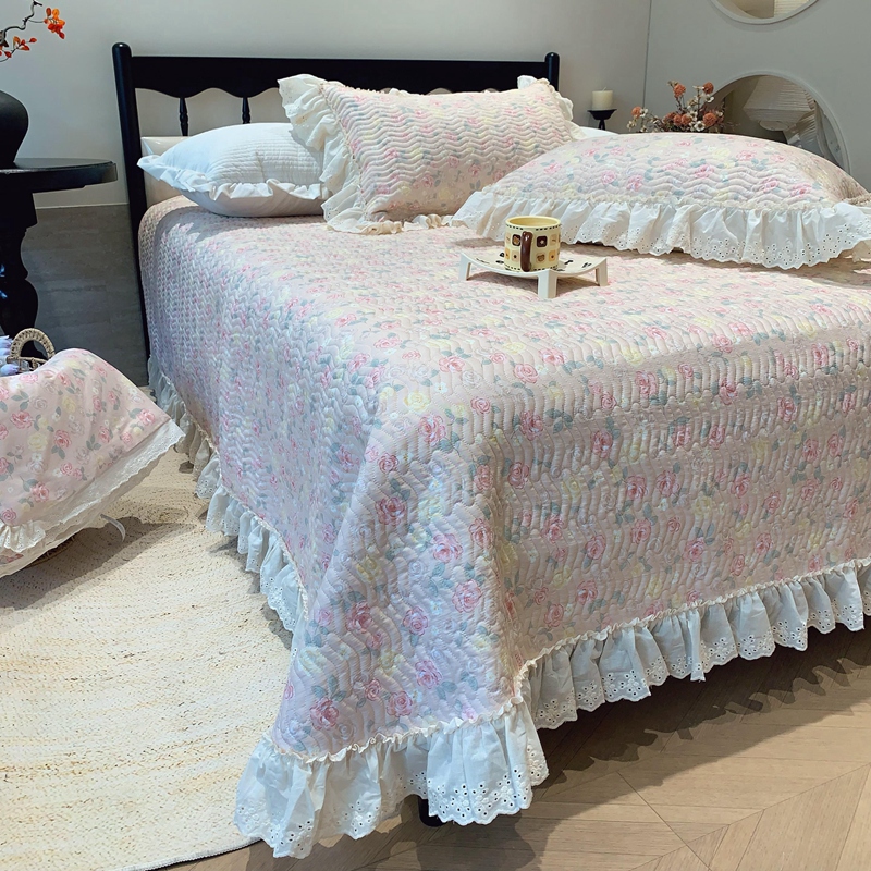 莱豫家纺 2025春夏新款纯棉全棉花边款床盖三件套 蔷薇