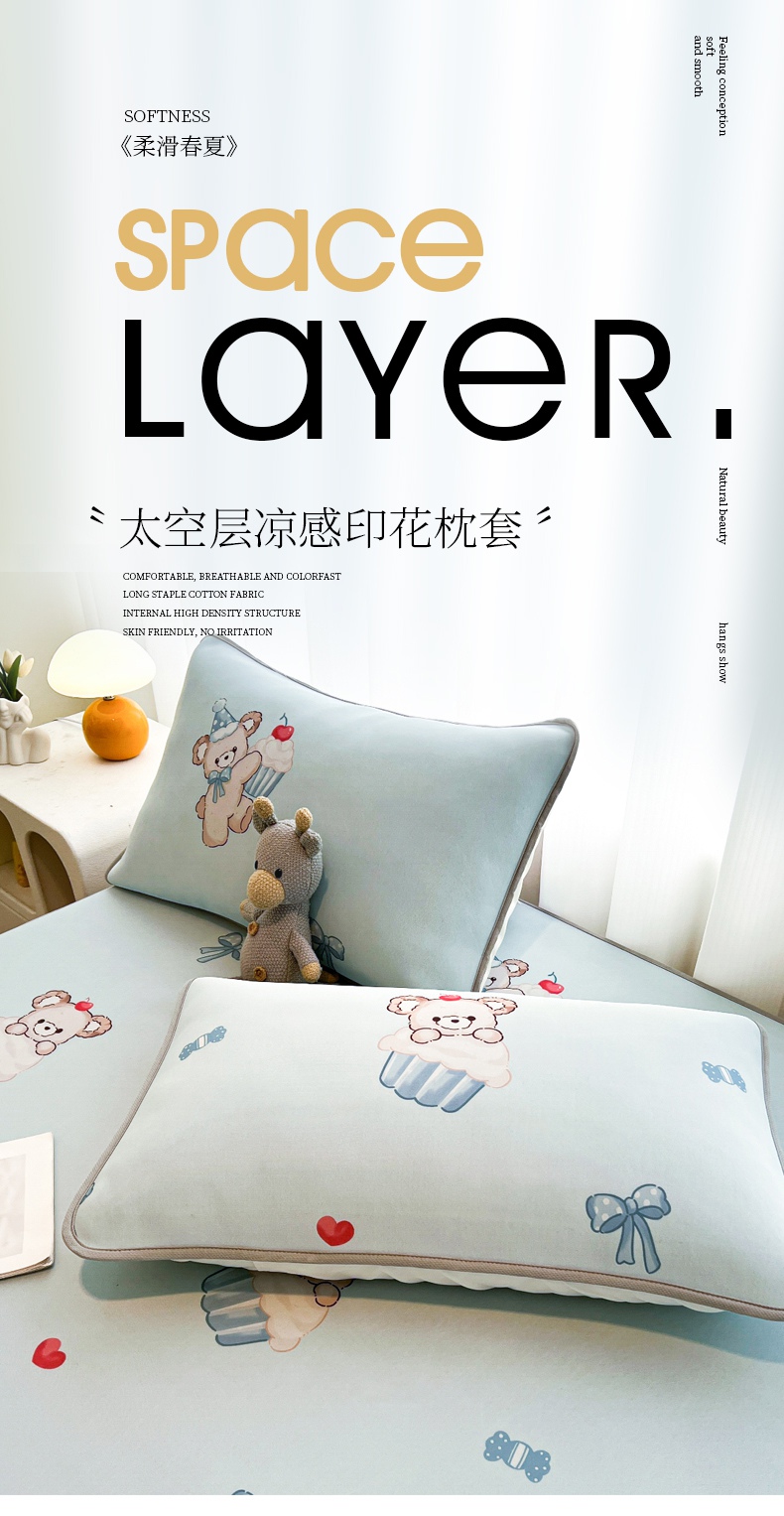 商品名称:LIFE.丽芙 2025春夏新款独家研发太空层凉感冰丝枕头套印花包边款 蛋糕熊