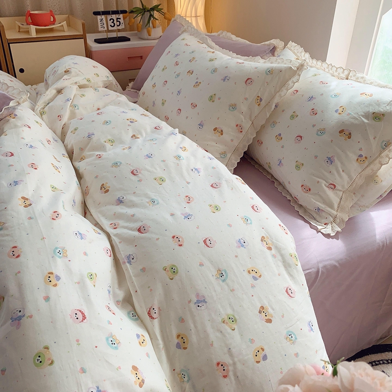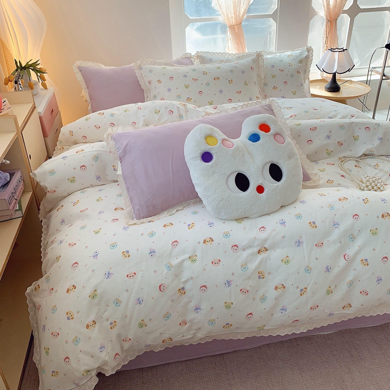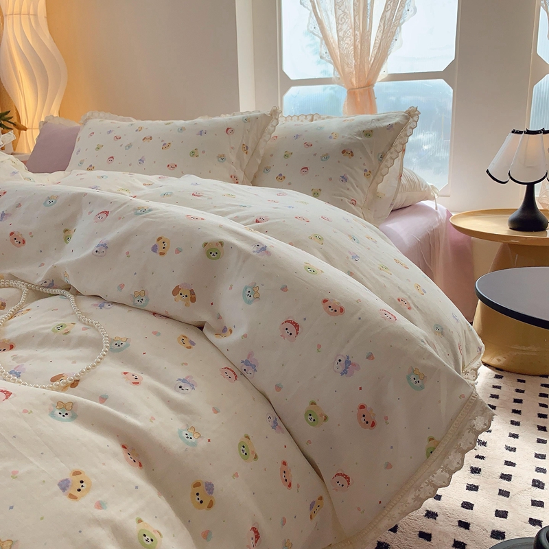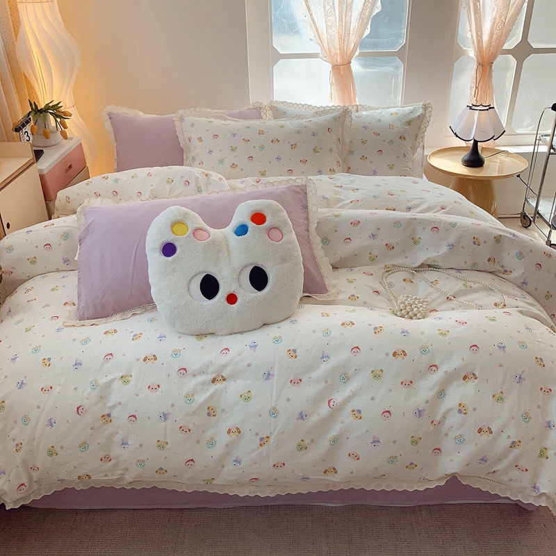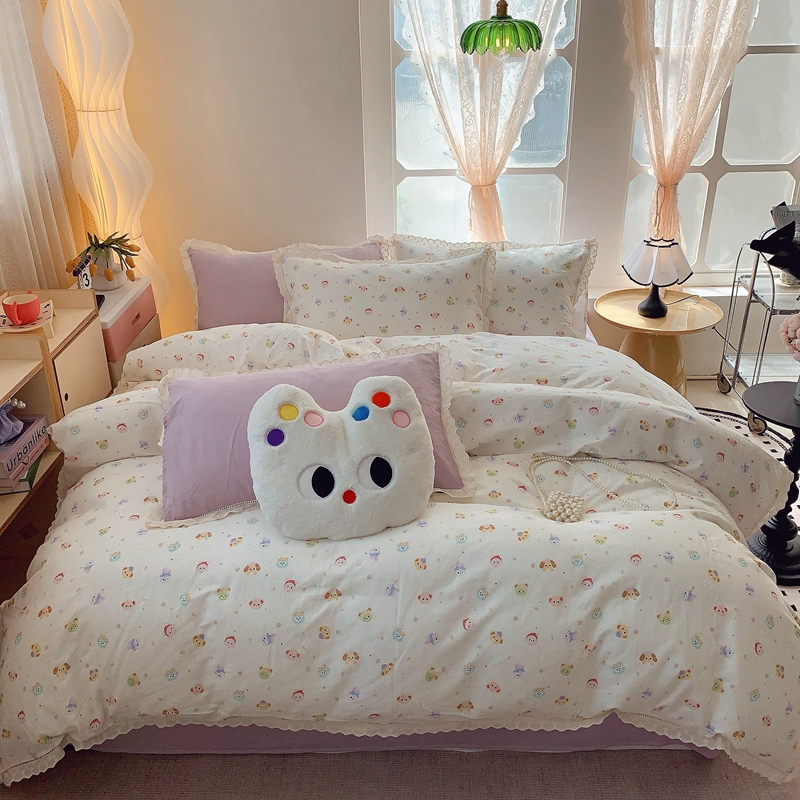 商品名称:莱豫家纺 2025春夏新款双层纱花边四件套 涂鸦乐园