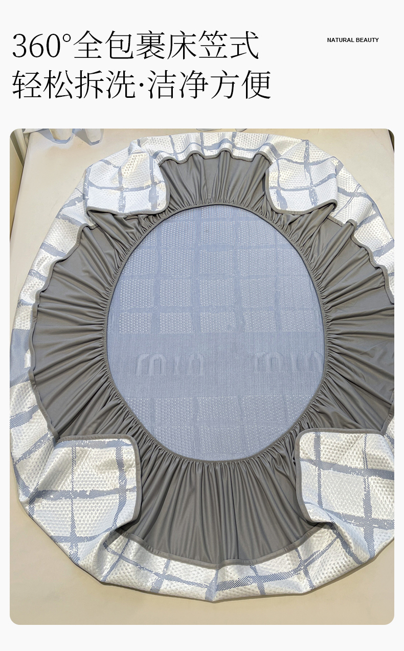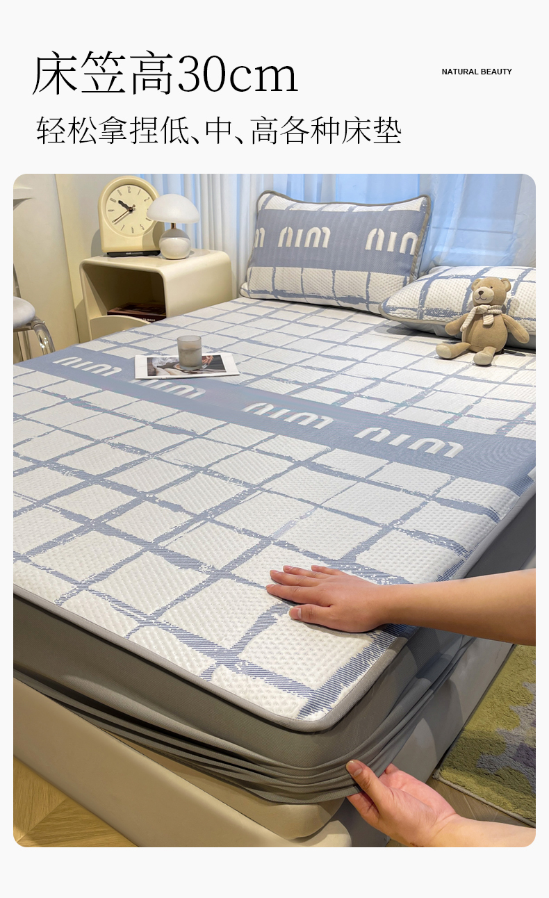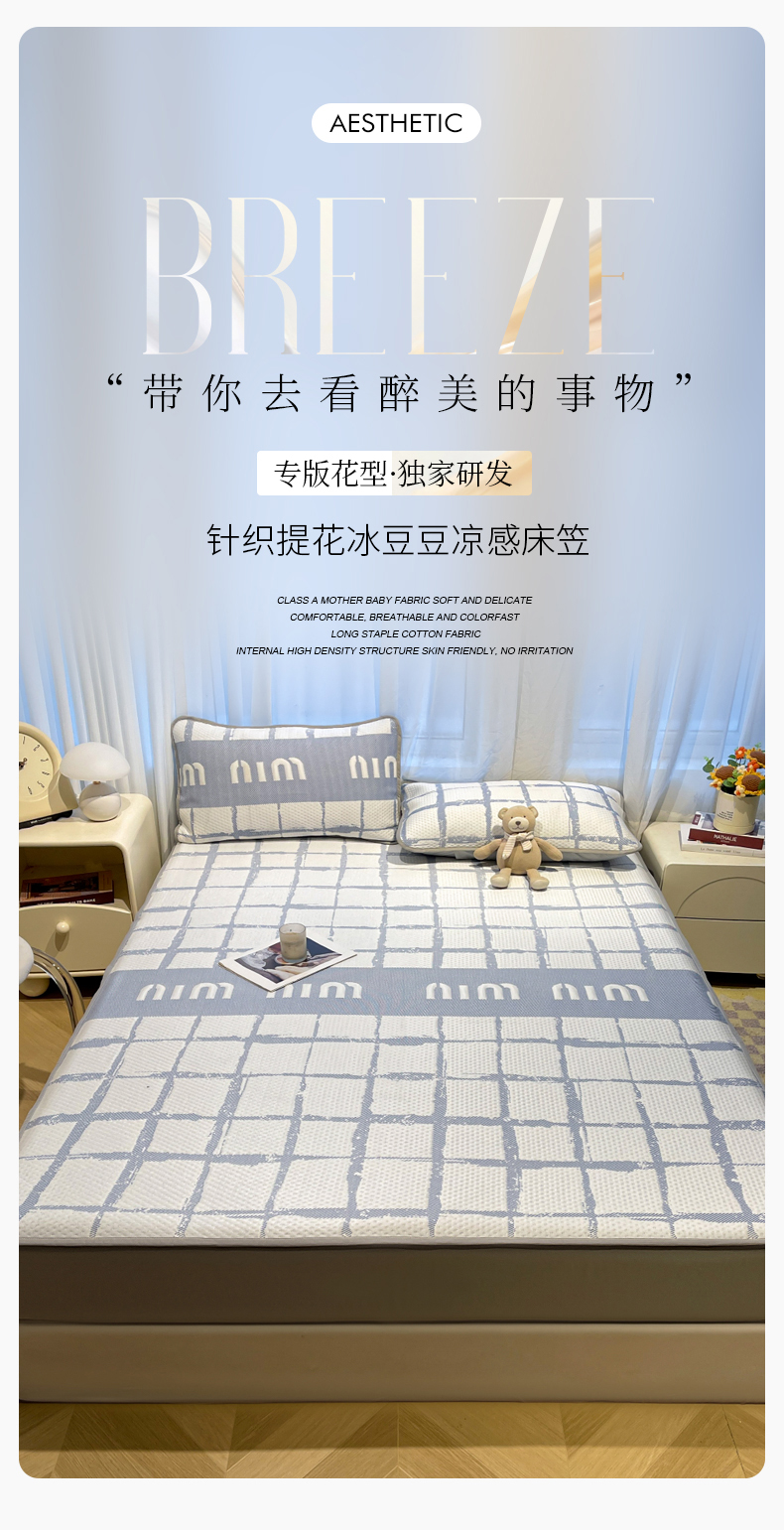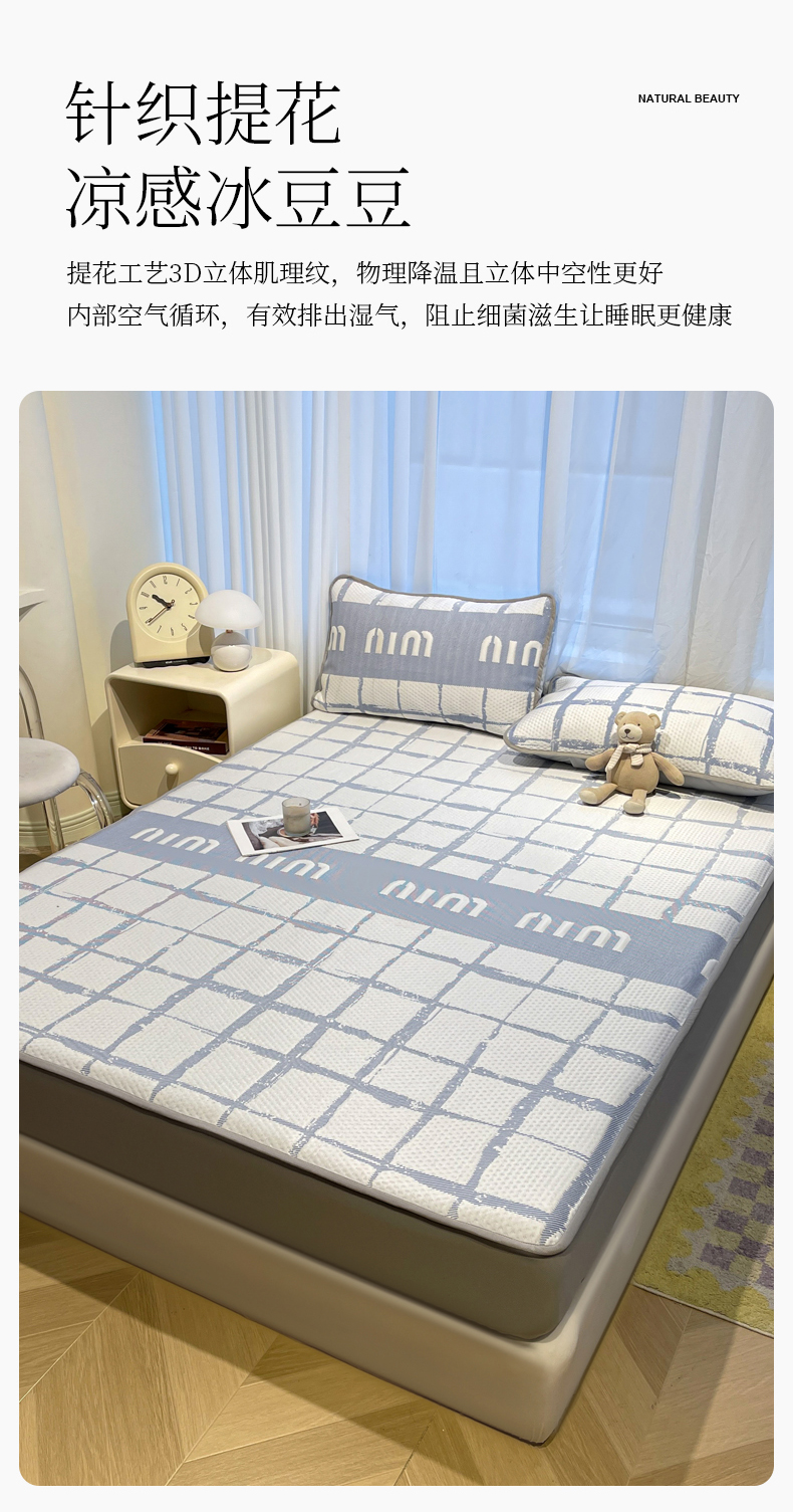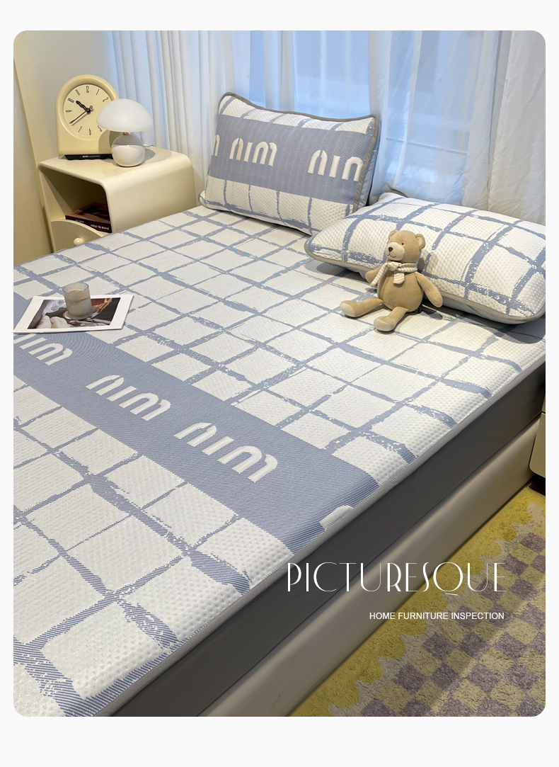 当前位置: 91家纺网 > 商品网购 > 床上用品 > 凉席 > 其他凉席 > LIFE.丽芙 2025春夏季新品A类针织提花冰凉豆豆凉感软席床笠三件套加厚冰丝凉席床罩单件(450克)-风格二 几何字母-海蓝