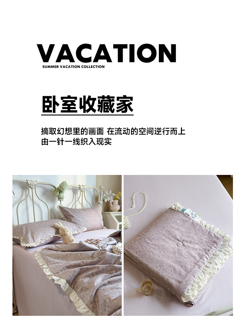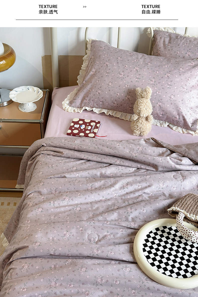 商品名称:绫韵家纺 2025新品夏季韩式浪漫小花边空调被夏被薄被子套件系列 紫洋兰