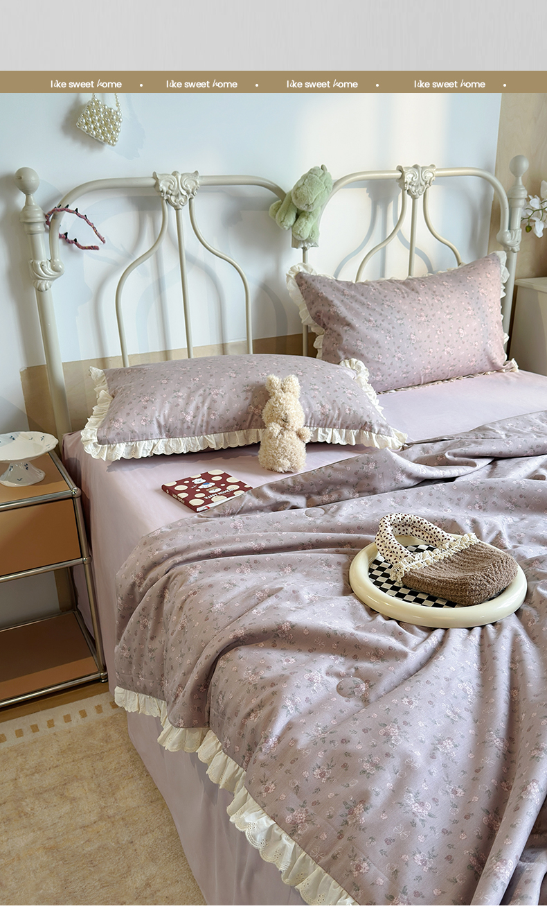 绫韵家纺 2025新品夏季韩式浪漫小花边空调被夏被薄被子套件系列 紫洋兰