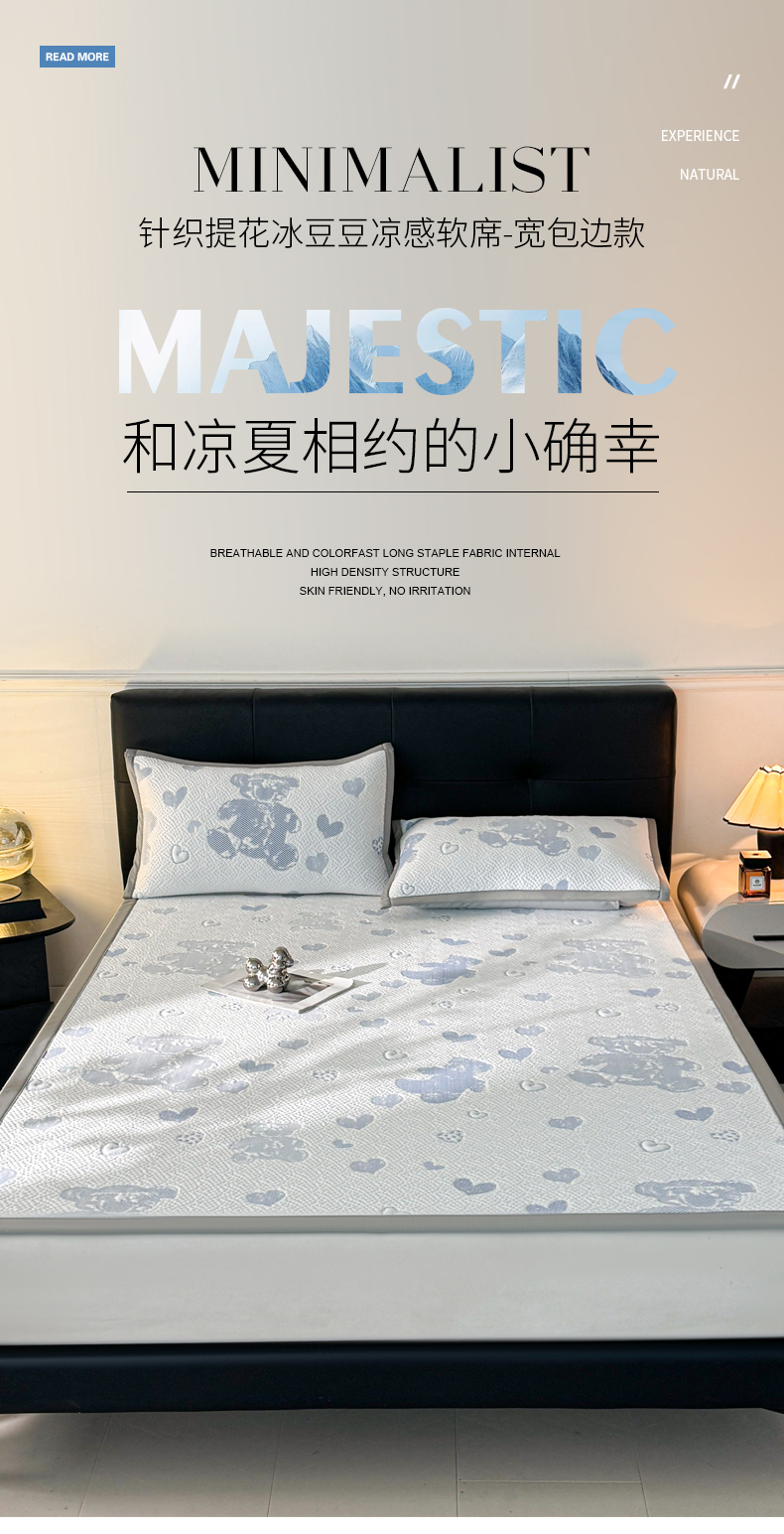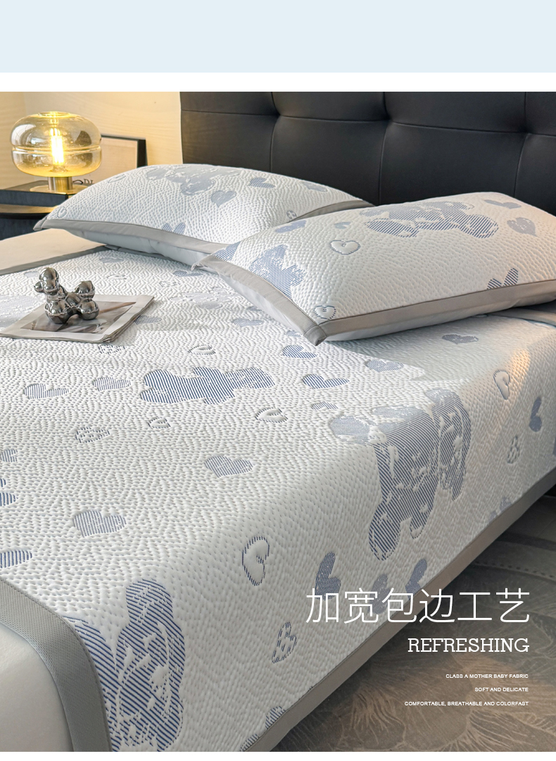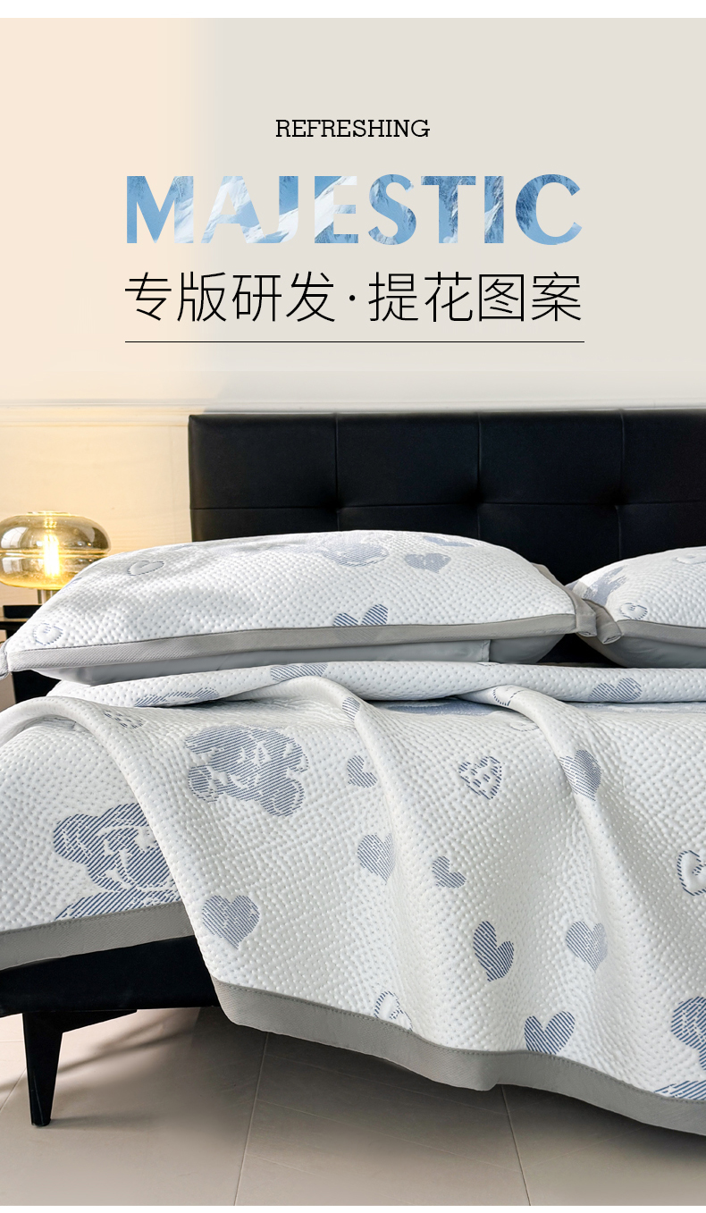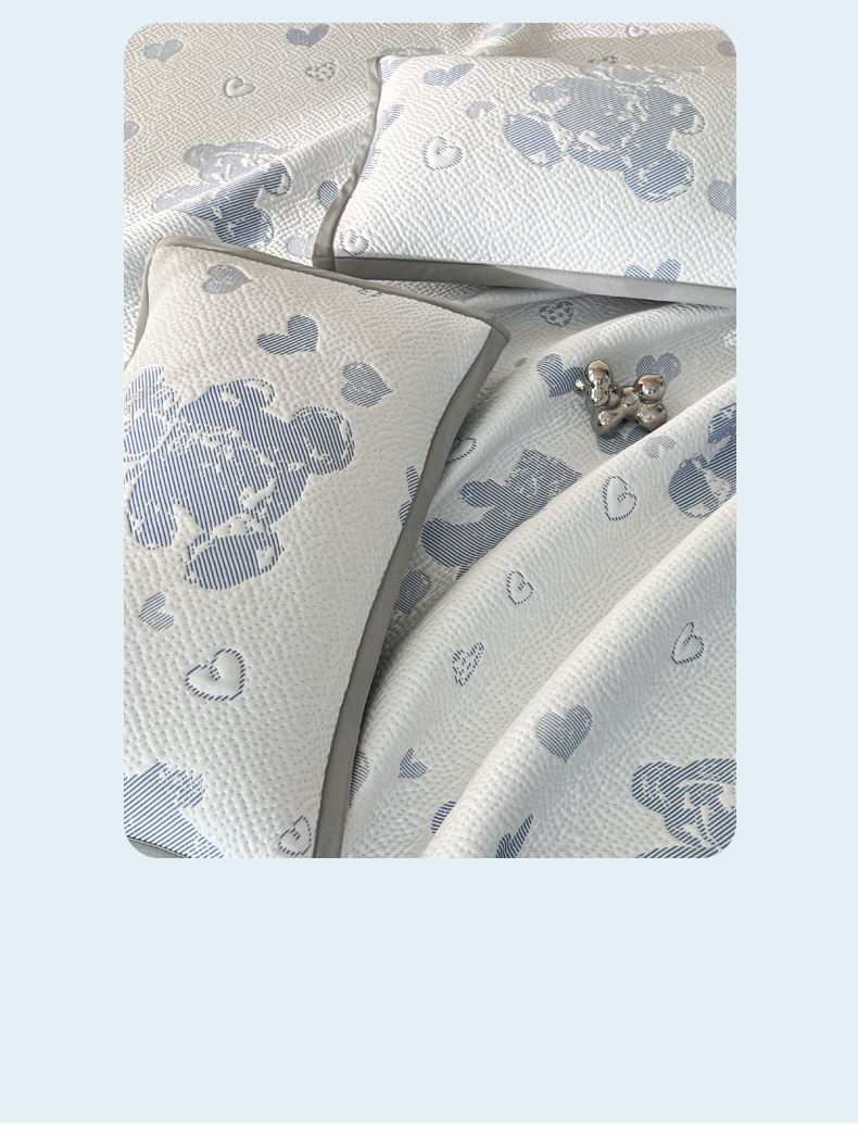 商品名称:LIFE.丽芙 2025春夏季新品A类针织提花冰凉豆豆凉感软席子平铺绑带款冰丝凉席三件套(450克)-风格一 熊世界-海蓝