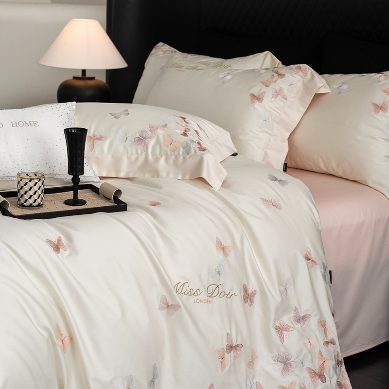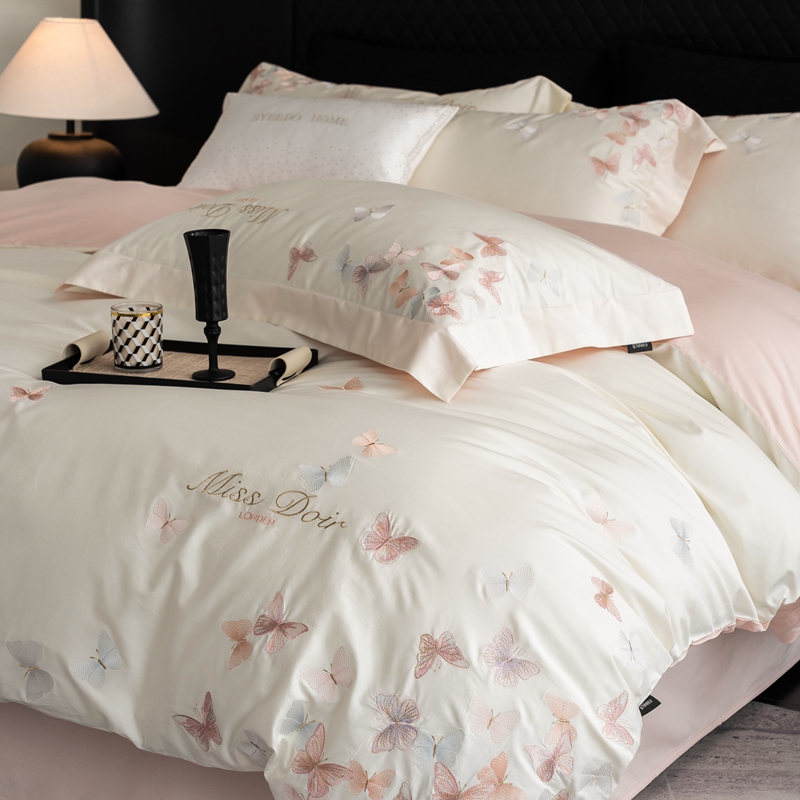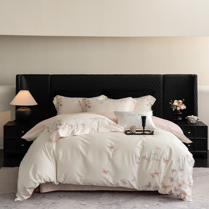 馨蕊2025新款高精密刺绣轻奢风全棉四件套-微光 微光-粉白