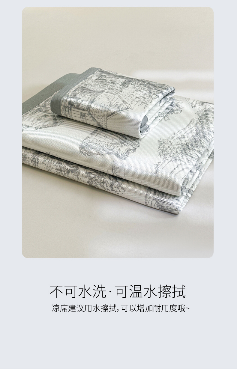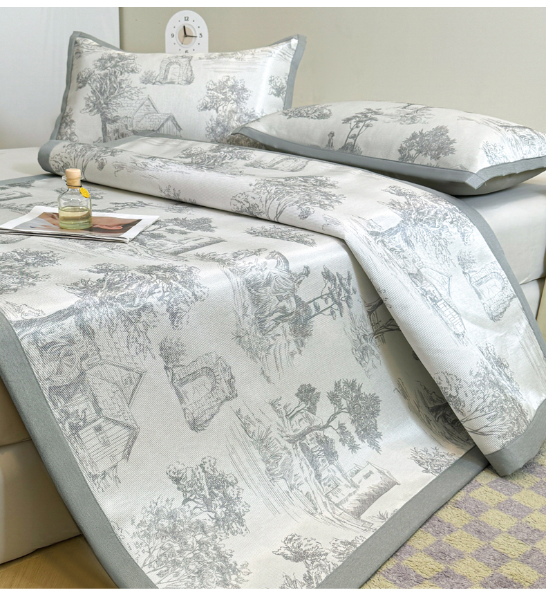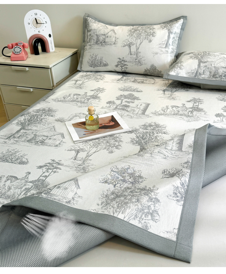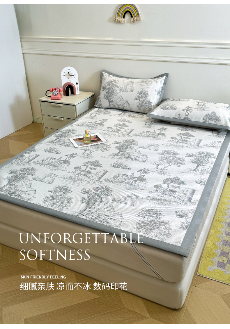 商品名称:LIFE.丽芙 2025春夏季新品数码印花冰藤凉席平铺冰丝凉席印花小清新绑带款三件套(风格二) 秘密庄园