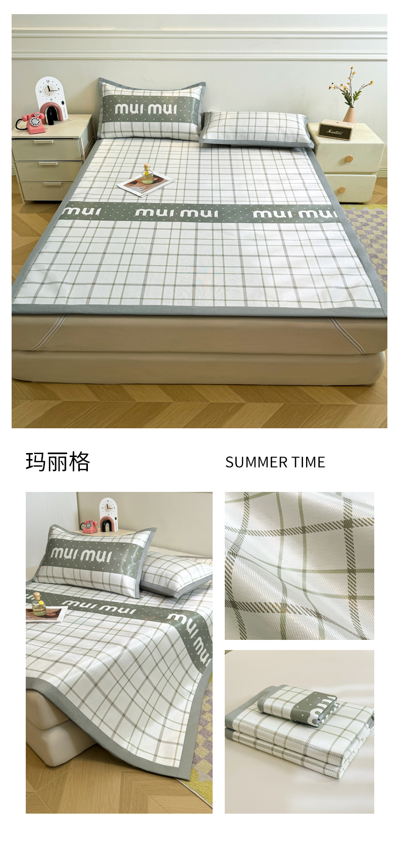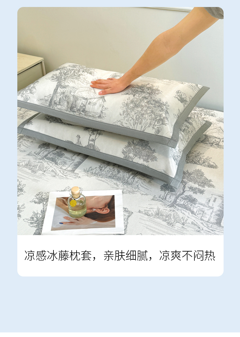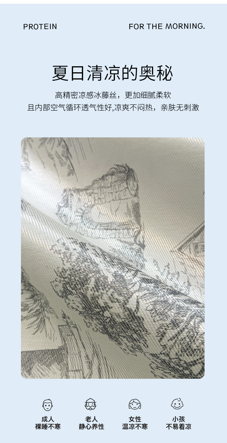 商品名称:LIFE.丽芙 2025春夏季新品数码印花冰藤凉席平铺冰丝凉席印花小清新绑带款三件套(风格二) 秘密庄园